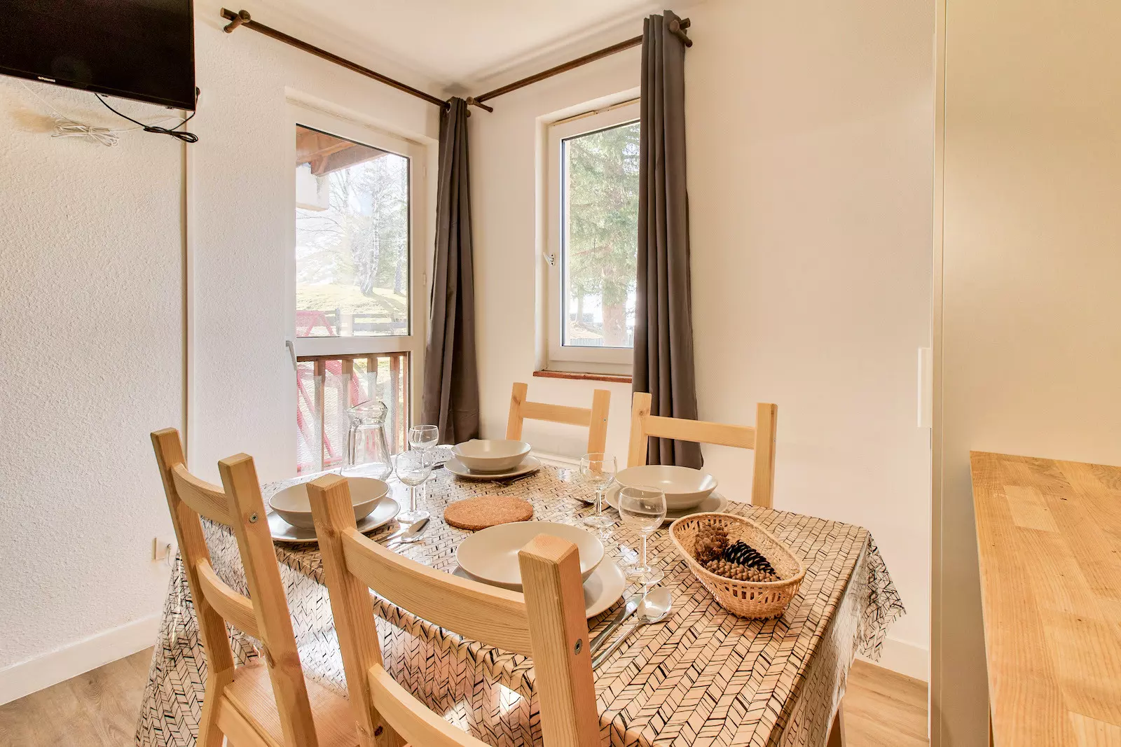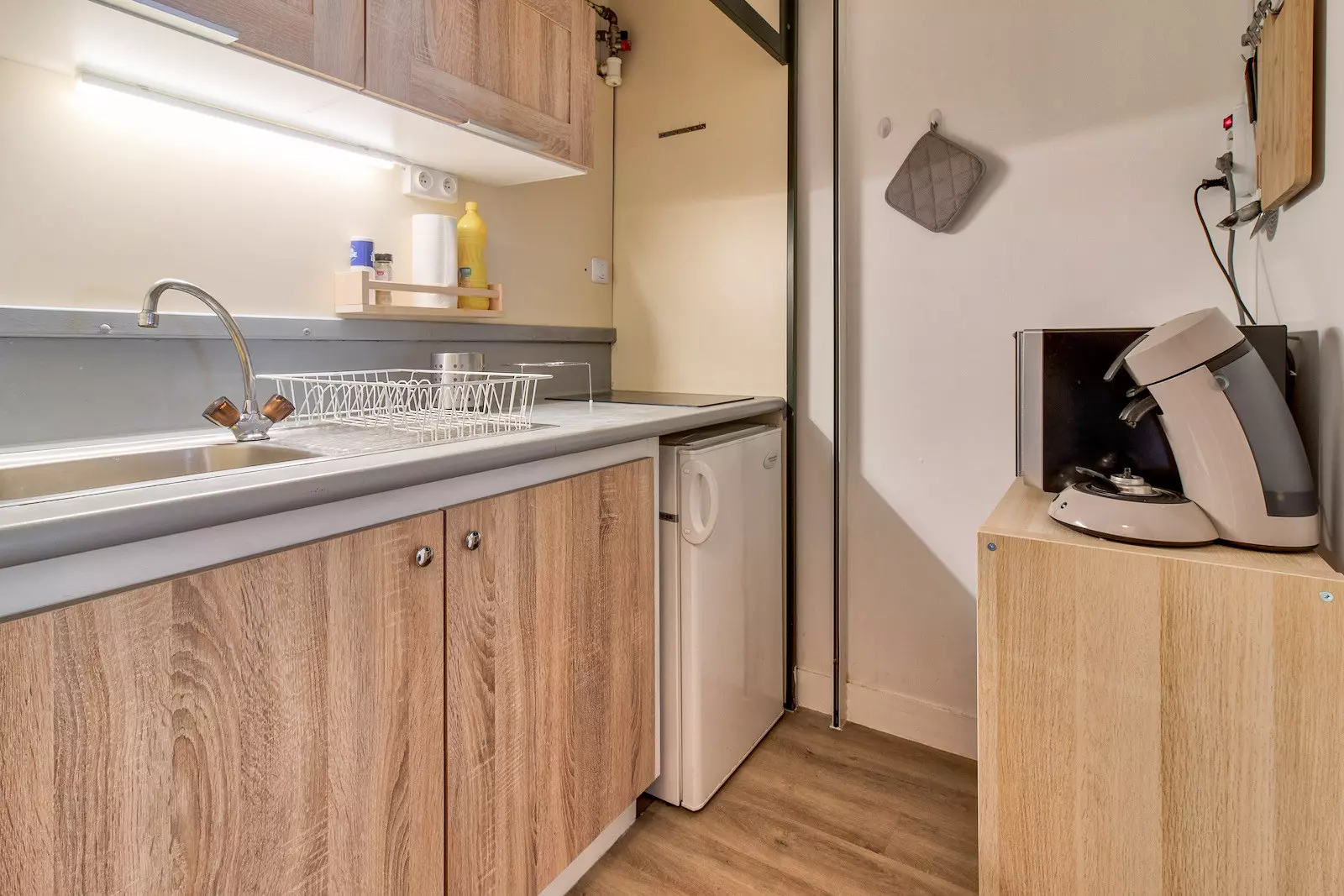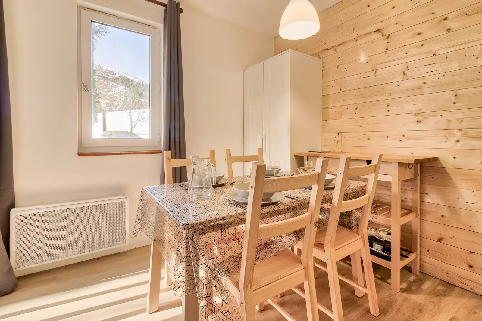 Cet appartement pour 4 accueillant et lumineux de 24 m² dans la résidence des Gourgs blancs, dispose d'une cuisine américaine équipée d'un four et de plaques à induction, d'un réfrigérateur et d'une cafetière. Elle s'ouvre sur un séjour avec son coin repas, et son salon, avec notamment un canapé lit offrant un couchage pour 2.