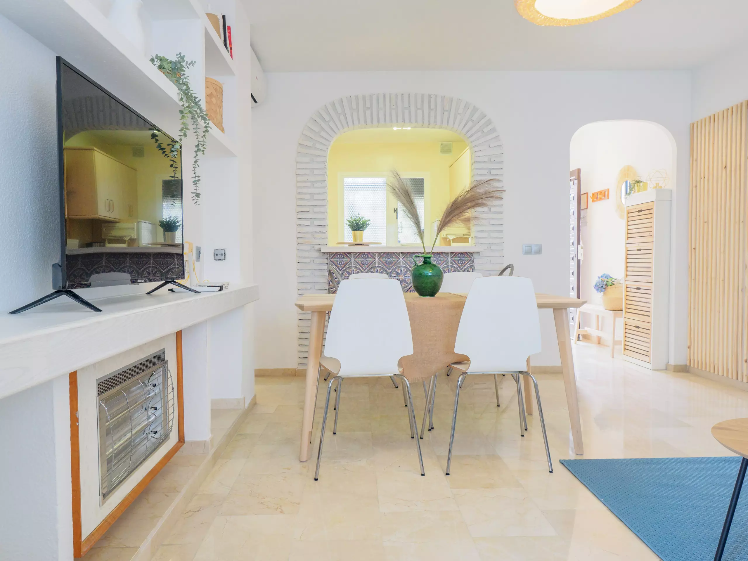 Le salon-salle à manger est connecté à la terrasse, où vous pourrez vous détendre tout en profitant de la télévision par fibre optique, parfaite pour regarder vos séries et films préférés en famille ou entre amis ??.