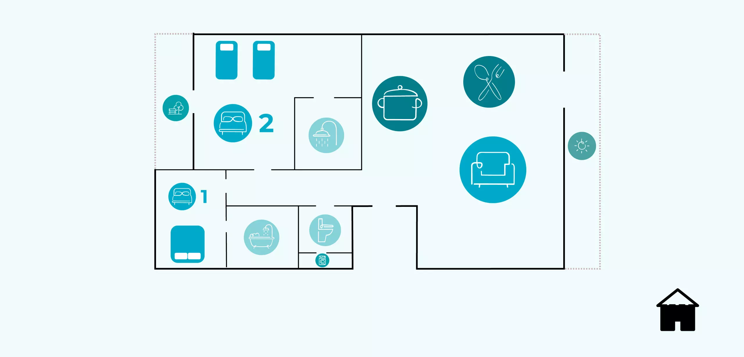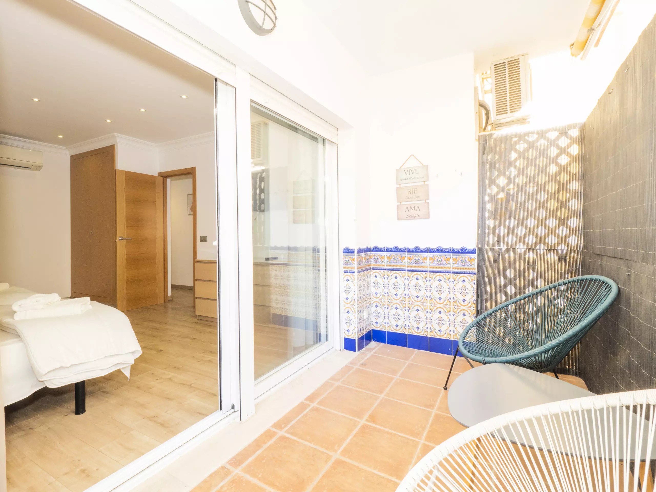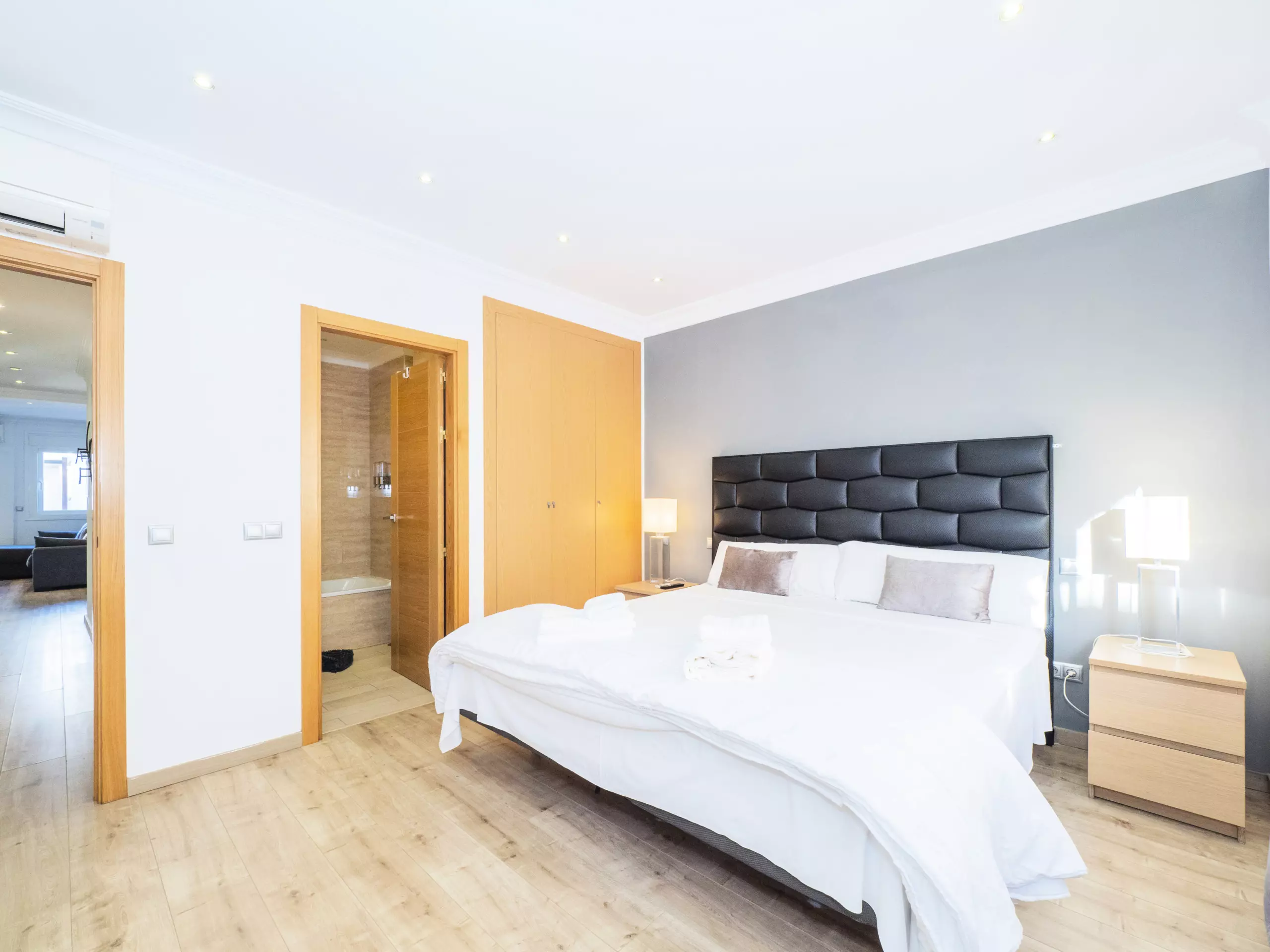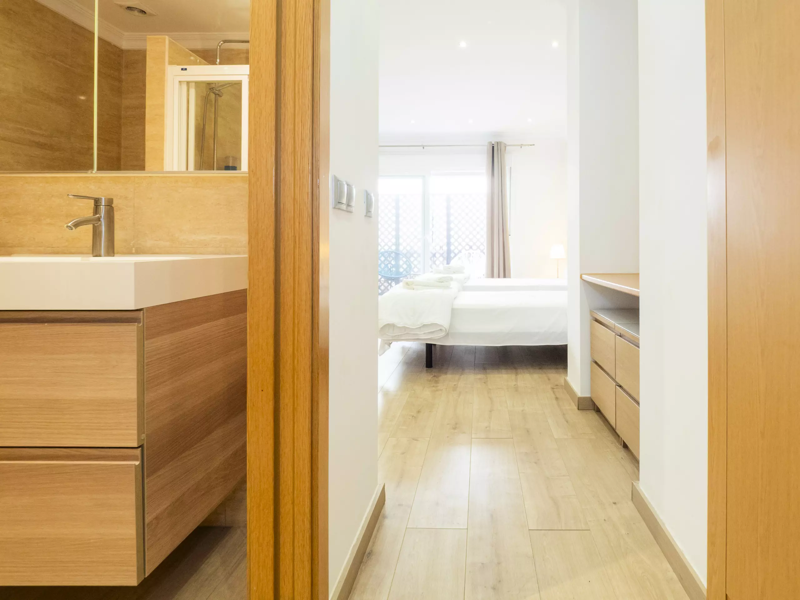 Un couloir relie le salon aux chambres et une salle de bain complète avec machine à laver pour votre commodité. L'appartement dispose de deux chambres spacieuses avec salle de bain privative : une avec un lit Queen Size et une baignoire, et l'autre avec deux lits individuels et une douche. La chambre avec lits individuels dispose d'une terrasse parfaite pour se détendre en lisant ou en prenant un thé ??.