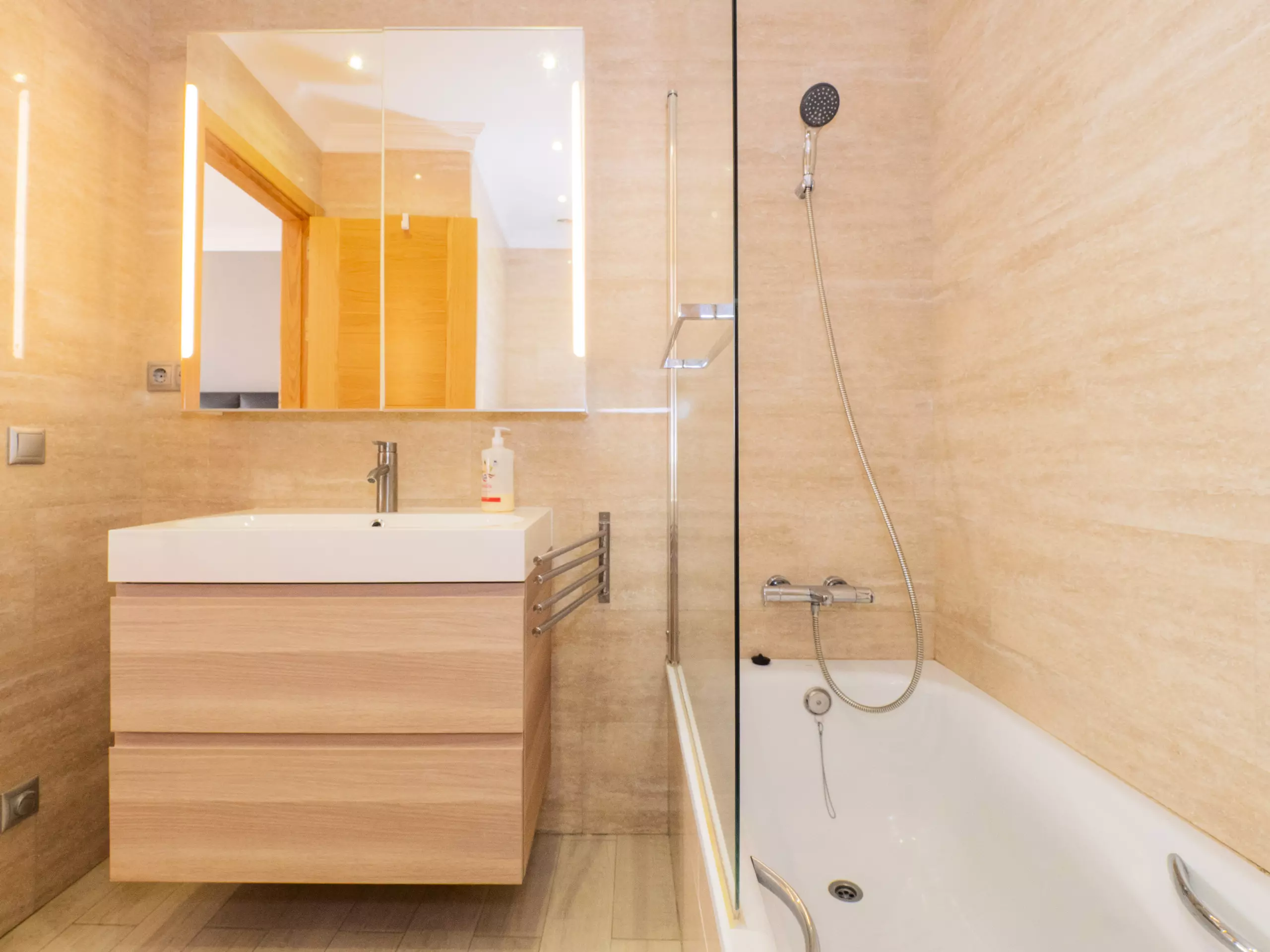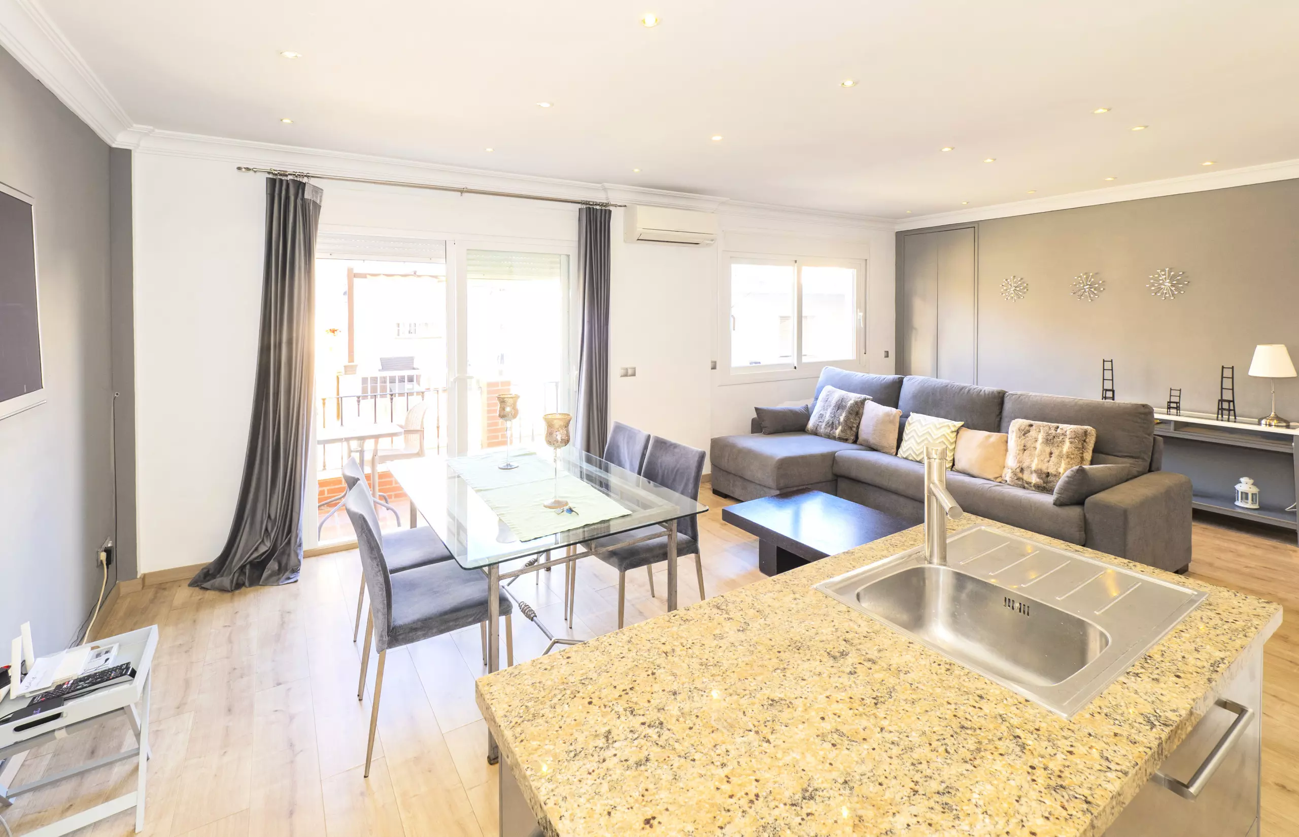 L'appartement dispose de la climatisation dans toutes les pièces et de fenêtres à double vitrage, ce qui garantit un isolement acoustique et thermique optimal, rendant votre séjour plus confortable et efficace.