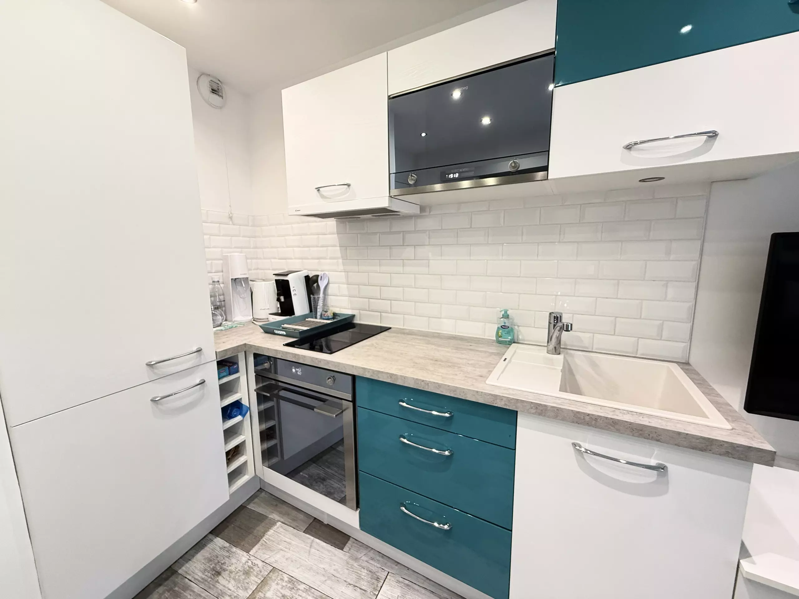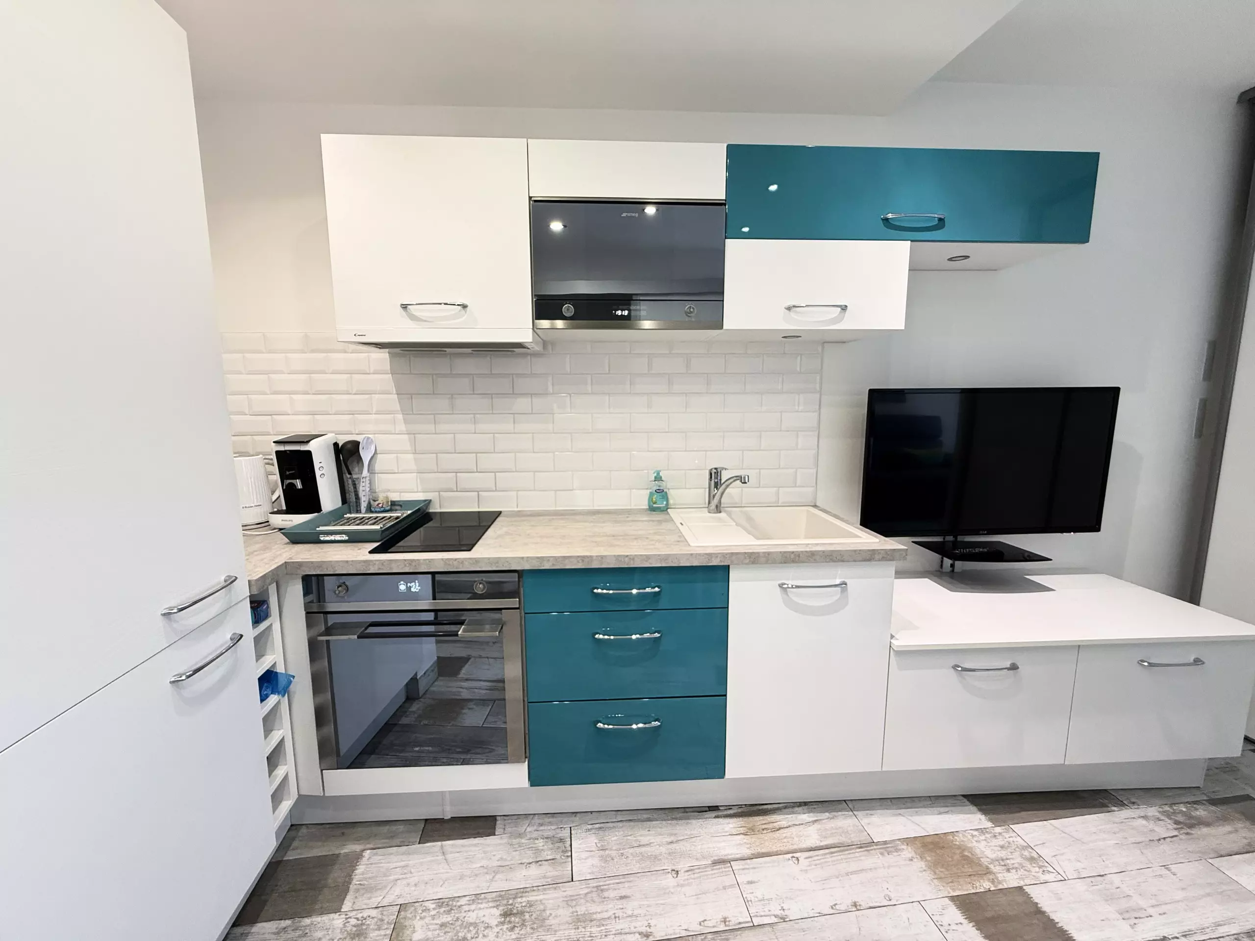 L'appartement dispose d'une chambre avec un lit double et un canapé-lit très confortable, permettant d'accueillir jusqu'à 4 personnes. La cuisine américaine entièrement équipée vous permettra de préparer vos repas avec facilité, avec des équipements modernes comprenant un réfrigérateur, un congélateur, un four, un micro-ondes, une machine à café, un grille-pain et une bouilloire.
