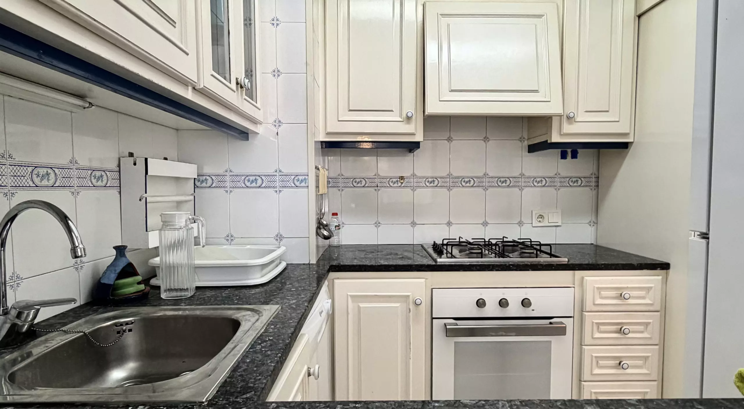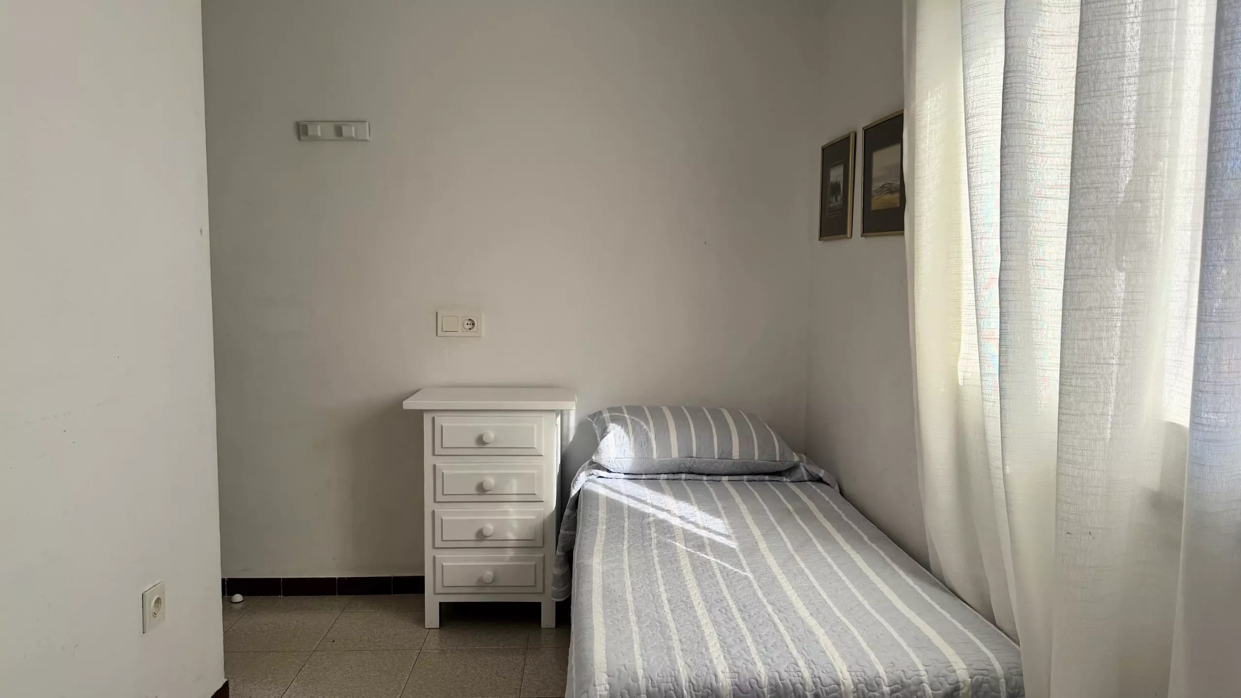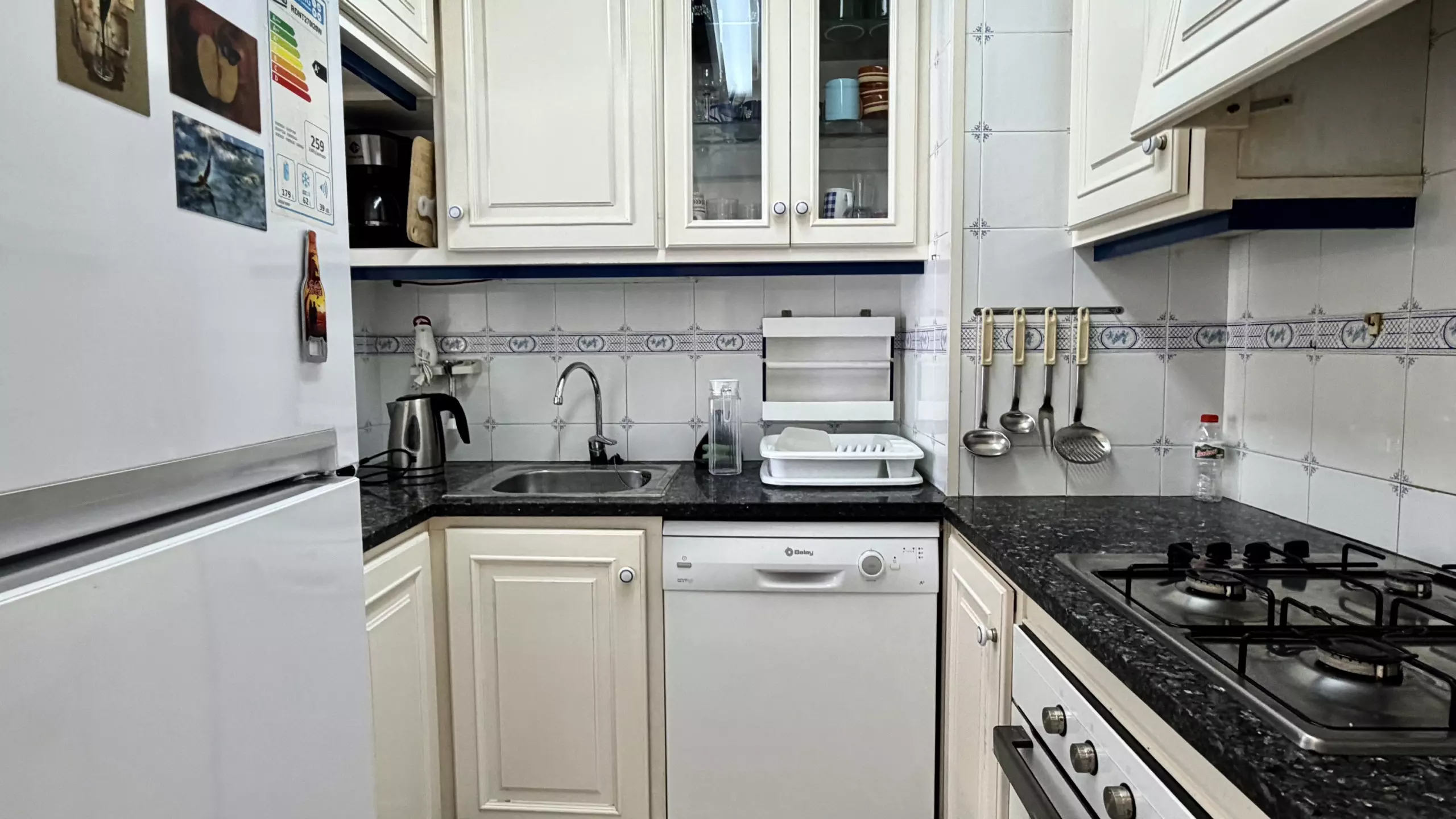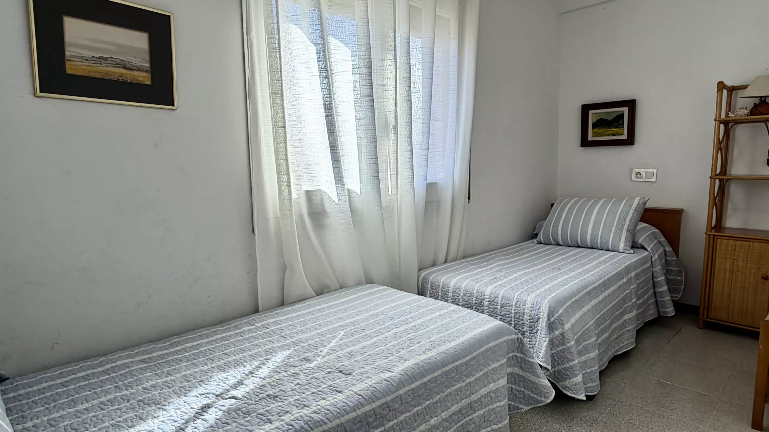 L'appartement dispose de 3 chambres bien réparties : une chambre avec un lit matrimonial et deux chambres avec des lits individuels, garantissant un repos confortable pour tous les invités. Il comprend une salle de bain complète avec baignoire, parfaite pour se détendre après une journée à la plage.