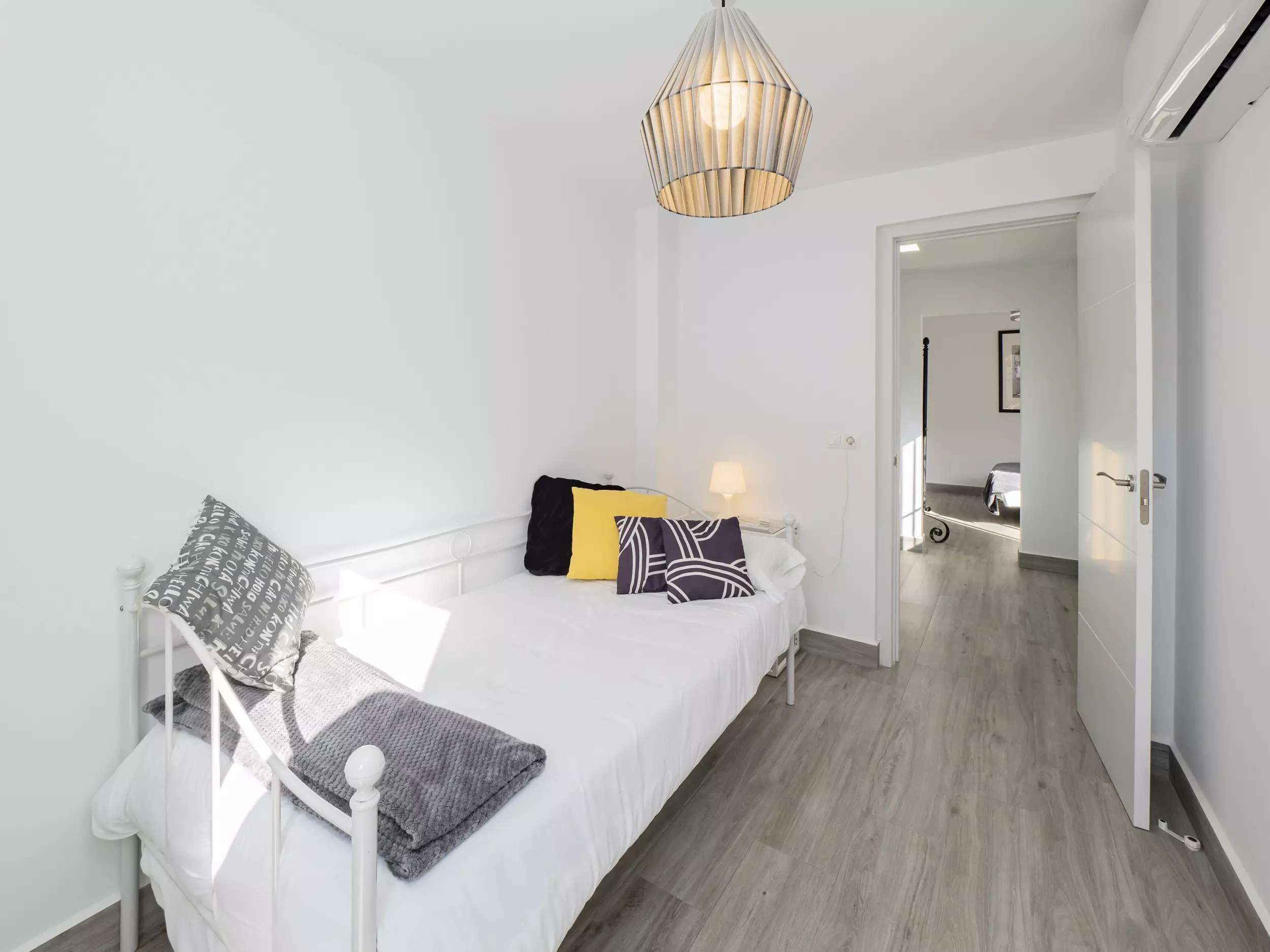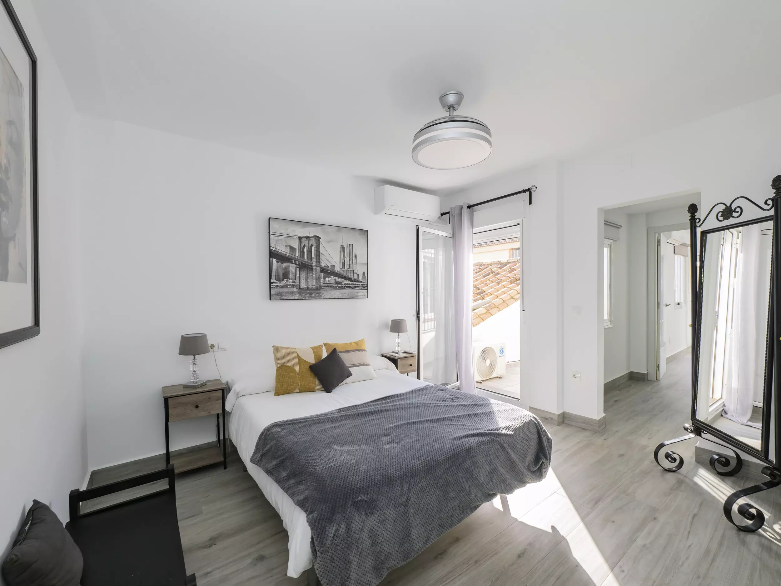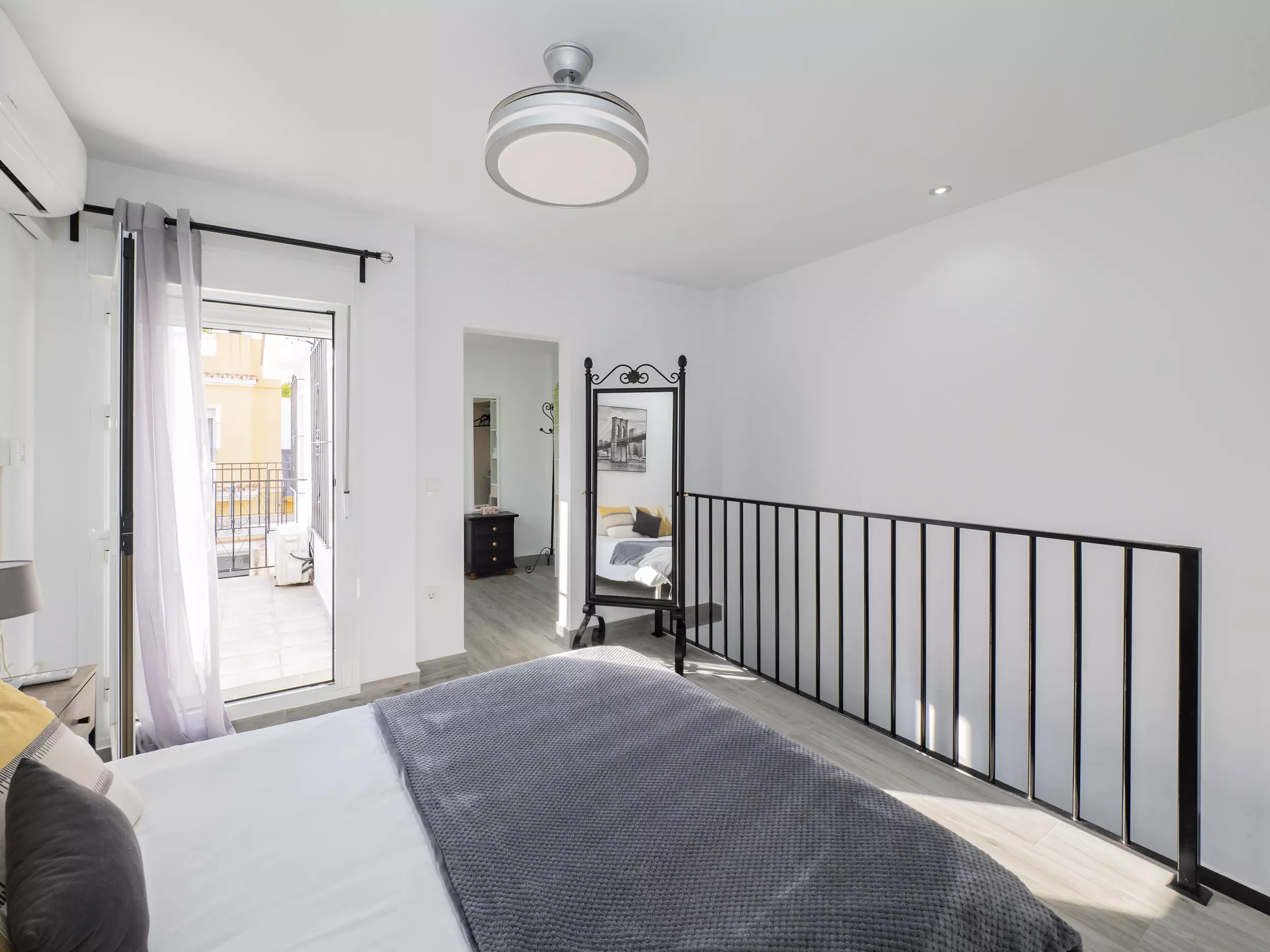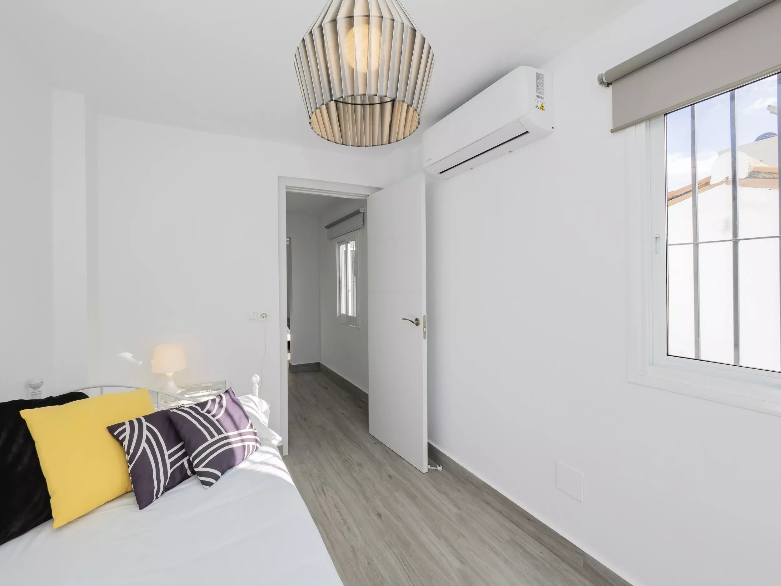La chambre principale se trouve à l'étage supérieur, divisée en deux zones connectées par un dressing : un lit de matrimonial et un lit individuel avec accès à la terrasse, des espaces très lumineux qui invitent au repos. ?? La salle de bain comprend un receveur de douche pour plus de confort. De plus, la maison dispose de la climatisation dans toutes les chambres, du chauffage par radiateurs électriques, deux ventilateurs, et un accès internet WiFi pour que vous soyez toujours connecté. ??