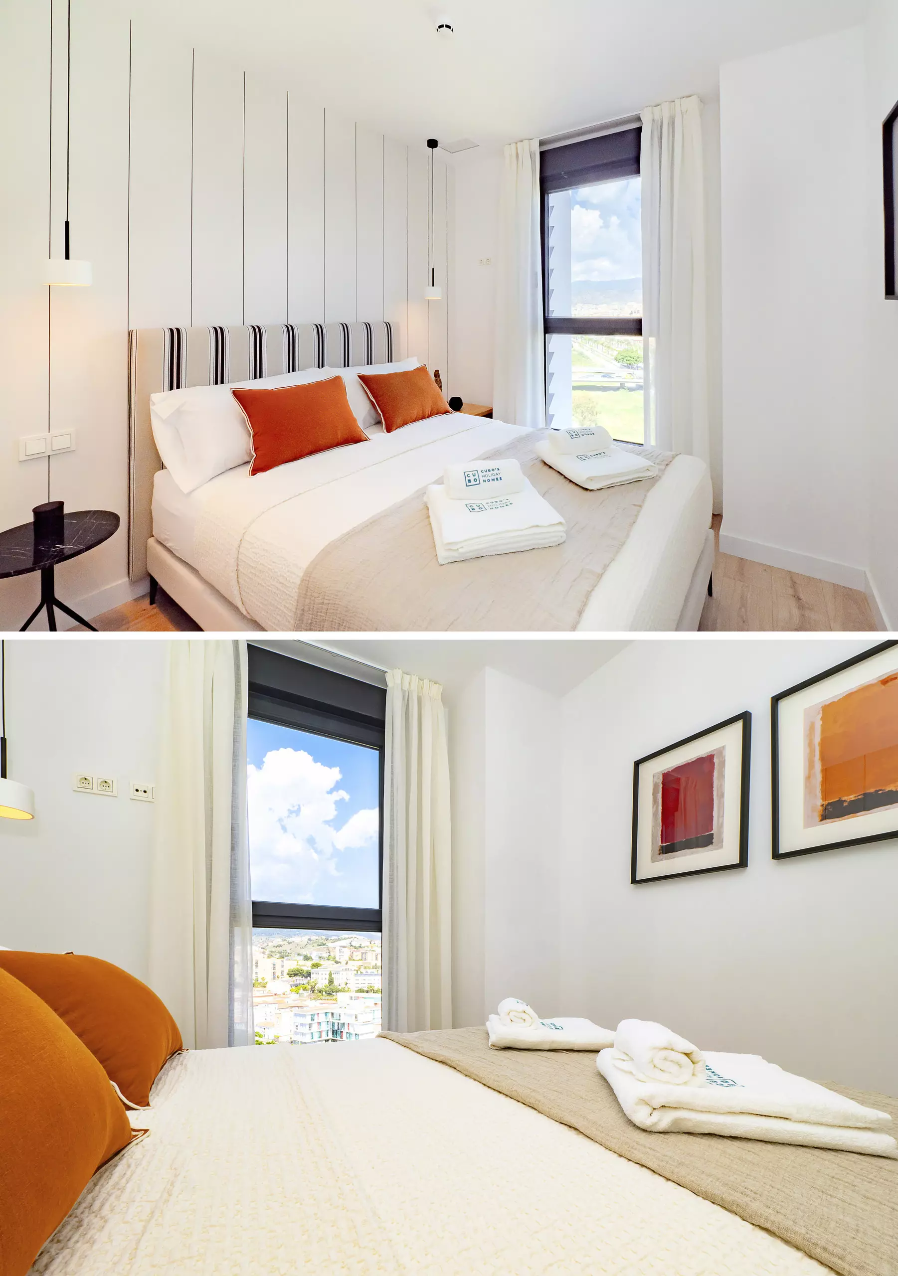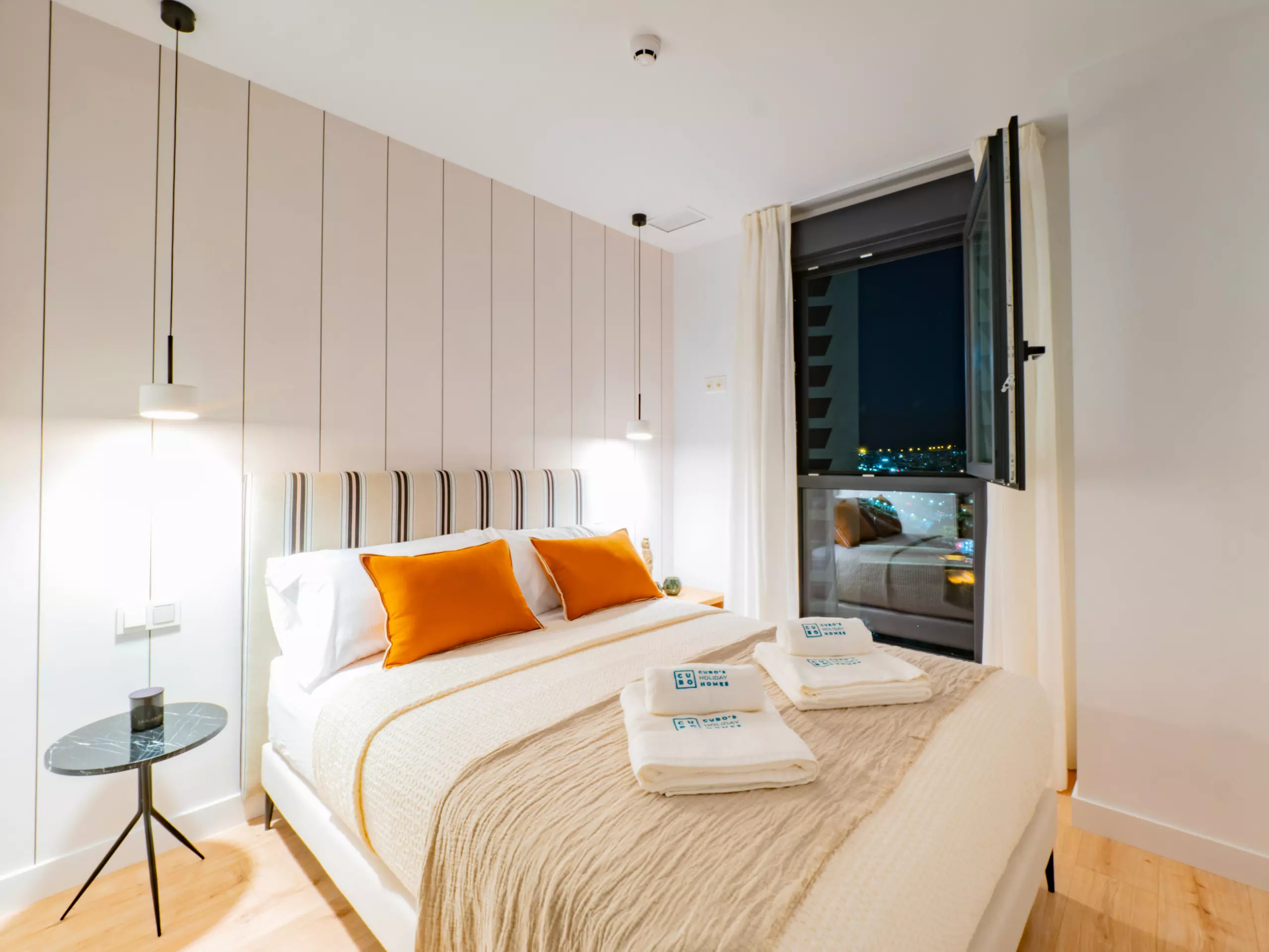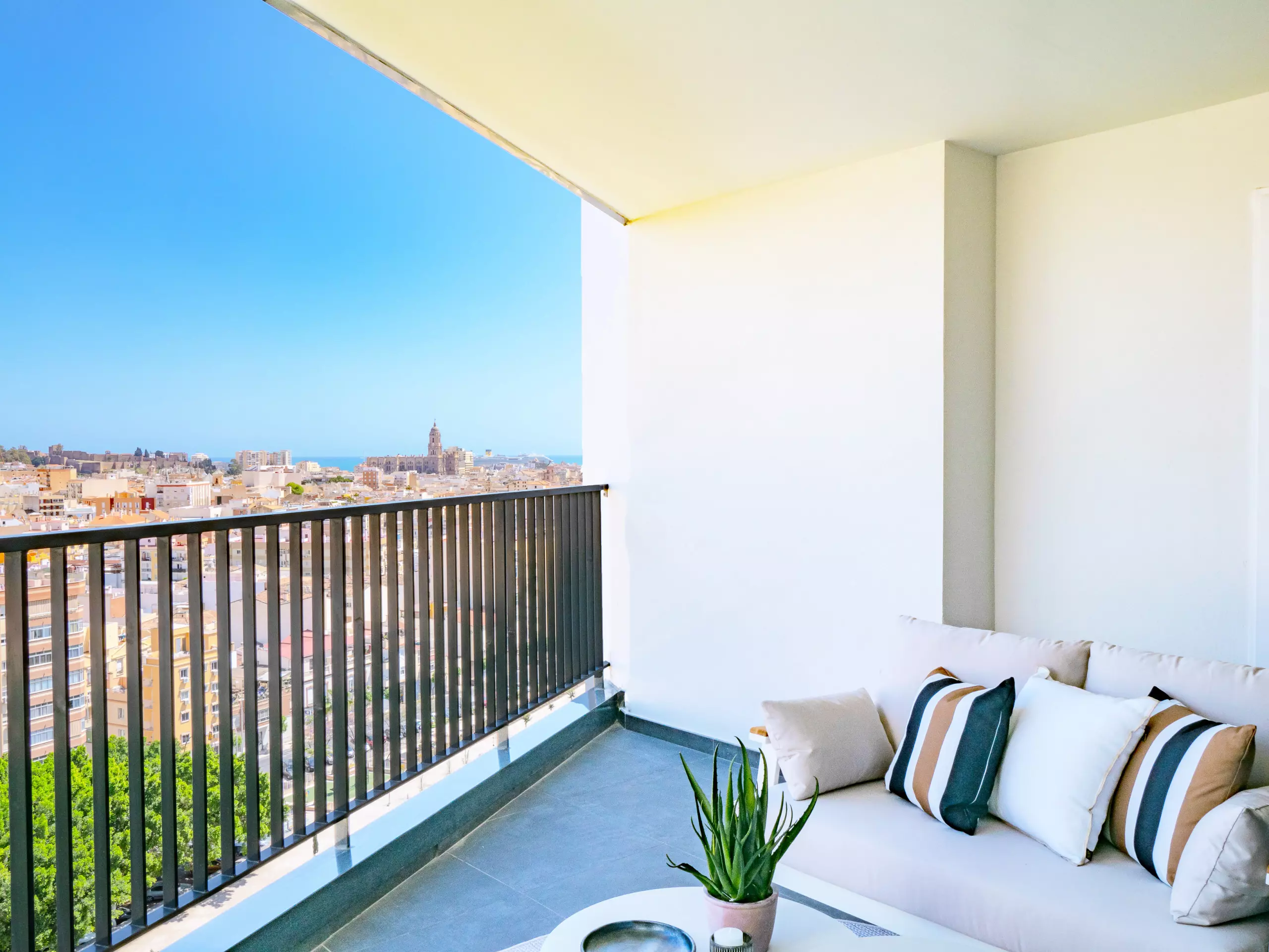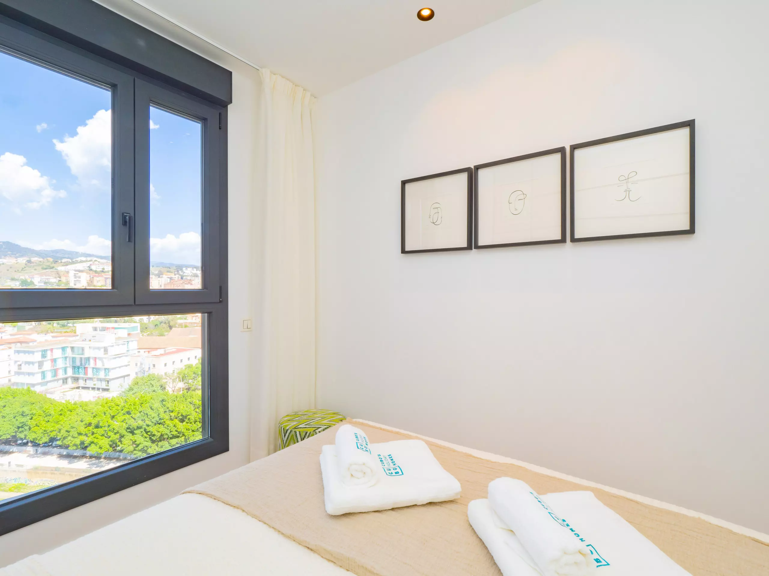 Cet appartement de luxe pour 6 personnes se trouve dans le quartier emblématique de Martiricos, à seulement 15 minutes à pied de la rue Larios animée. Situé au douzième étage des Tours de Martiricos, il offre une expérience unique avec des vues panoramiques sur Malaga et un design intérieur élégant et soigné. Avec 98 m², le logement dispose de trois chambres : deux avec des lits doubles (dont une avec salle de bain attenante) et une troisième avec deux lits individuels, garantissant un repos confortable et une intimité pour tous les invités.