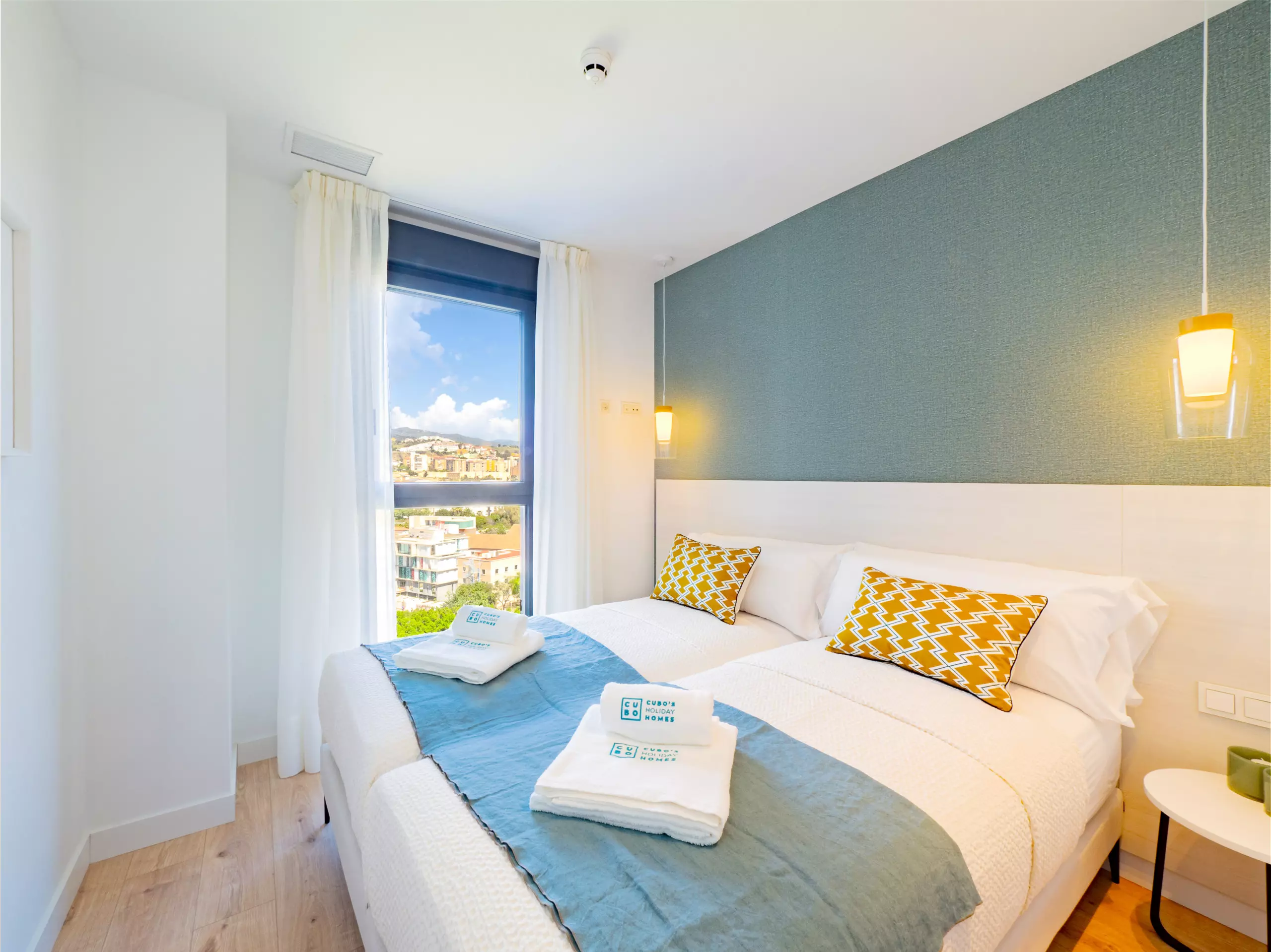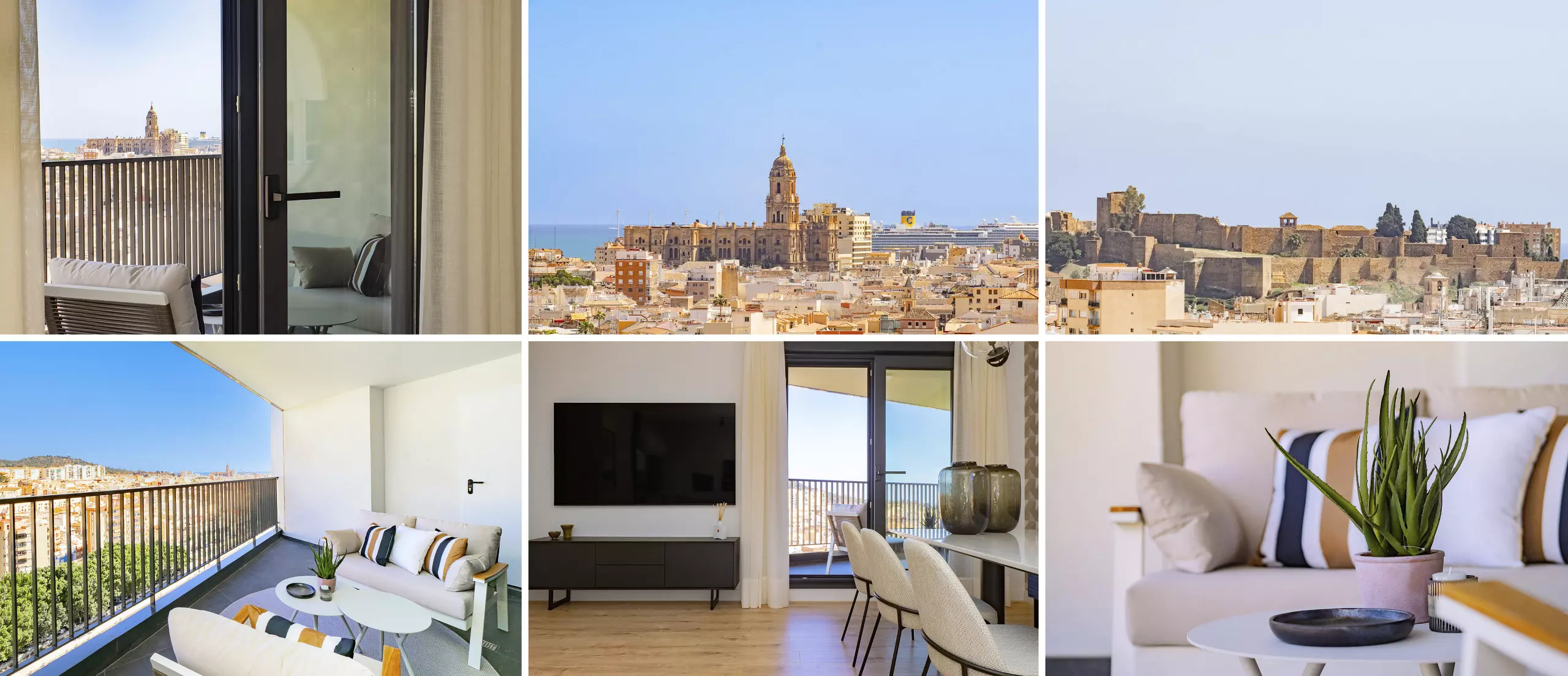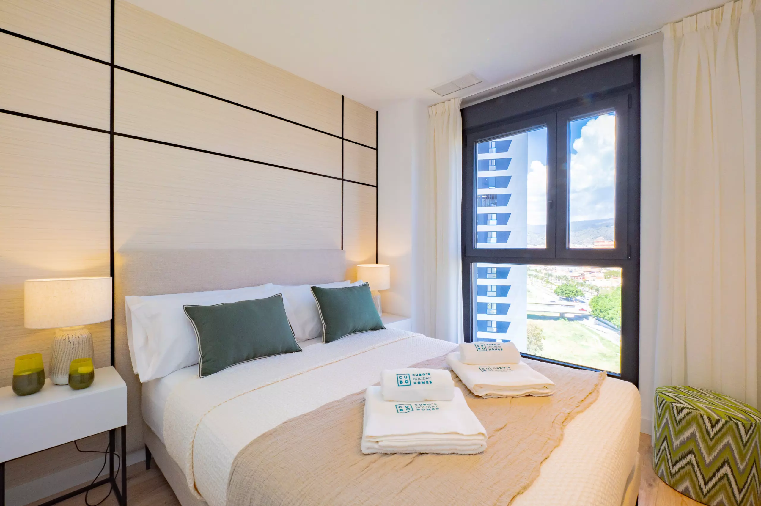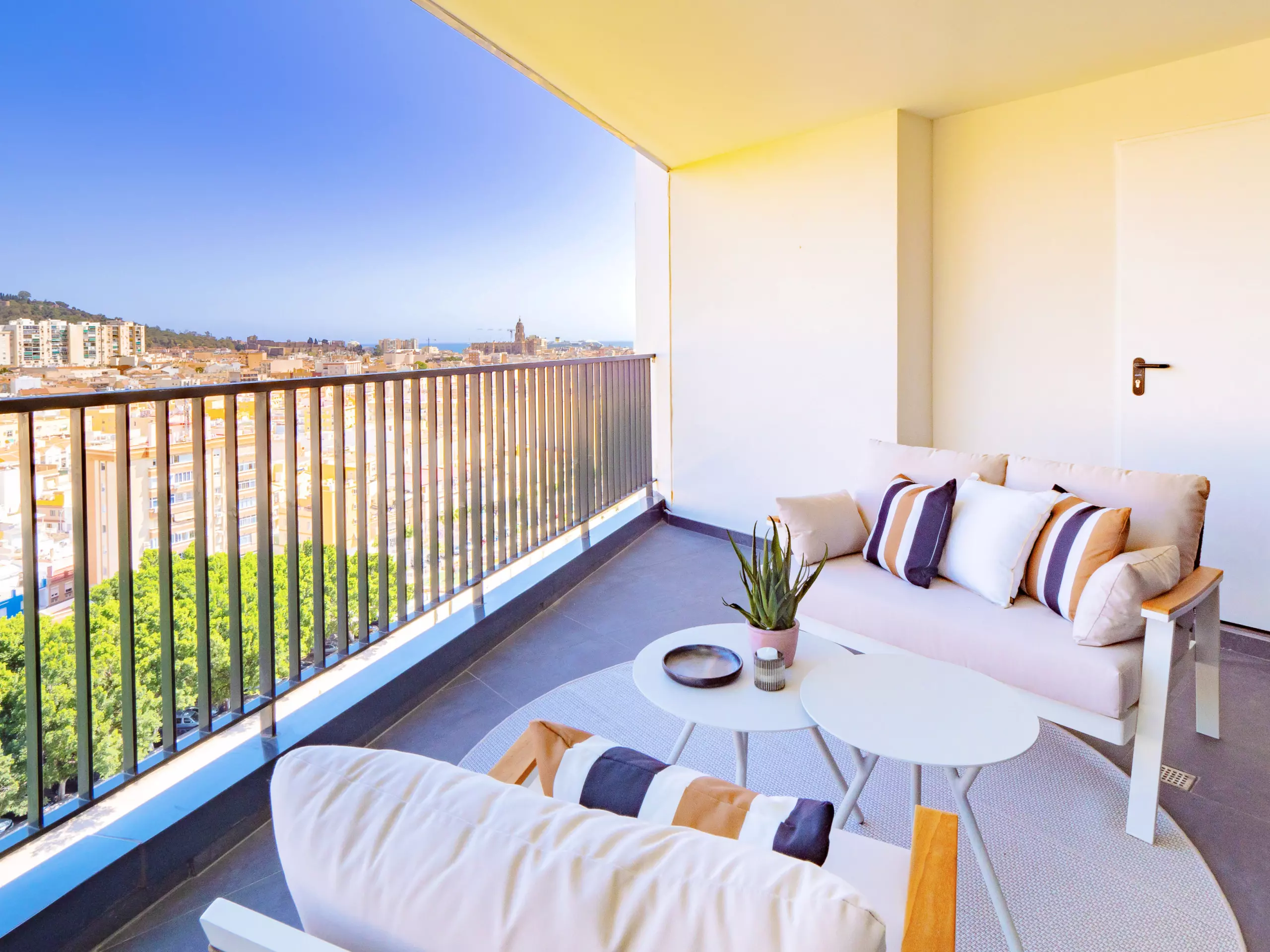 Cet appartement de luxe pour 6 personnes se trouve dans le quartier emblématique de Martiricos, à seulement 15 minutes à pied de la rue Larios animée. Situé au douzième étage des Tours de Martiricos, il offre une expérience unique avec des vues panoramiques sur Malaga et un design intérieur élégant et soigné. Avec 98 m², le logement dispose de trois chambres : deux avec des lits doubles (dont une avec salle de bain attenante) et une troisième avec deux lits individuels, garantissant un repos confortable et une intimité pour tous les invités.