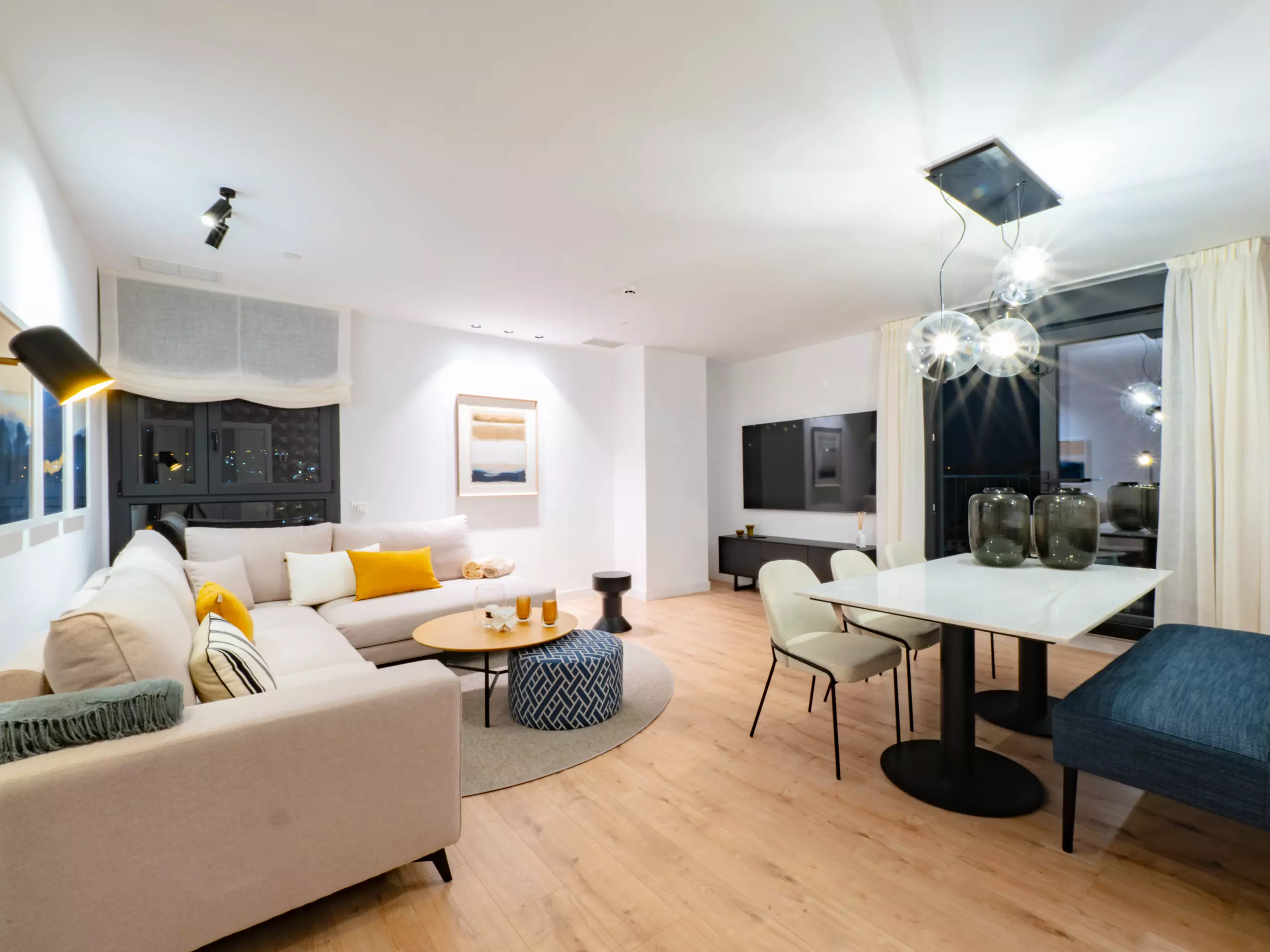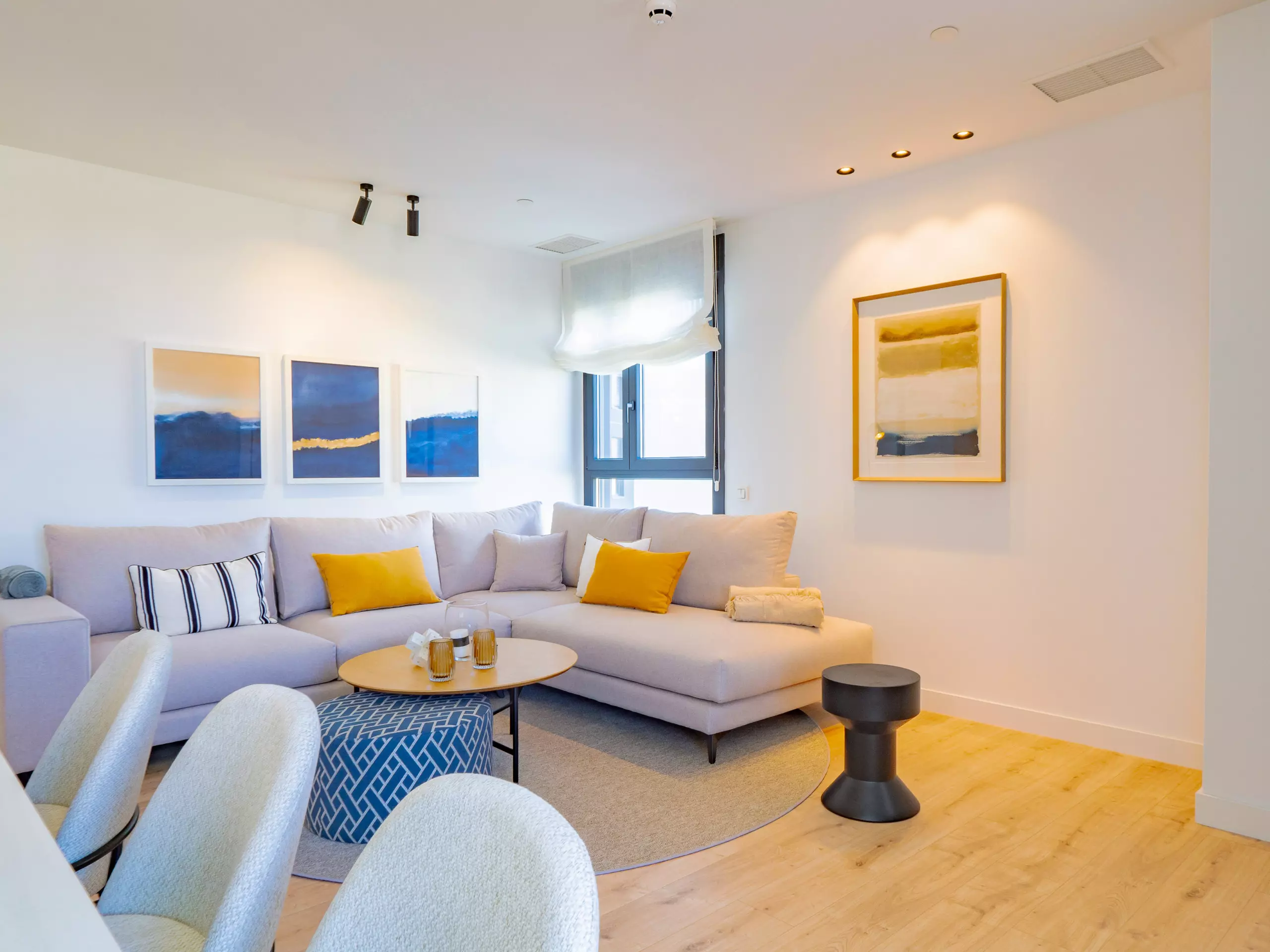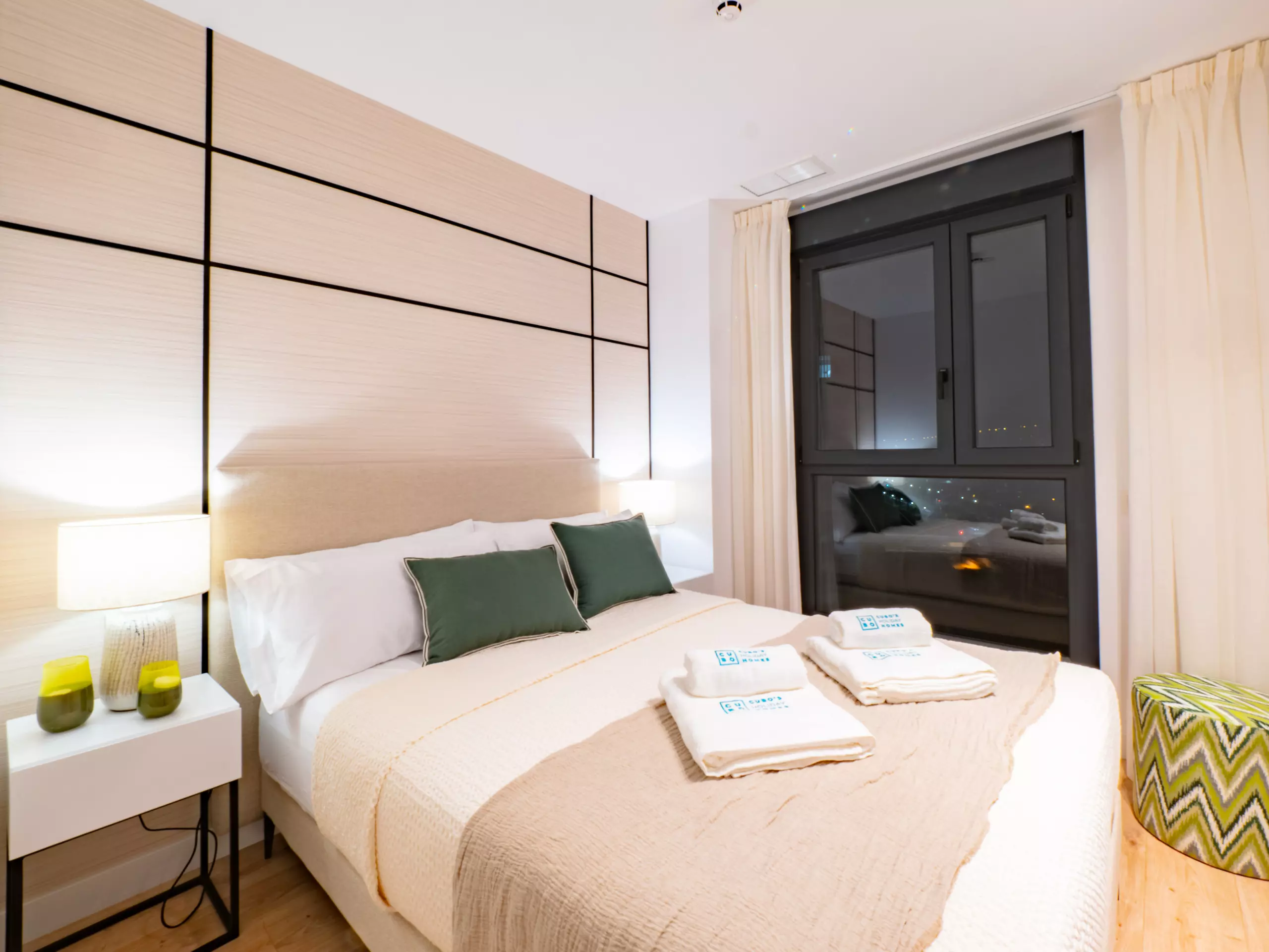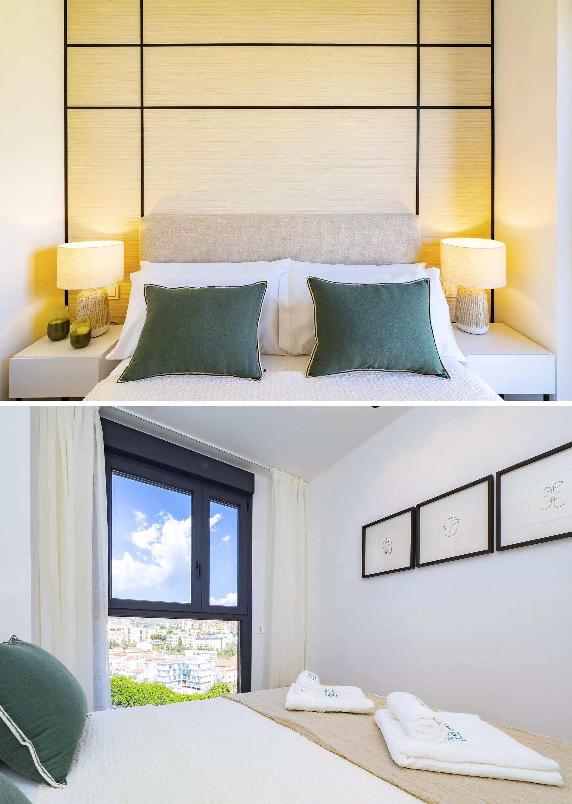 Cet appartement de luxe pour 6 personnes se trouve dans le quartier emblématique de Martiricos, à seulement 15 minutes à pied de la rue Larios animée. Situé au douzième étage des Tours de Martiricos, il offre une expérience unique avec des vues panoramiques sur Malaga et un design intérieur élégant et soigné. Avec 98 m², le logement dispose de trois chambres : deux avec des lits doubles (dont une avec salle de bain attenante) et une troisième avec deux lits individuels, garantissant un repos confortable et une intimité pour tous les invités.