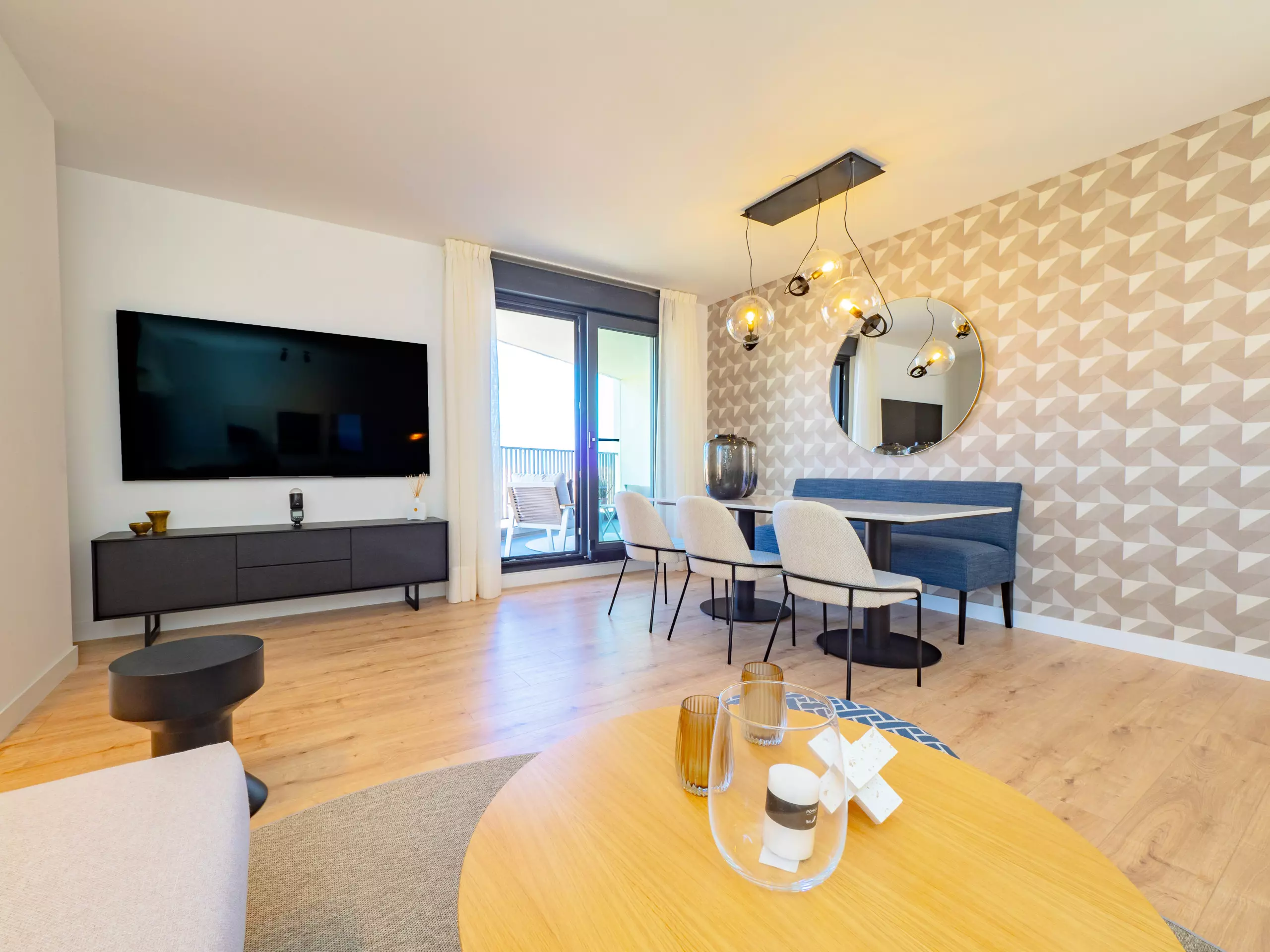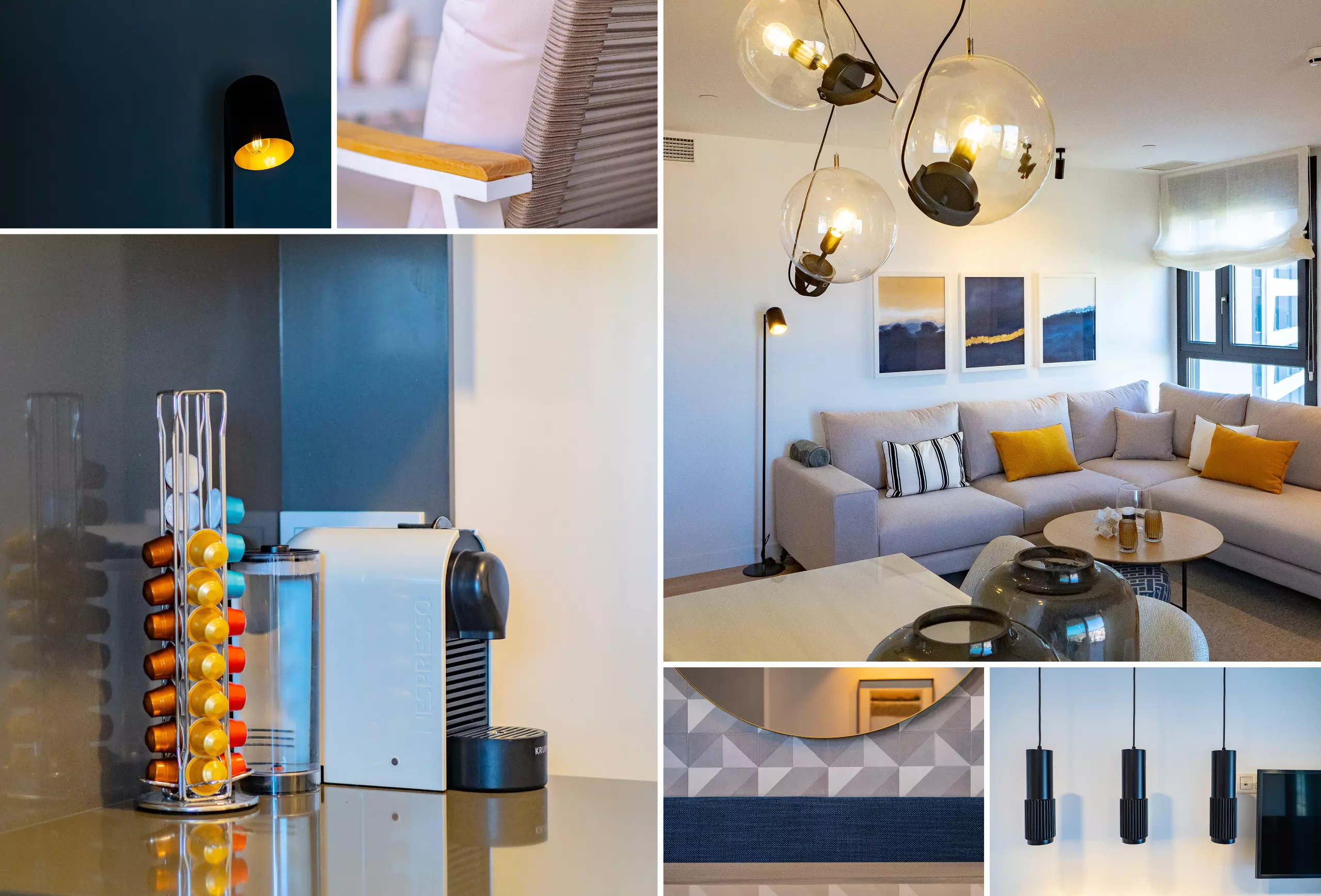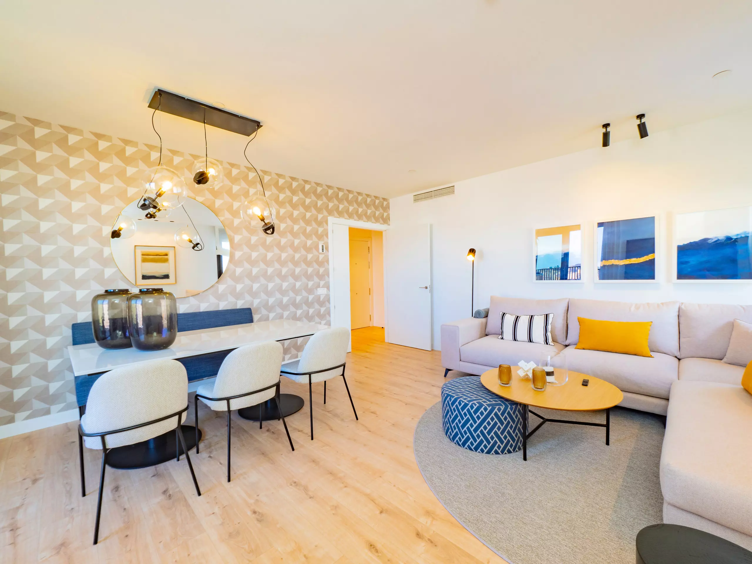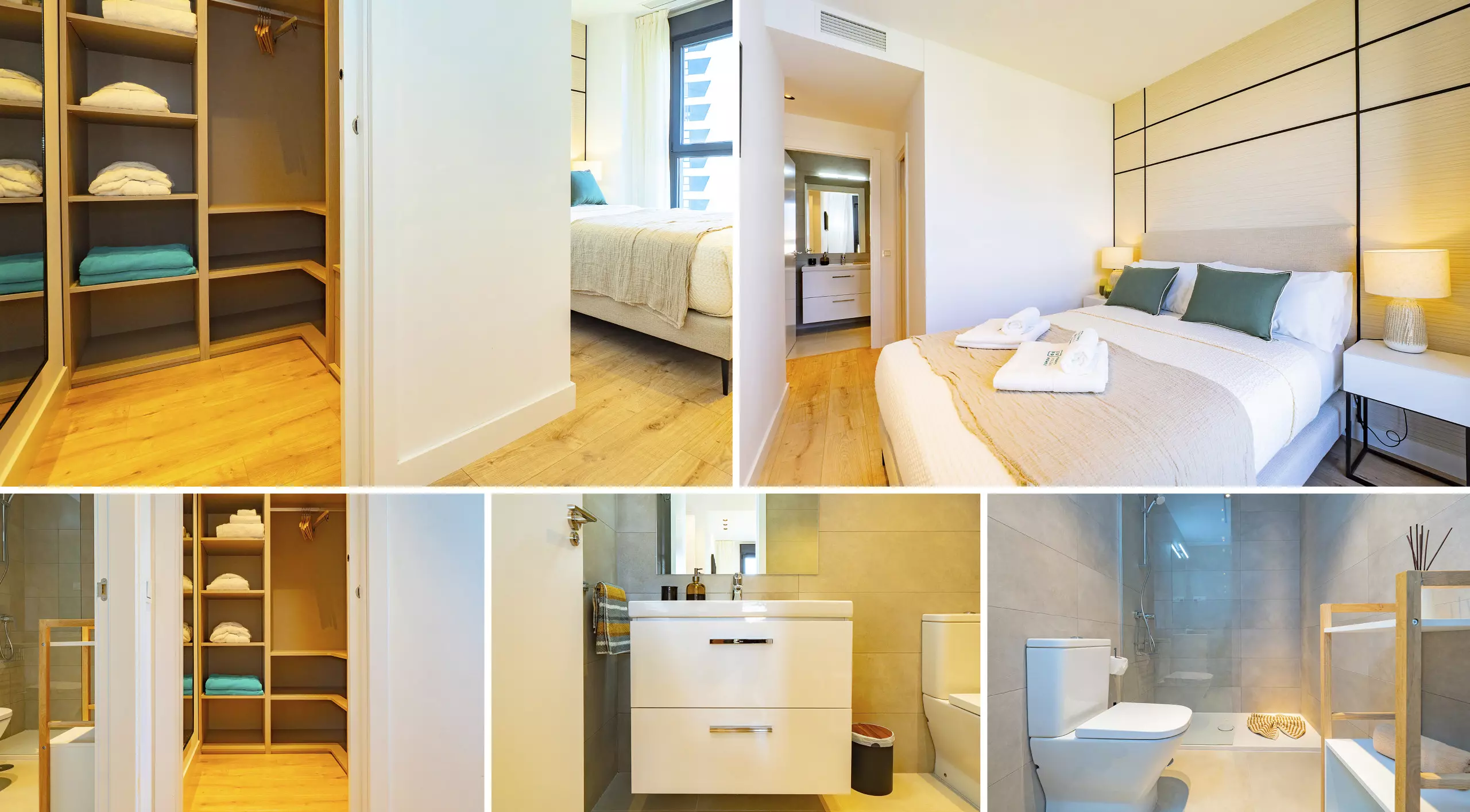 L'appartement dispose d'une cuisine indépendante entièrement équipée avec des appareils électroménagers modernes tels que réfrigérateur, micro-ondes, four, lave-vaisselle, cafetière et plus encore, parfaite pour préparer vos plats préférés. Le salon-salle à manger est spacieux et lumineux, équipé d'une Smart TV pour le divertissement en streaming, et s'ouvre sur une terrasse de 12 m² où vous pourrez profiter du lever du soleil sur la ville. De plus, il dispose d'un lave-linge, sèche-linge, fer à repasser, chauffage central et climatisation dans tout l'espace pour votre confort pendant toute l'année.