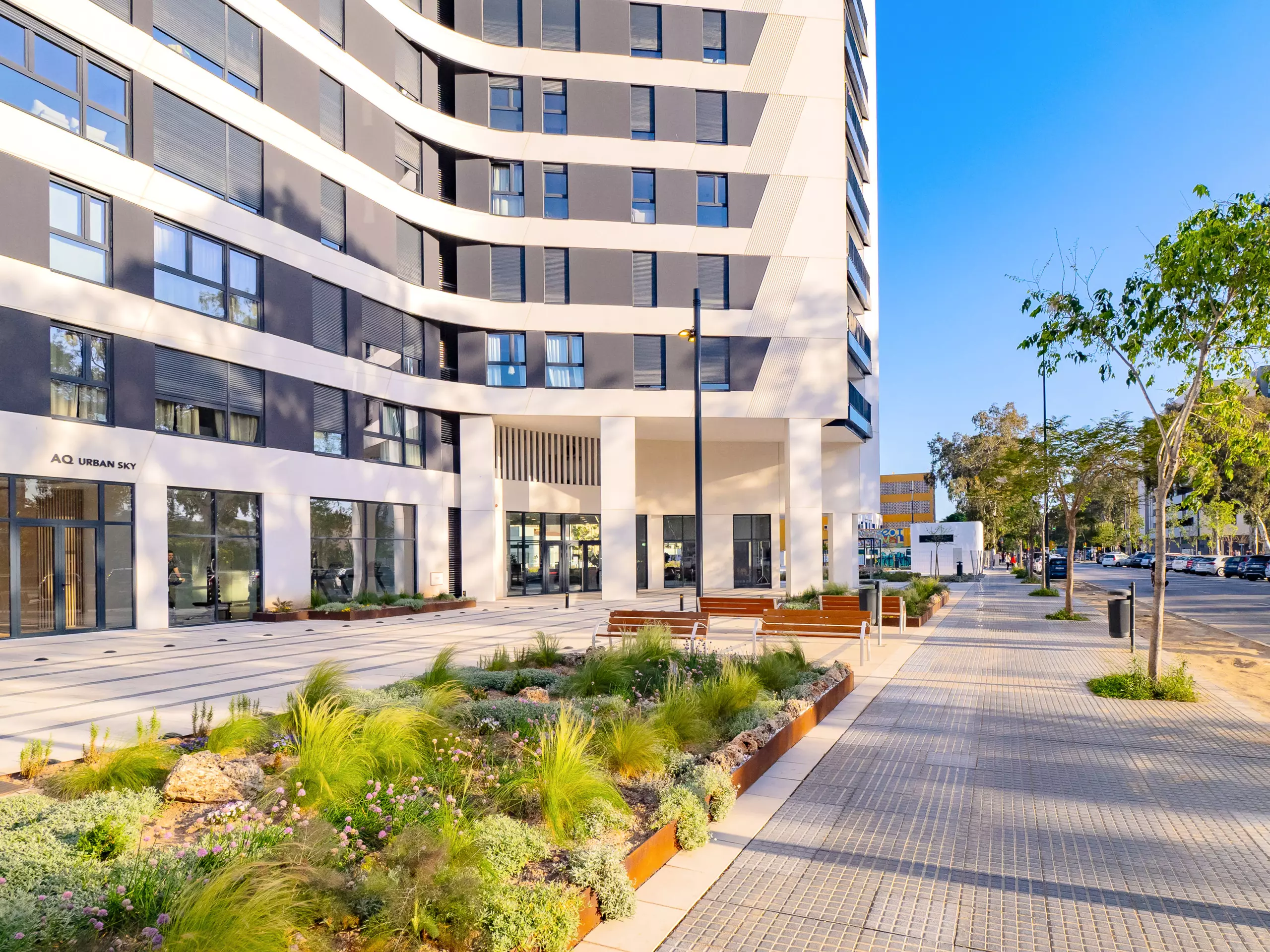 En ce qui concerne les zones communes, vous pourrez vous détendre dans la piscine communautaire située sur le toit du 30e étage, idéale pour prendre un bain de soleil et admirer les vues, bien que cette piscine soit fermée du 15 septembre au 31 mai. Vous profiterez également d'un espace multifonctionnel au rez-de-chaussée avec une salle de projection, un espace de coworking, une salle de sport et une zone pour enfants avec des jeux, accessibles via une application innovante. La zone de la piscine a une capacité maximale de 30 personnes et nécessite une réservation préalable.