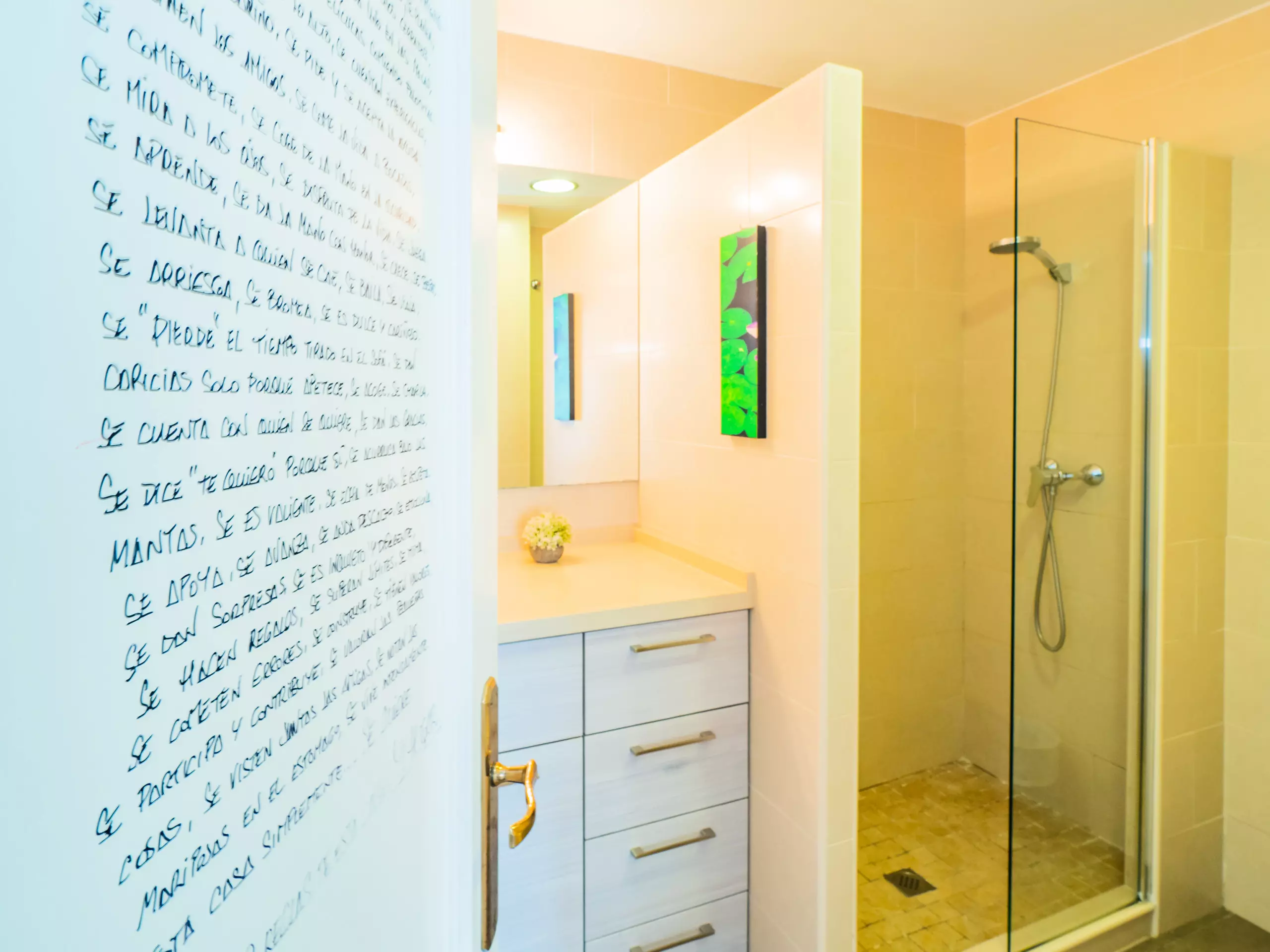Les chambres sont réparties pour offrir intimité et repos : une avec un lit de mariage, un espace pour les bagages et beaucoup de lumière ; une autre chambre avec un lit de mariage et une grande armoire ; et une troisième chambre avec un lit de mariage, télévision et salle de bain attenante. De plus, il y a une salle de bain supplémentaire avec une douche dans le couloir qui relie les chambres. ??