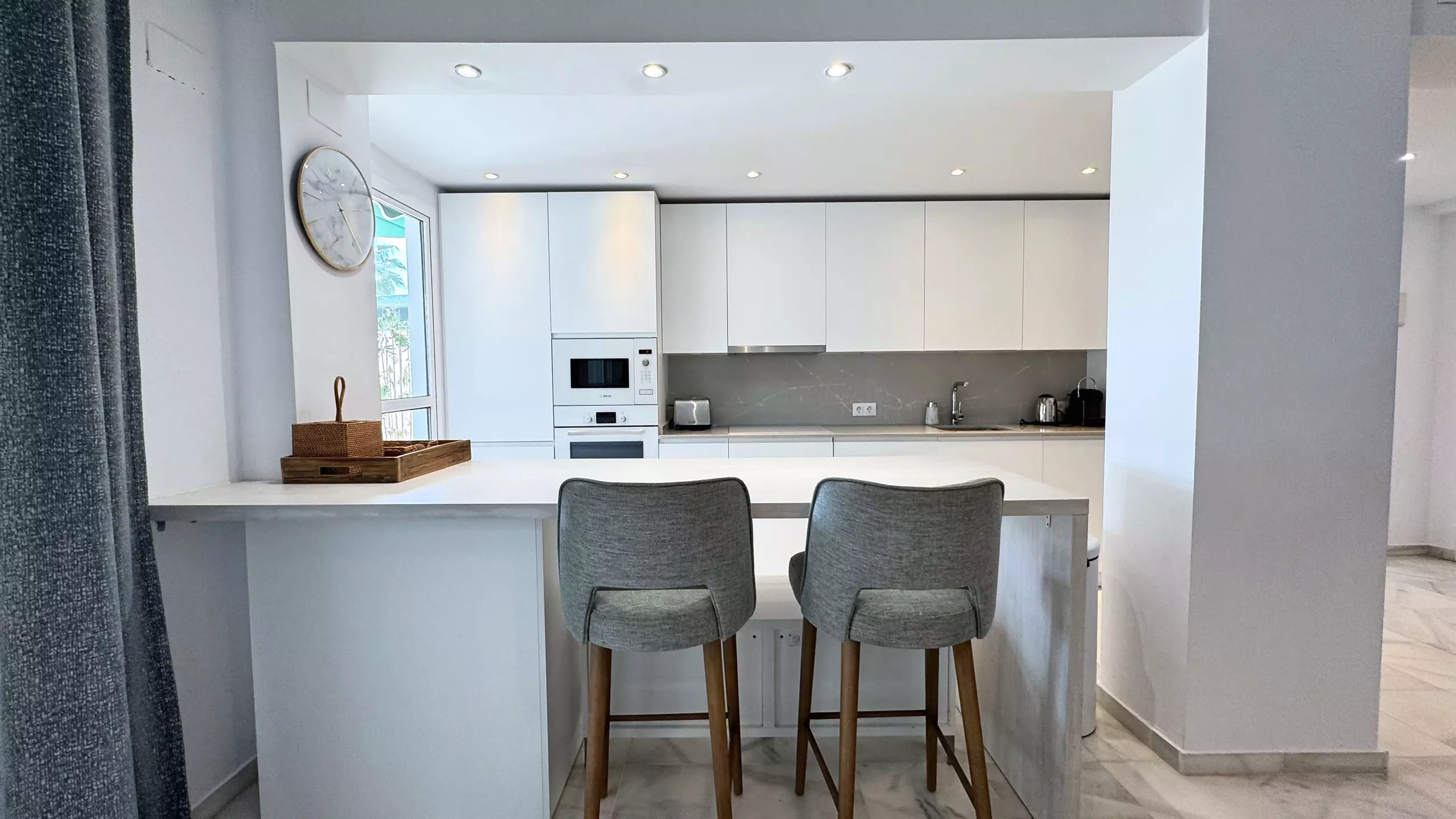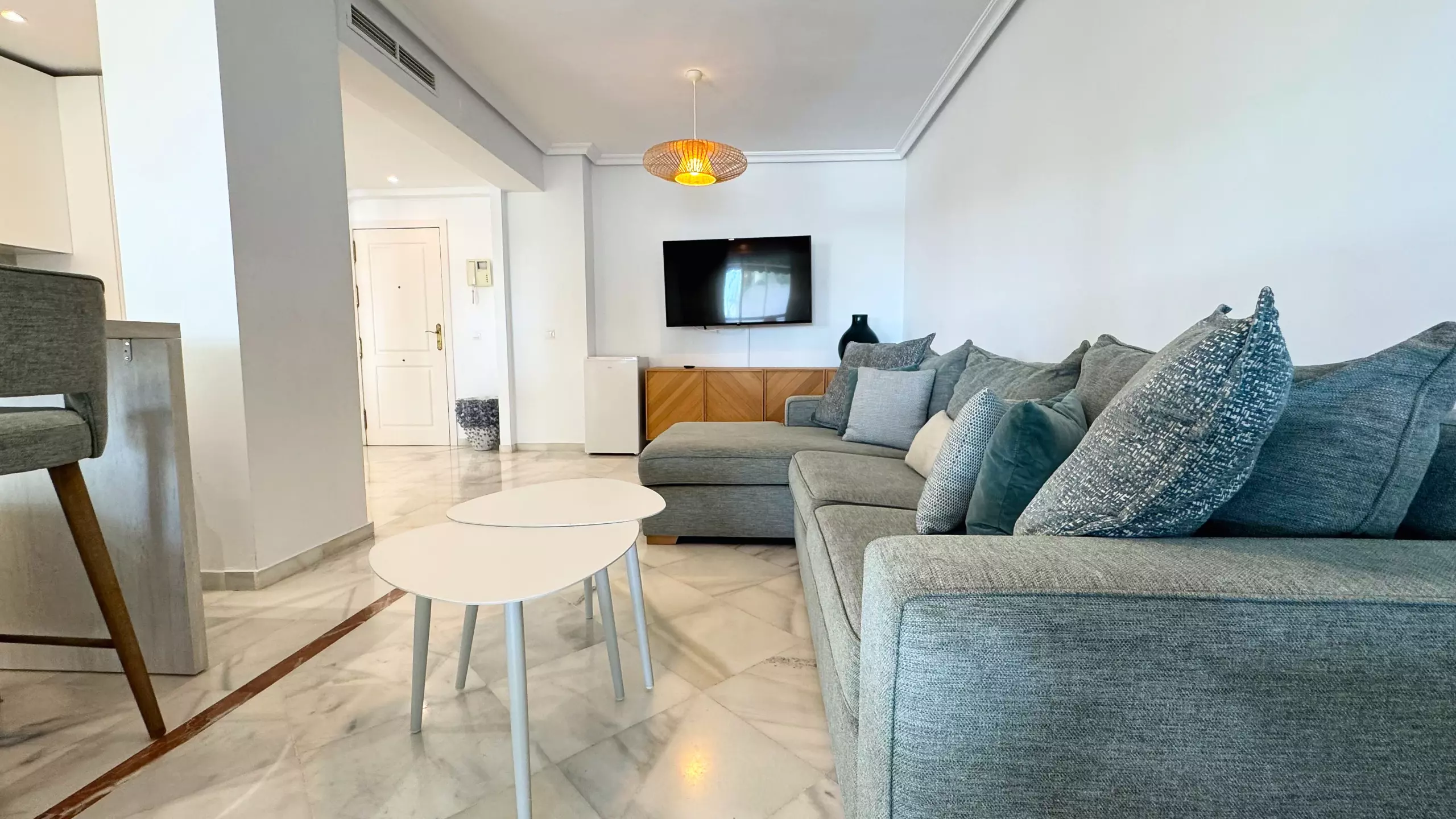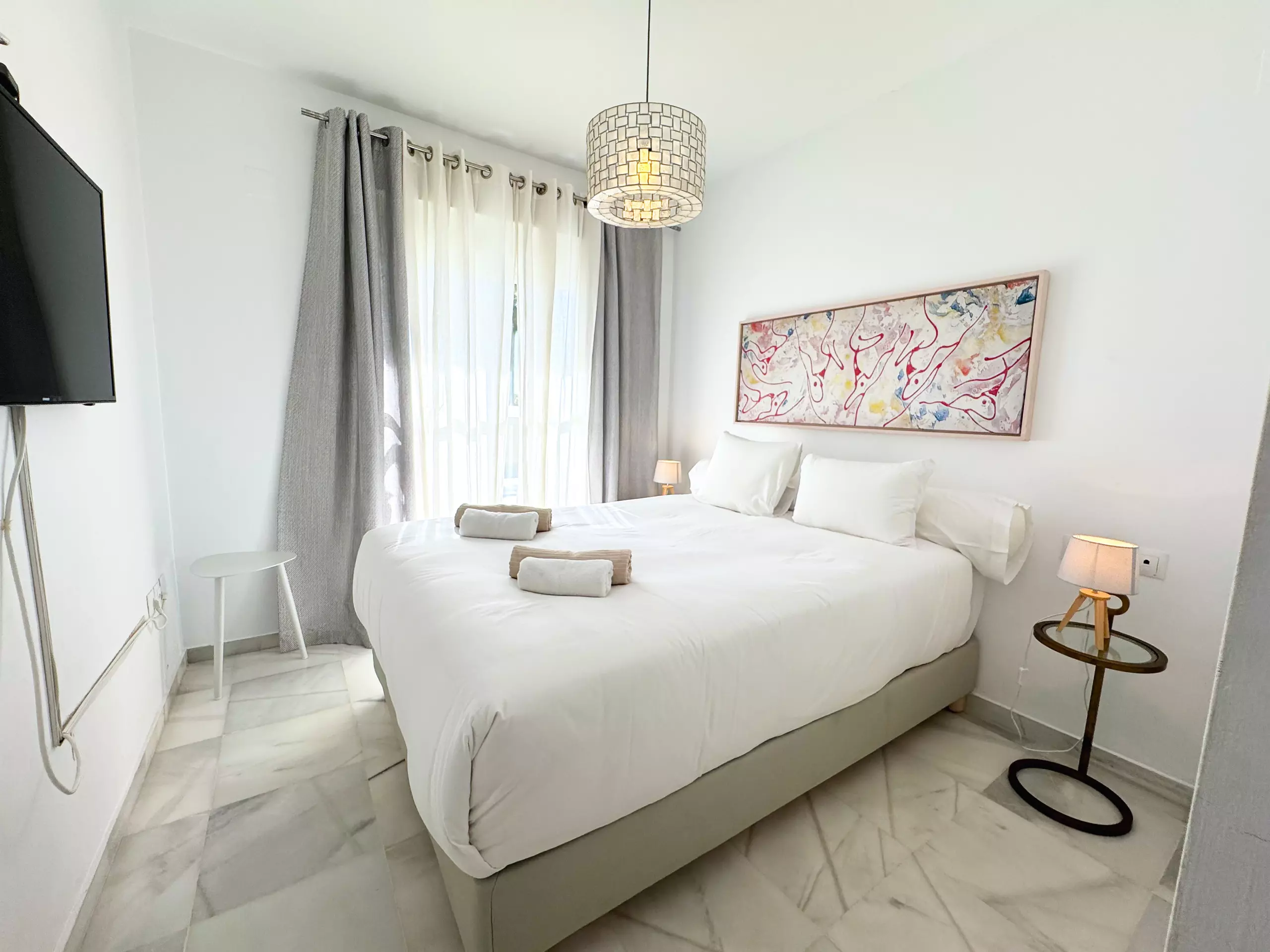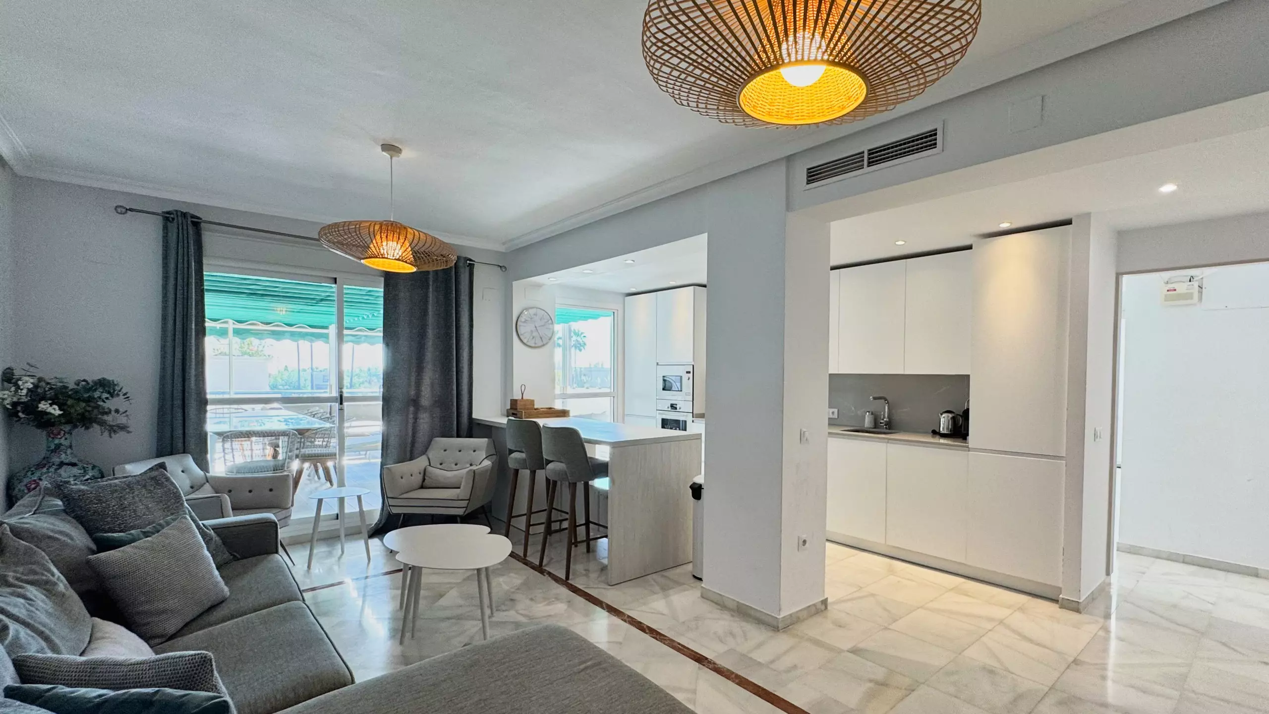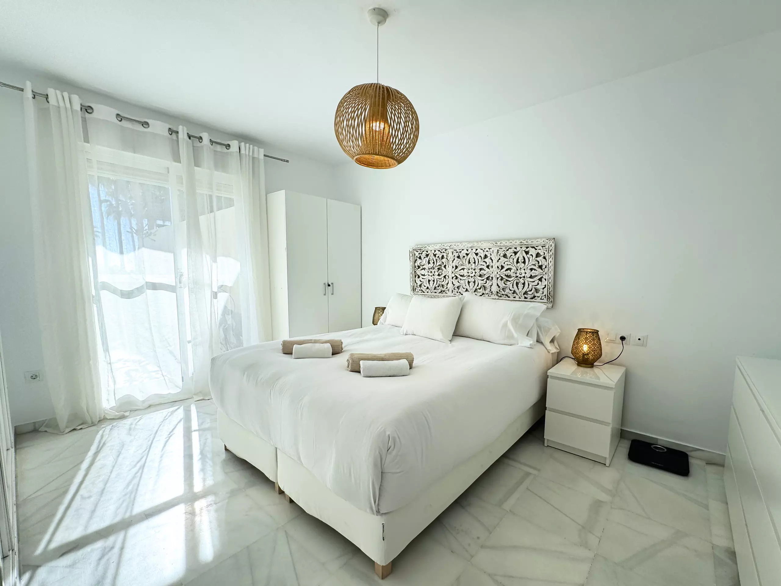 Profitez d'un séjour agréable dans ce bel appartement moderne orienté plein sud à Locrimar Phase V, Marbella, situé dans un quartier résidentiel calme à quelques minutes de Puerto Banús.