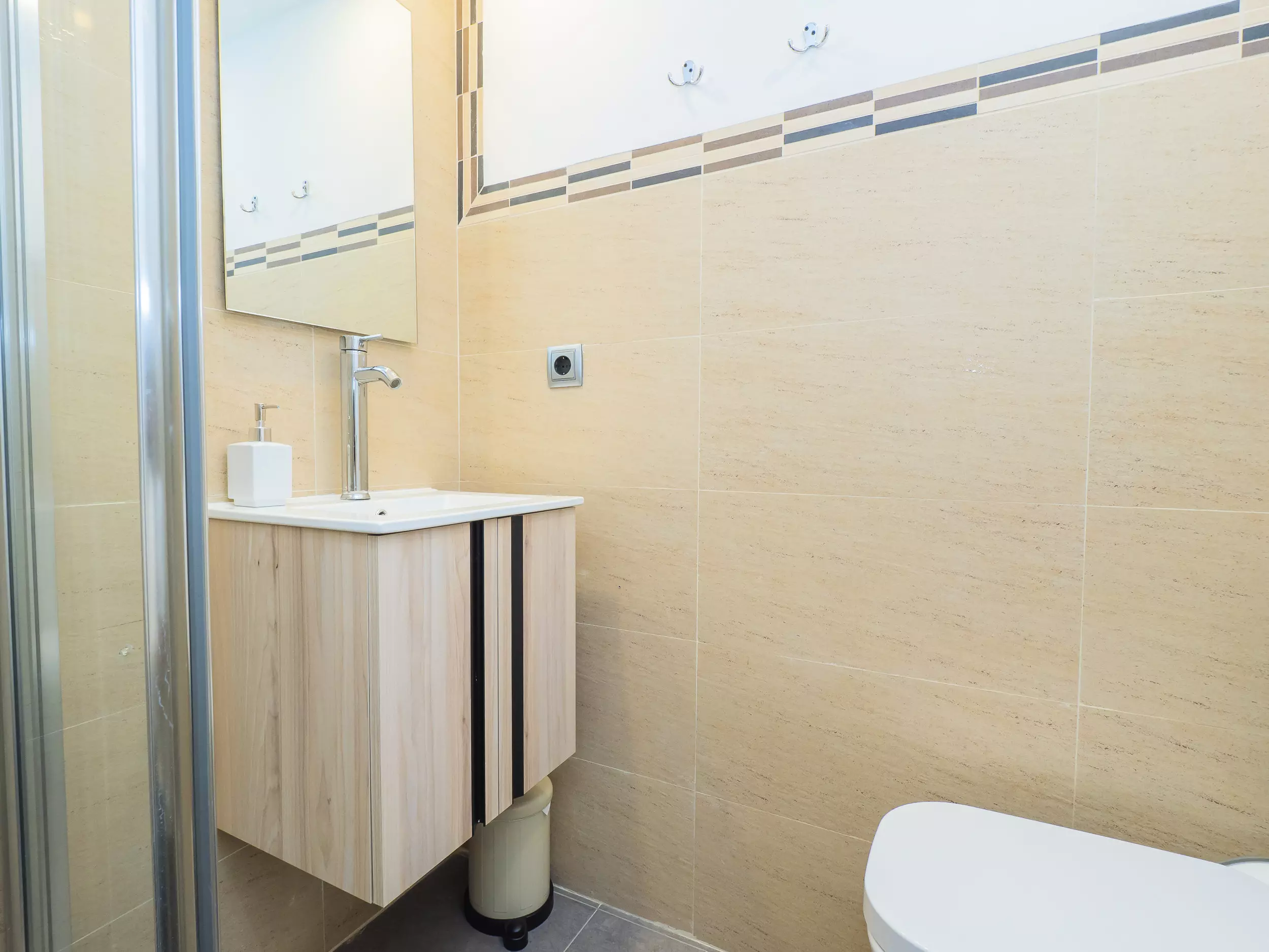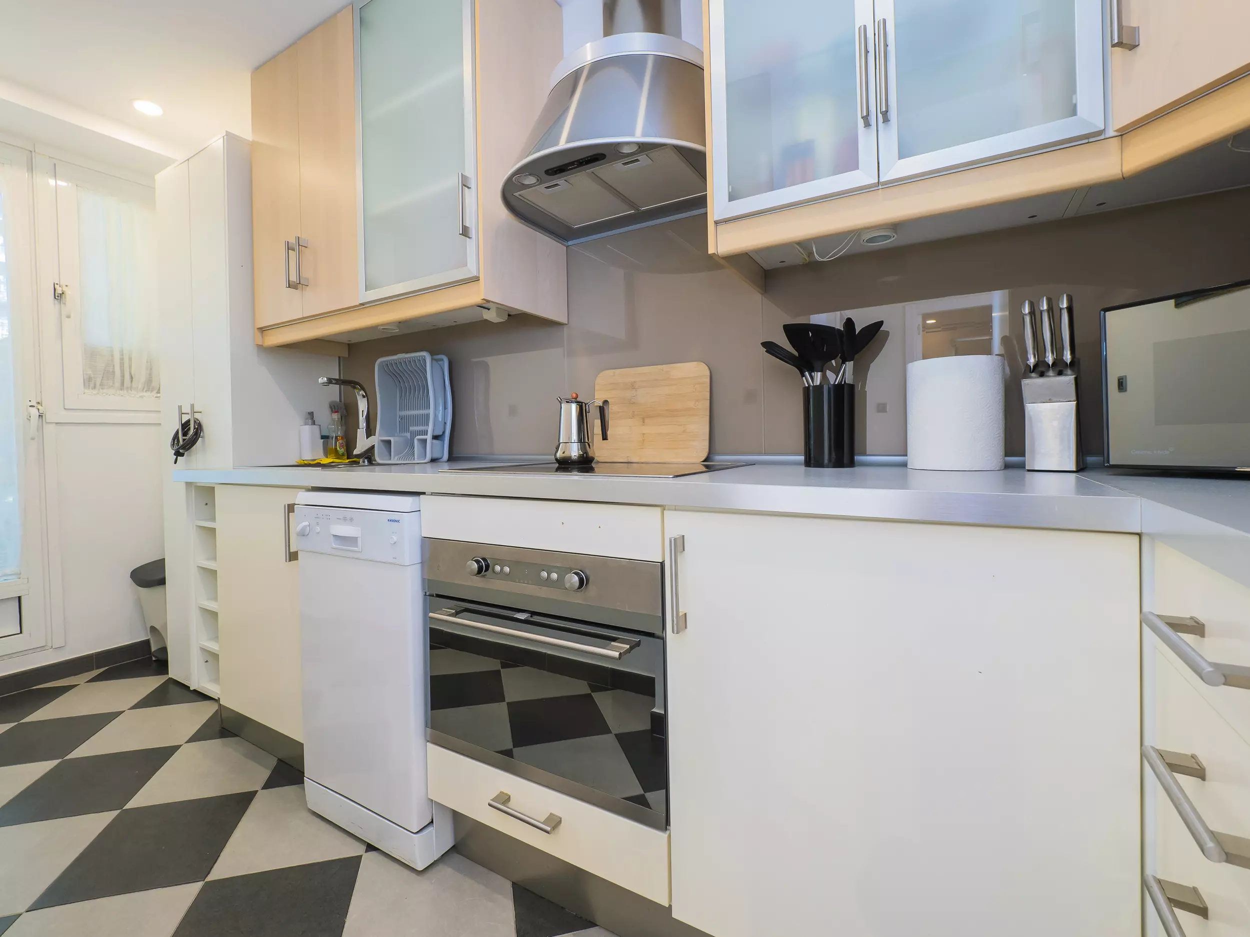 L'appartement dispose d'un ascenseur, d'un garage dans le même bâtiment, d'un lave-linge, d'un fer à repasser, d'un sèche-cheveux et d'une alarme pour votre confort et votre sécurité. La cuisine indépendante est équipée d'une plaque vitrocéramique, d'un réfrigérateur, d'un congélateur, d'une cafetière, d'un grille-pain, d'une bouilloire et d'un presse-agrumes, pour qu'aucun détail ne manque pendant votre séjour.
