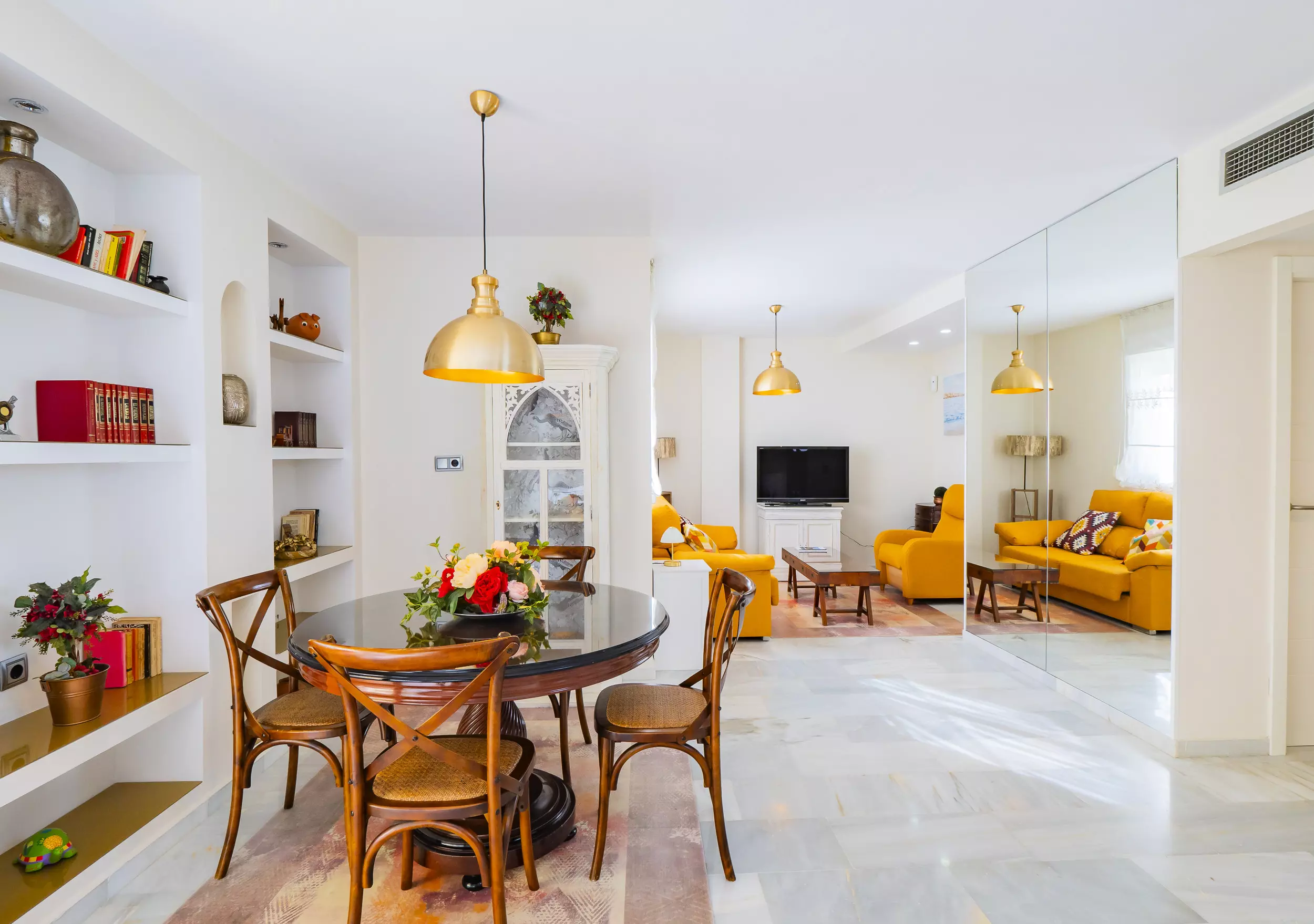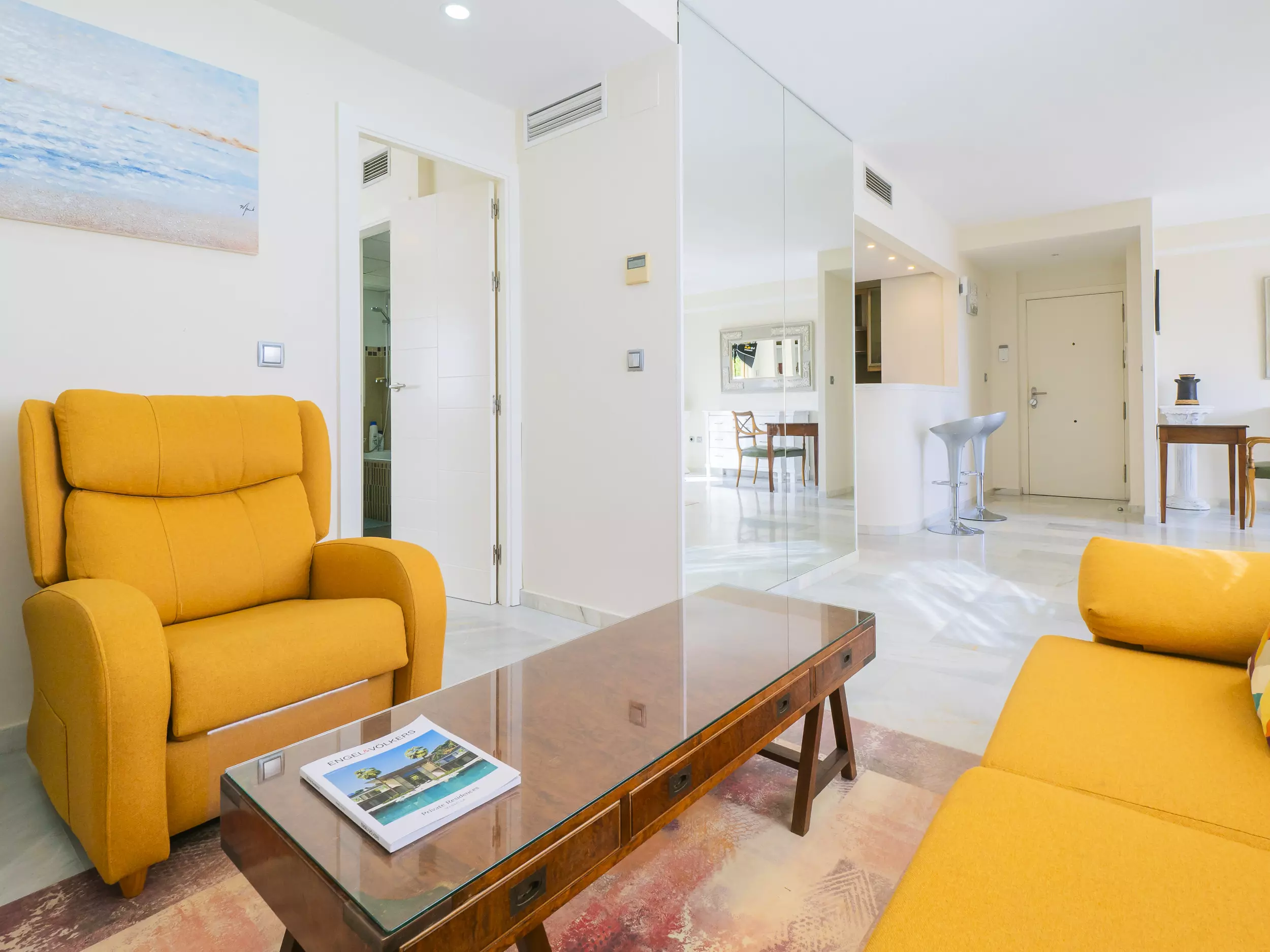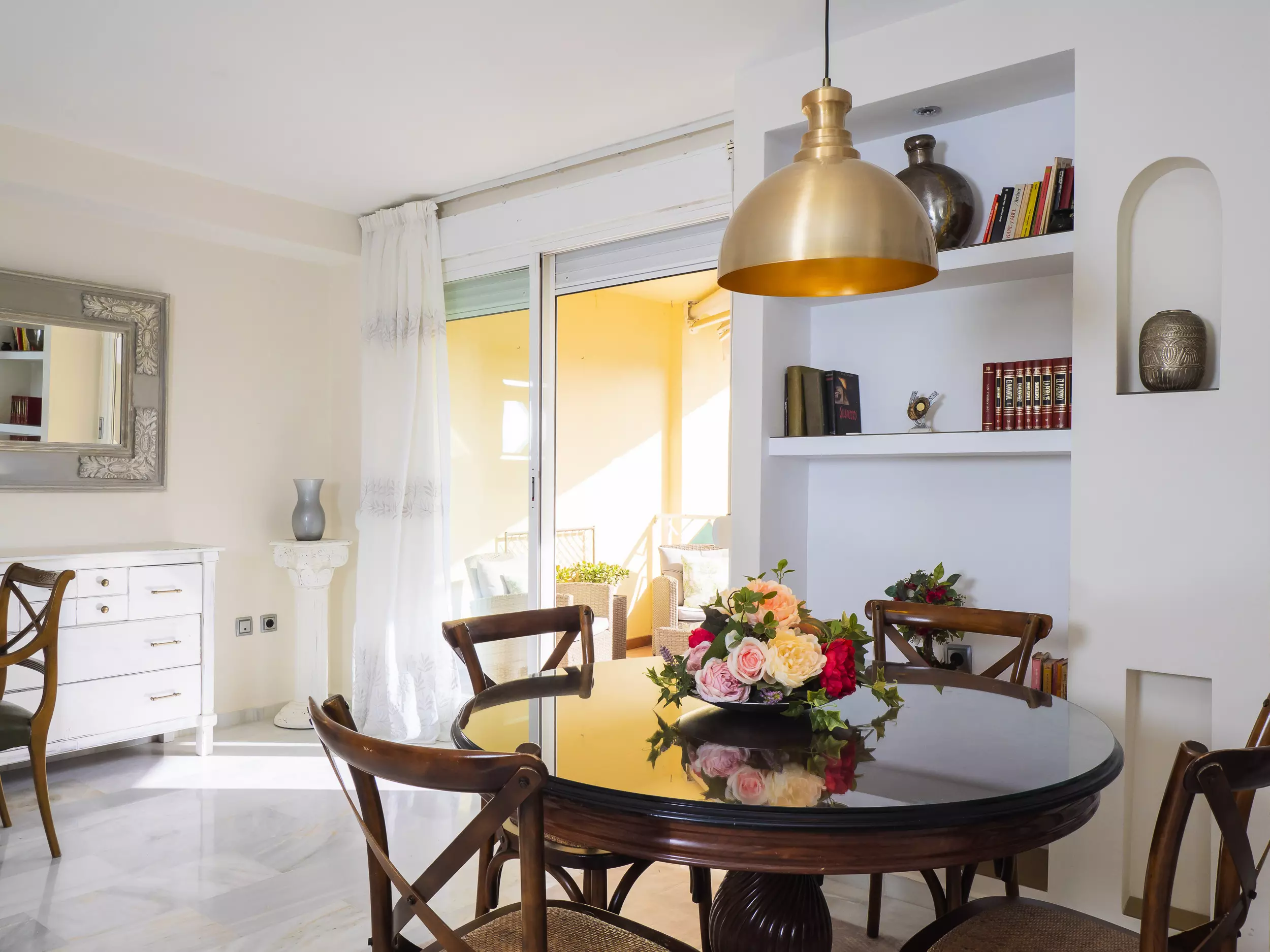 Cet appartement spacieux à Marbella, pouvant accueillir 4 personnes, offre un séjour confortable et relaxant dans un emplacement privilégié. Il dispose de deux chambres élégamment décorées, la principale avec une salle de bain de luxe attenante, et une deuxième salle de bain complète. La cuisine est entièrement équipée d'appareils modernes tels que four, micro-ondes et lave-vaisselle, parfaite pour préparer vos plats préférés. Le salon est lumineux et dispose d'un accès direct à une terrasse spacieuse et meublée, idéale pour les petits-déjeuners en plein air ou les dîners sous les étoiles. De plus, l'appartement est équipé de la climatisation, du chauffage, du wifi et de trois téléviseurs pour votre divertissement.