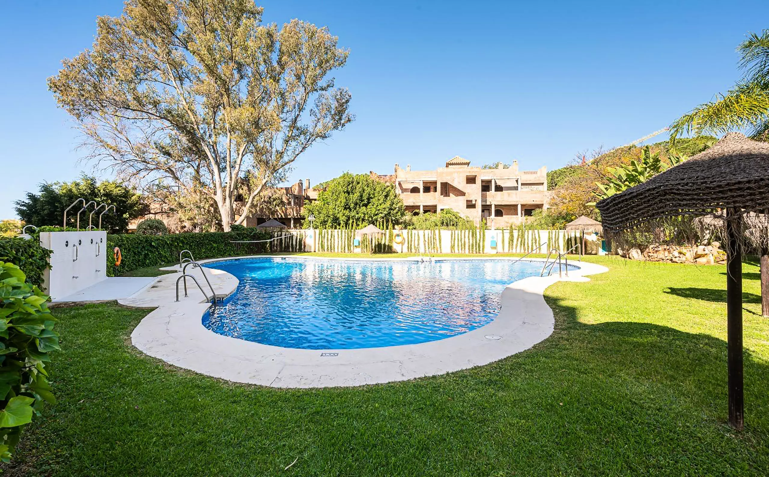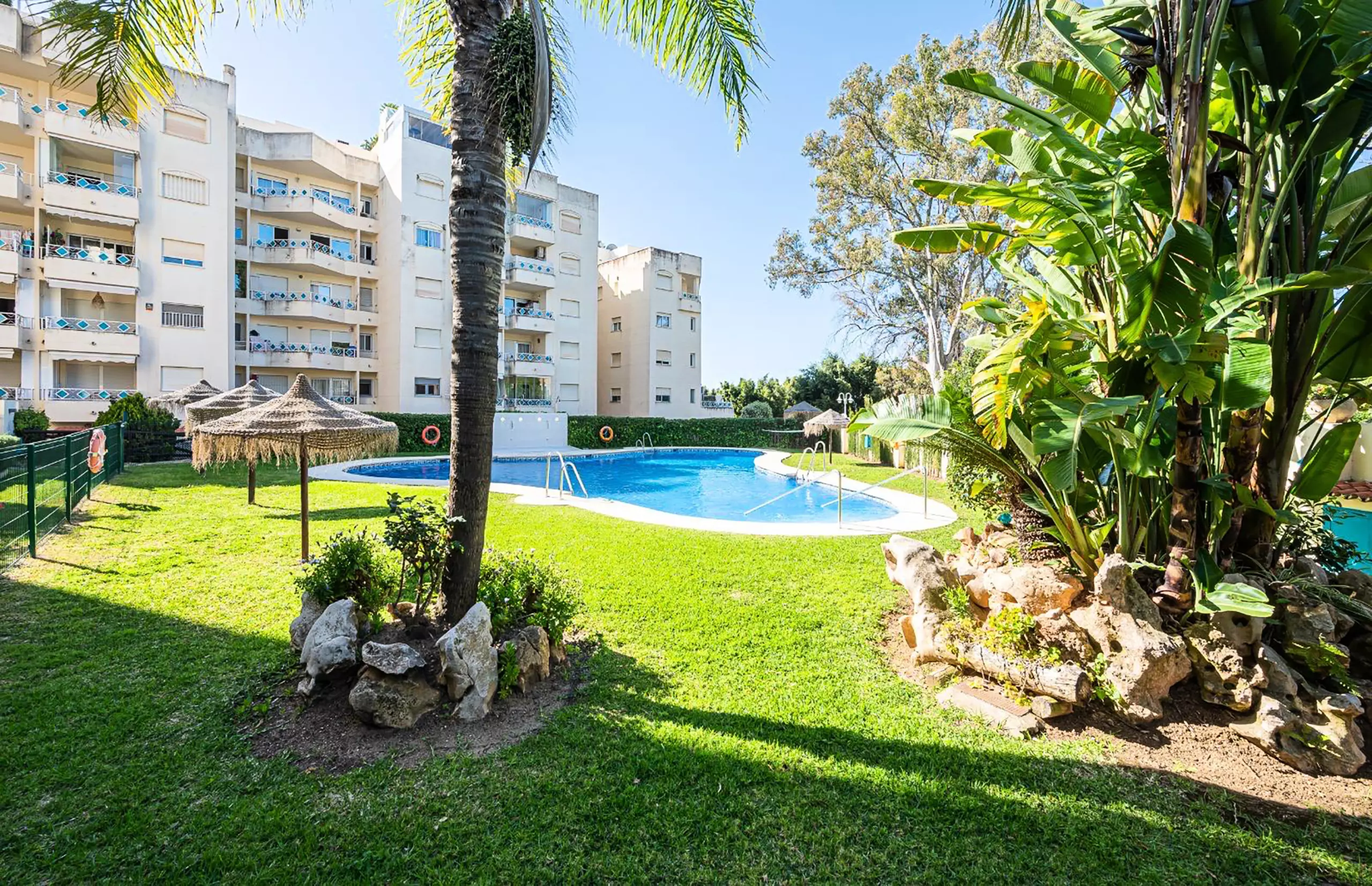 Le complexe offre une belle piscine communautaire entourée de jardins bien entretenus, un espace idéal pour se rafraîchir et se détendre. L'emplacement est calme et sûr, à quelques minutes en voiture du centre de Marbella, avec un accès facile aux restaurants, magasins et activités de loisirs. À seulement 500 mètres, vous trouverez des plages de sable fin et une offre gastronomique variée, comme le restaurant local "Chiringuito Bono Beach".