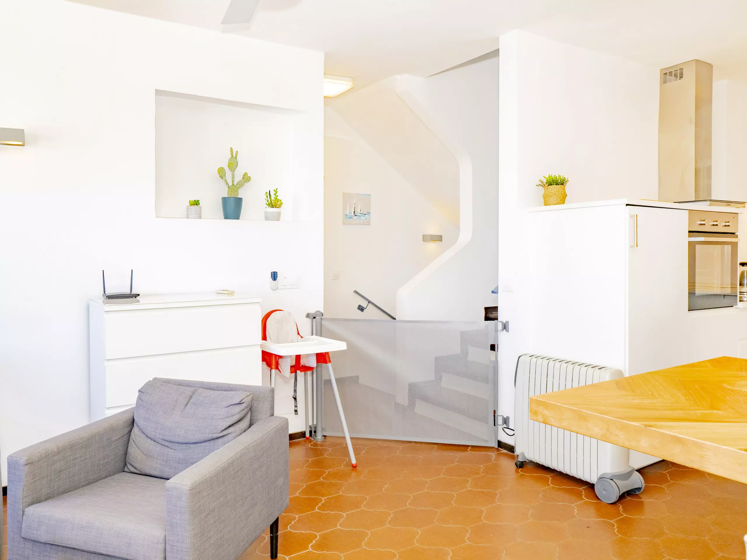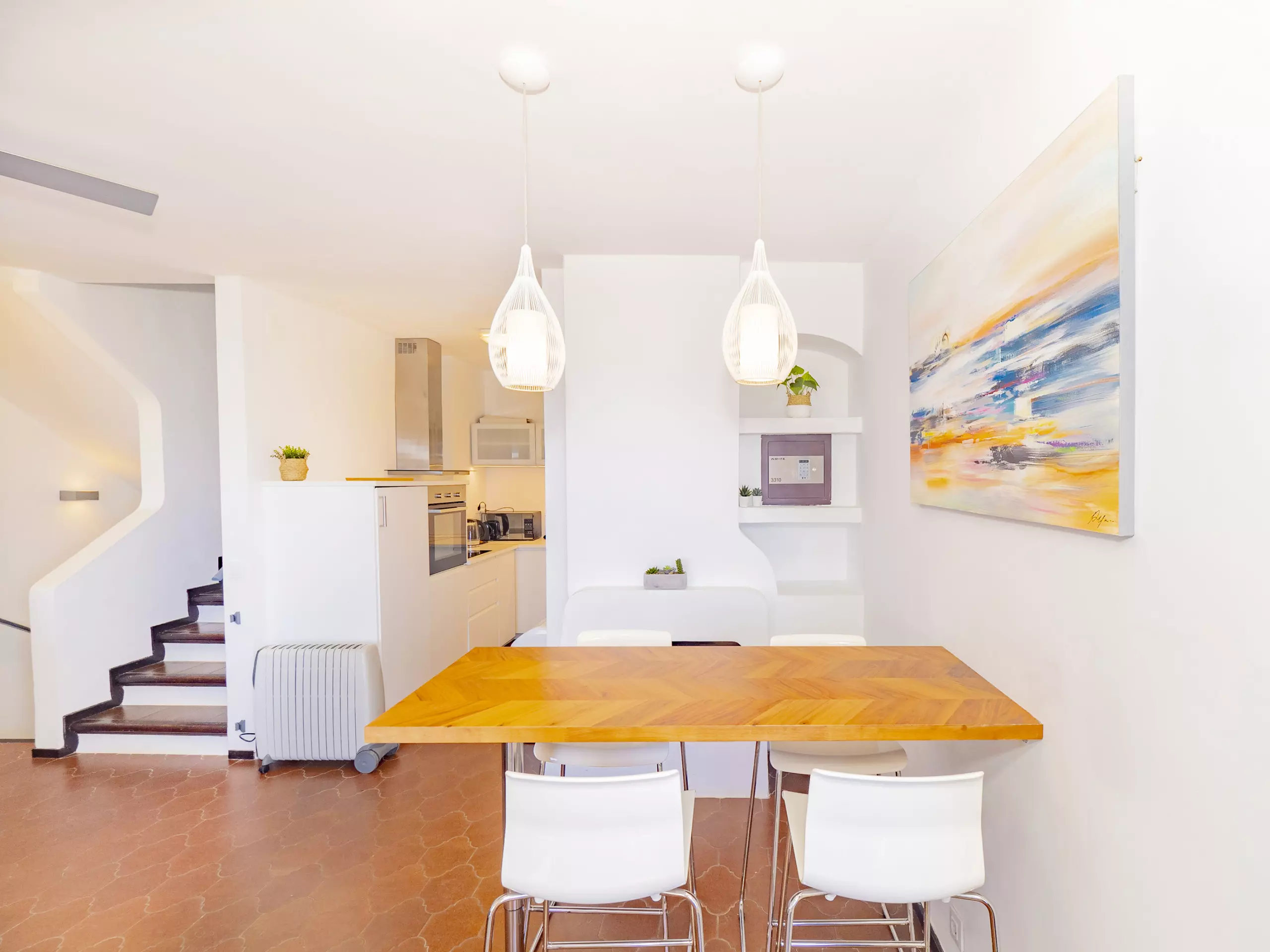Le logement dispose de trois étages reliés par des escaliers, ce qui le rend inadapté aux personnes à mobilité réduite. En entrant, un petit hall d'entrée avec un meuble à chaussures et un porte-manteau donne accès à l'escalier qui mène au salon-salle à manger et à la cuisine américaine. Cet espace moderne et fonctionnel est conçu pour maximiser la vue sur le port, la mer et la plage, créant une ambiance lumineuse et relaxante. La connexion internet par fibre optique vous permettra de profiter de vos séries préférées. Le canapé du salon se transforme en lit avec tous les draps inclus pour accueillir jusqu'à 6 personnes. La cuisine est entièrement équipée d'appareils électroménagers modernes, de vaisselle complète et d'espace de rangement. La table haute dans la salle à manger se connecte à une terrasse vitrée, idéale pour profiter de la brise marine depuis le confort de la maison. Tenez compte des instructions pour l'utilisation correcte des panneaux de verre de cette terrasse. Dans le salon, il y a une cheminée décorative, non habilitée pour l'usage, et une barrière extensible pour la sécurité des enfants, évitant l'accès aux escaliers.