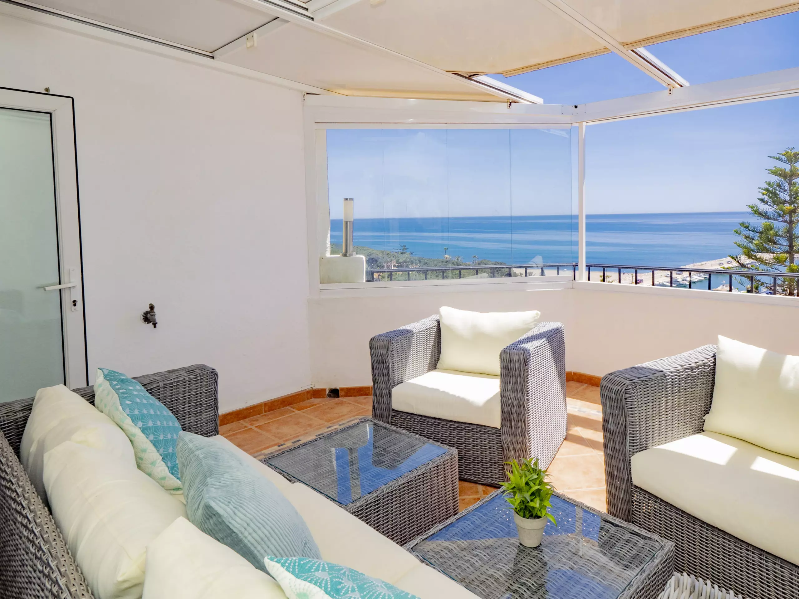 Le joyau de l'appartement est sa large terrasse couverte et vitrée, équipée de mobilier de jardin, parfaite pour les réunions familiales ou les moments de détente à toute heure. Vous pouvez ouvrir les panneaux du toit et les fenêtres pour la ventilation, en suivant toujours les indications du personnel d'entrée pour éviter les dommages. À cet étage se trouve également une deuxième chambre avec un lit de mariage et une armoire ouverte, offrant des vues incroyables pour se réveiller chaque matin.
