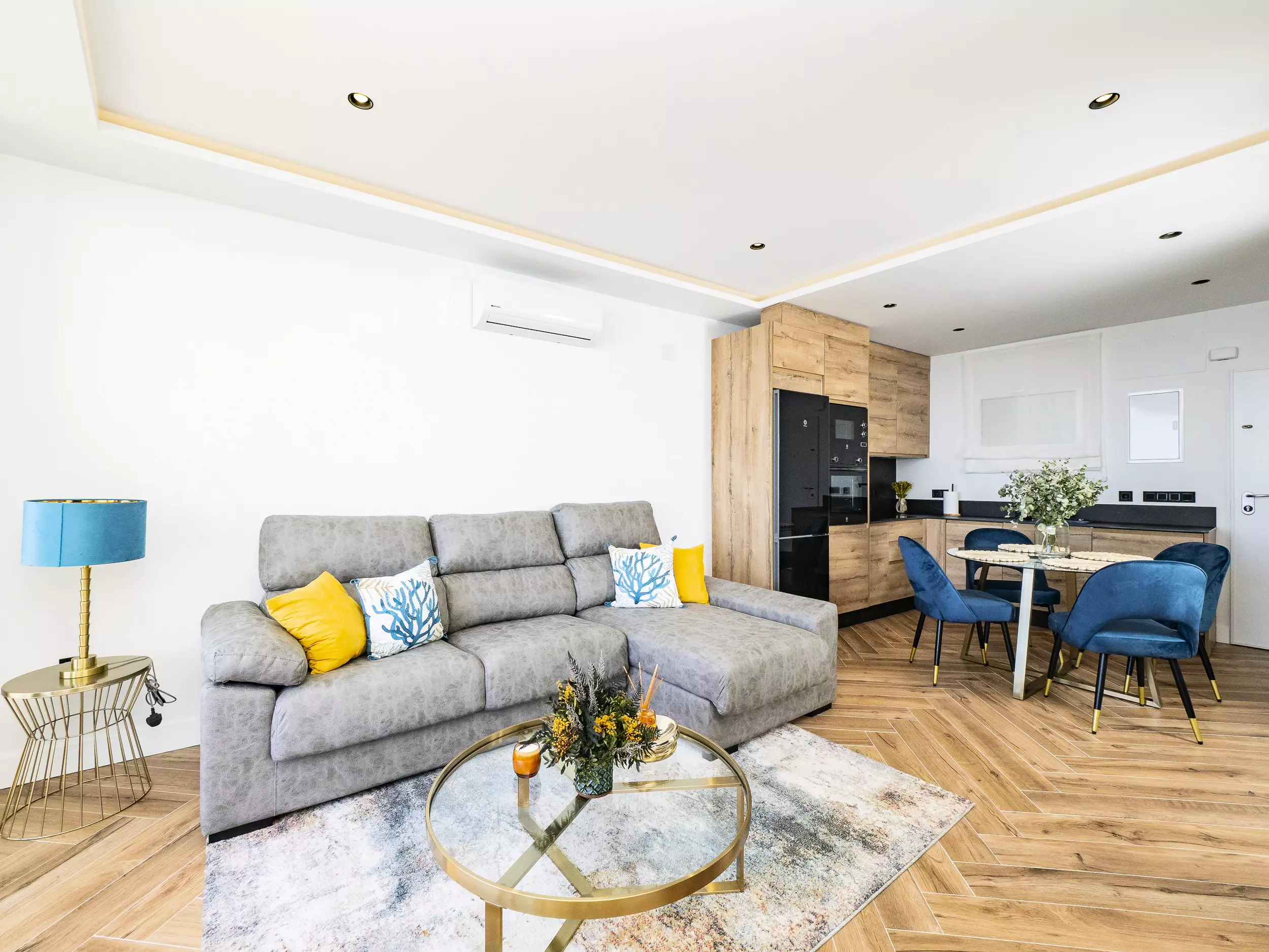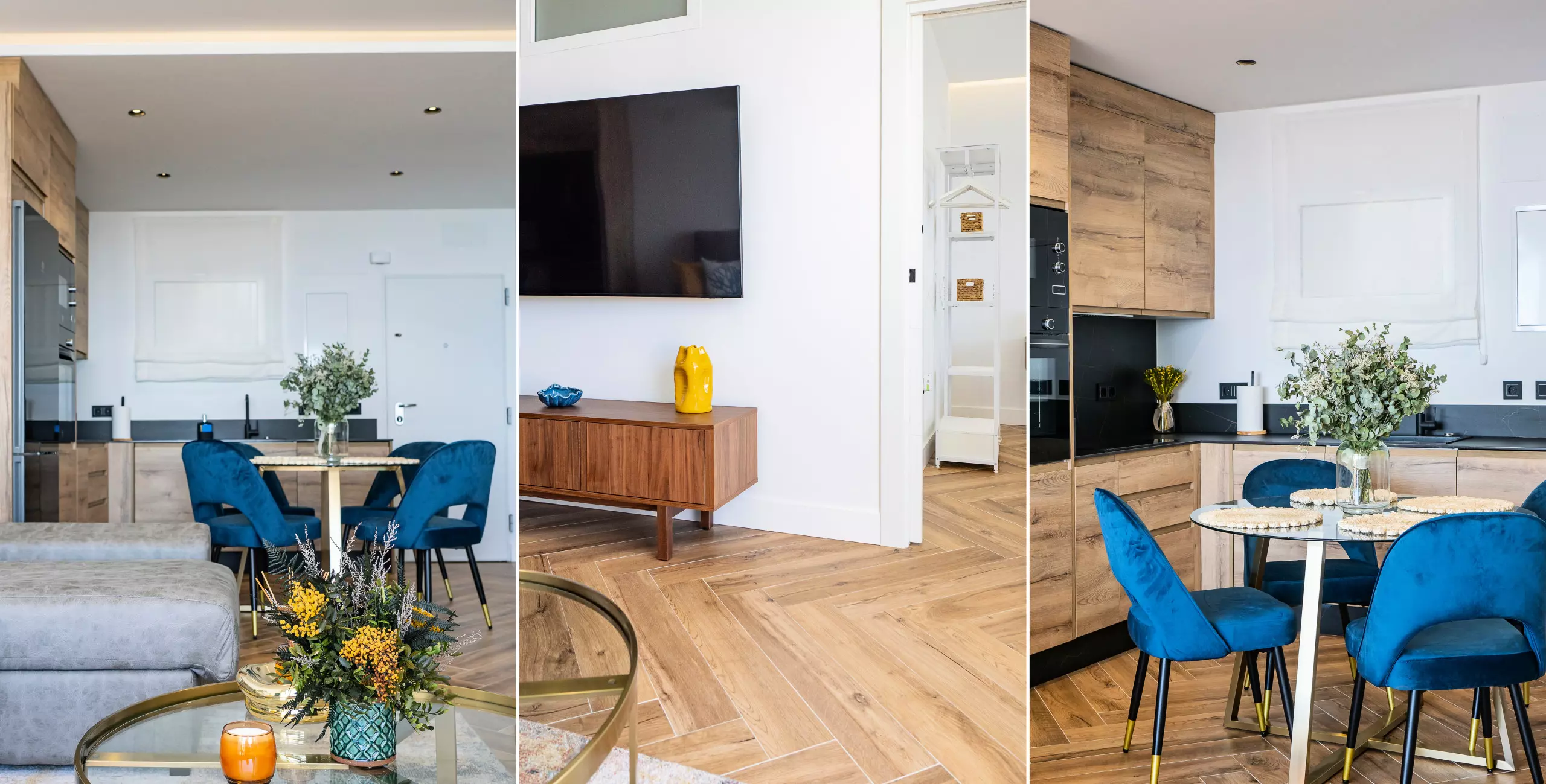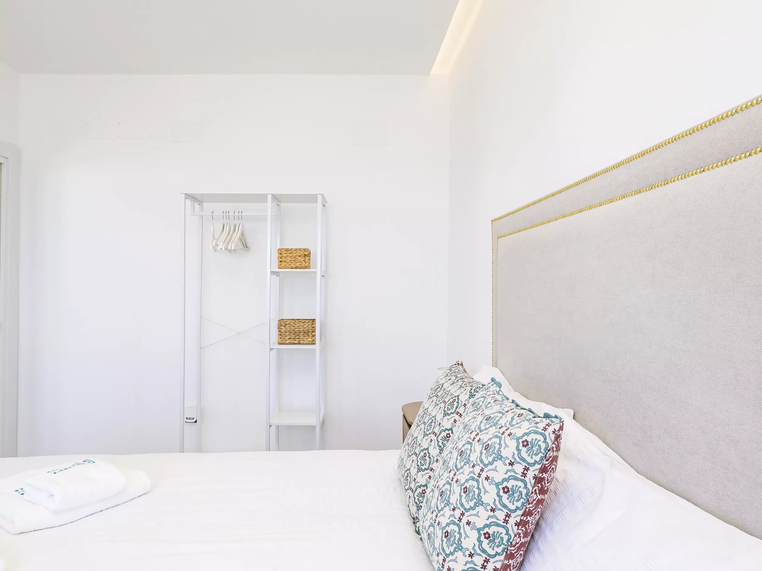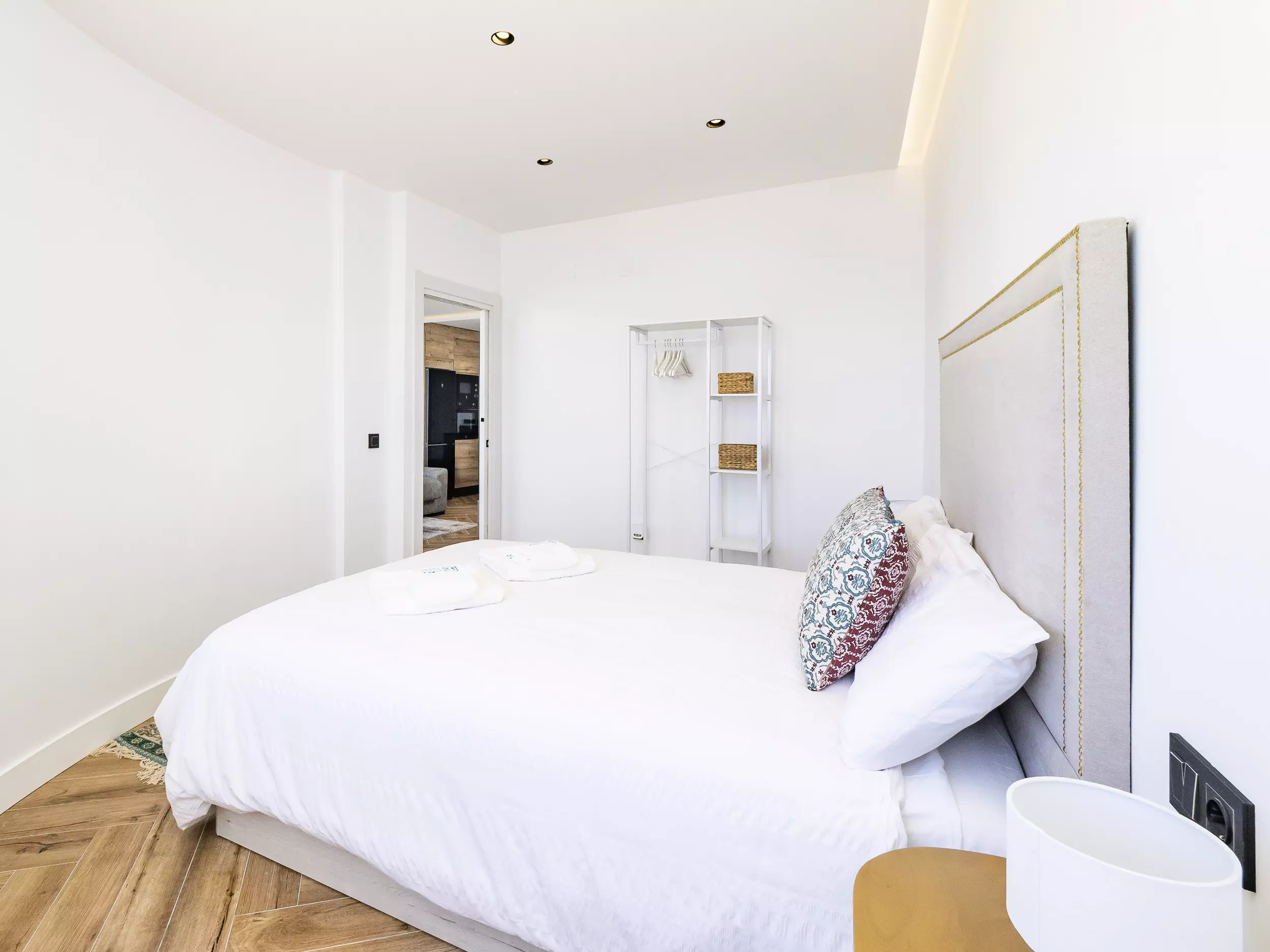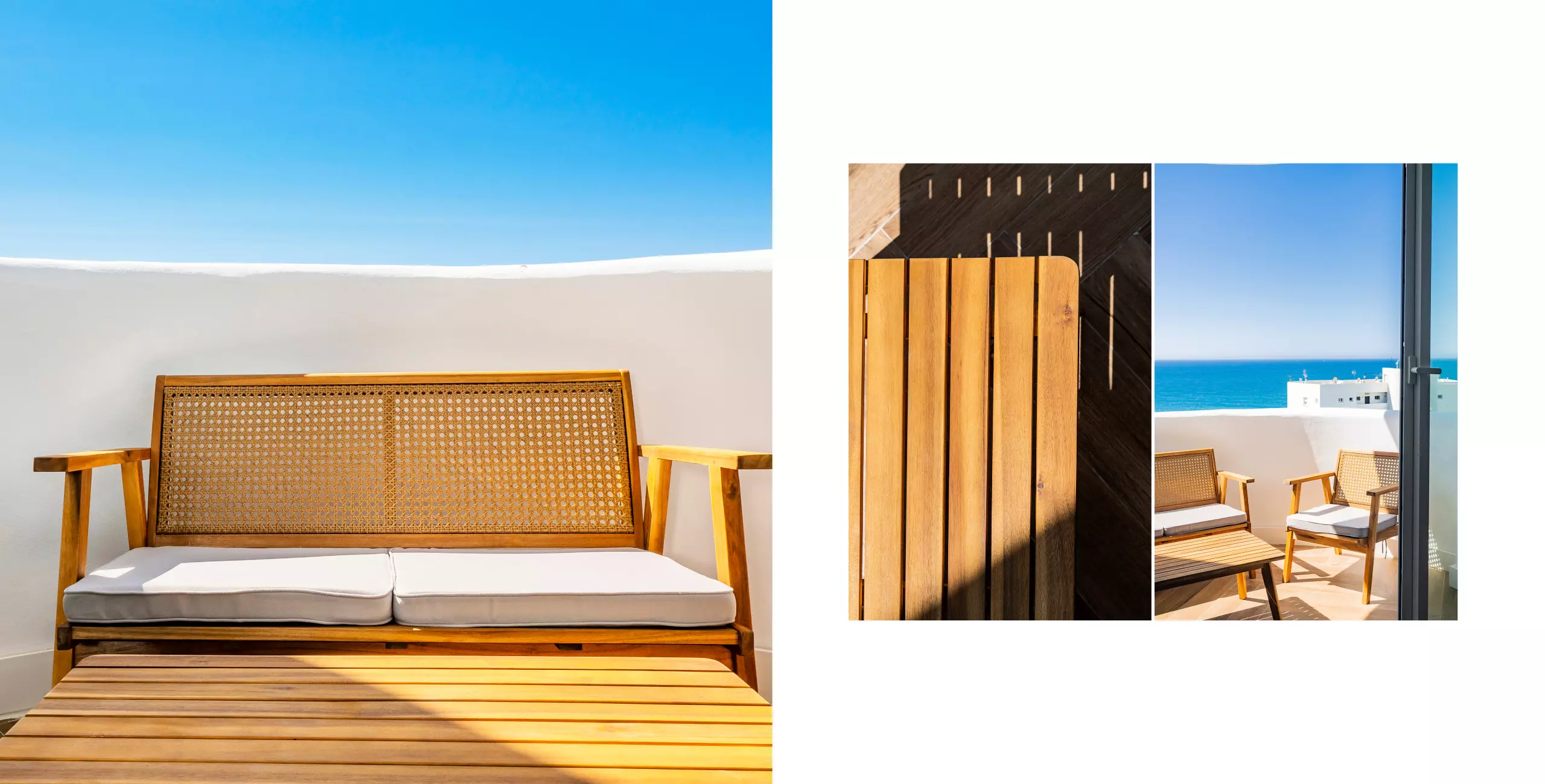 Le logement dispose de deux chambres, l'une avec un lit de matrimonial et vue sur la mer, et l'autre également avec un lit double, toutes deux offrant un espace confortable pour ranger les bagages. Le salon-salle à manger, lumineux et moderne, s'intègre à la terrasse pour que vous puissiez prendre votre petit-déjeuner ou déjeuner en profitant de la vue. La cuisine américaine est équipée de tout le nécessaire : plaque vitrocéramique, réfrigérateur, micro-ondes, four, lave-vaisselle, cafetière, grille-pain, bouilloire et presse-agrumes. La salle de bain dispose d'un receveur de douche.