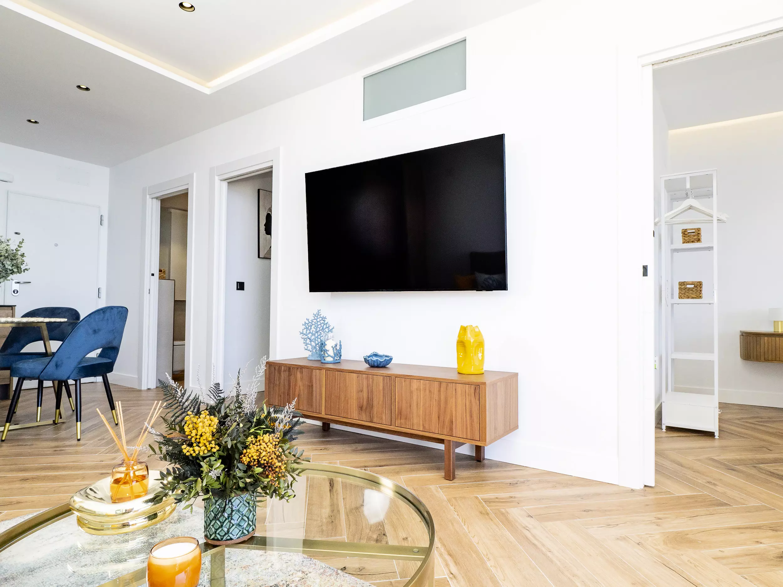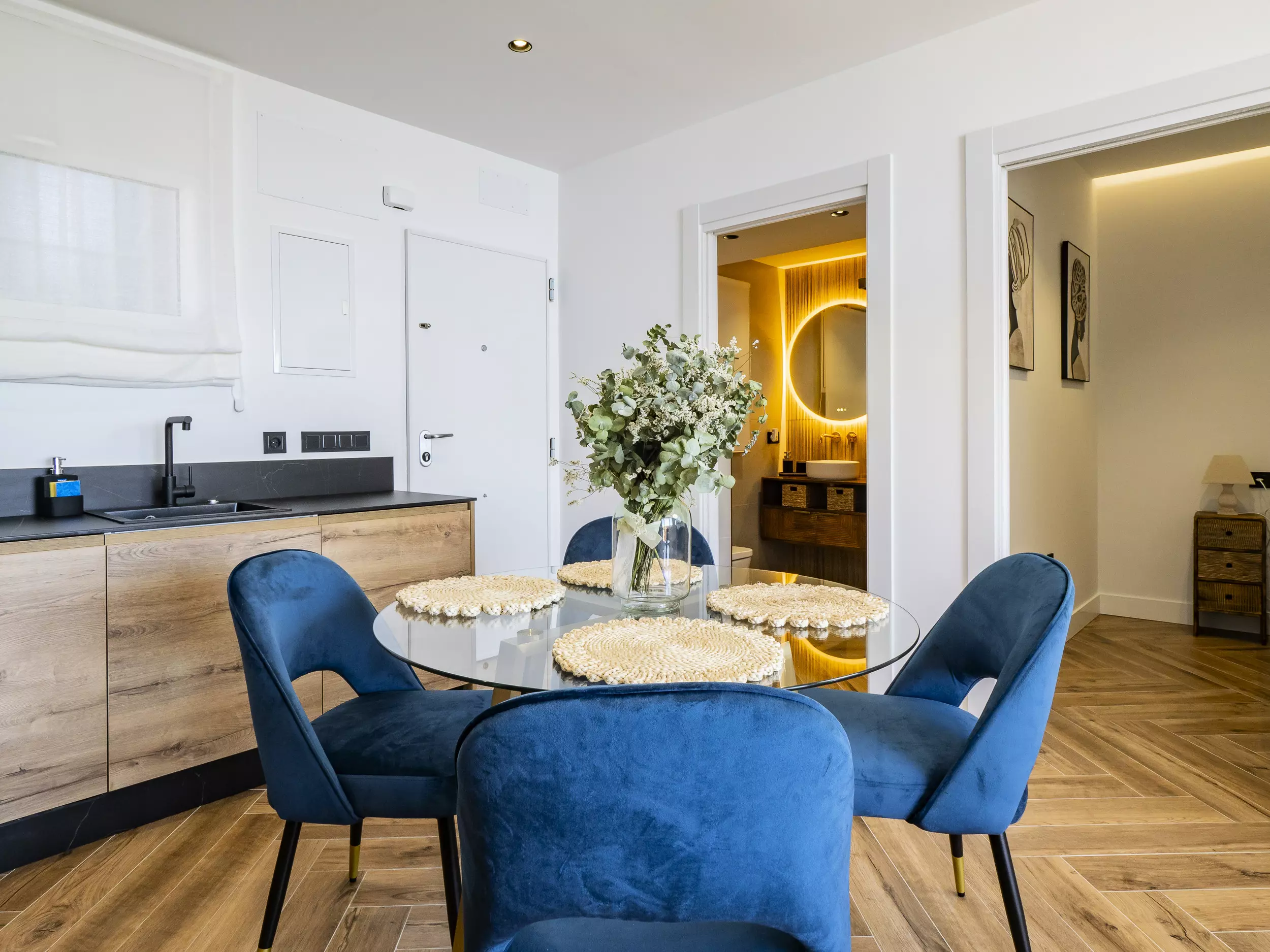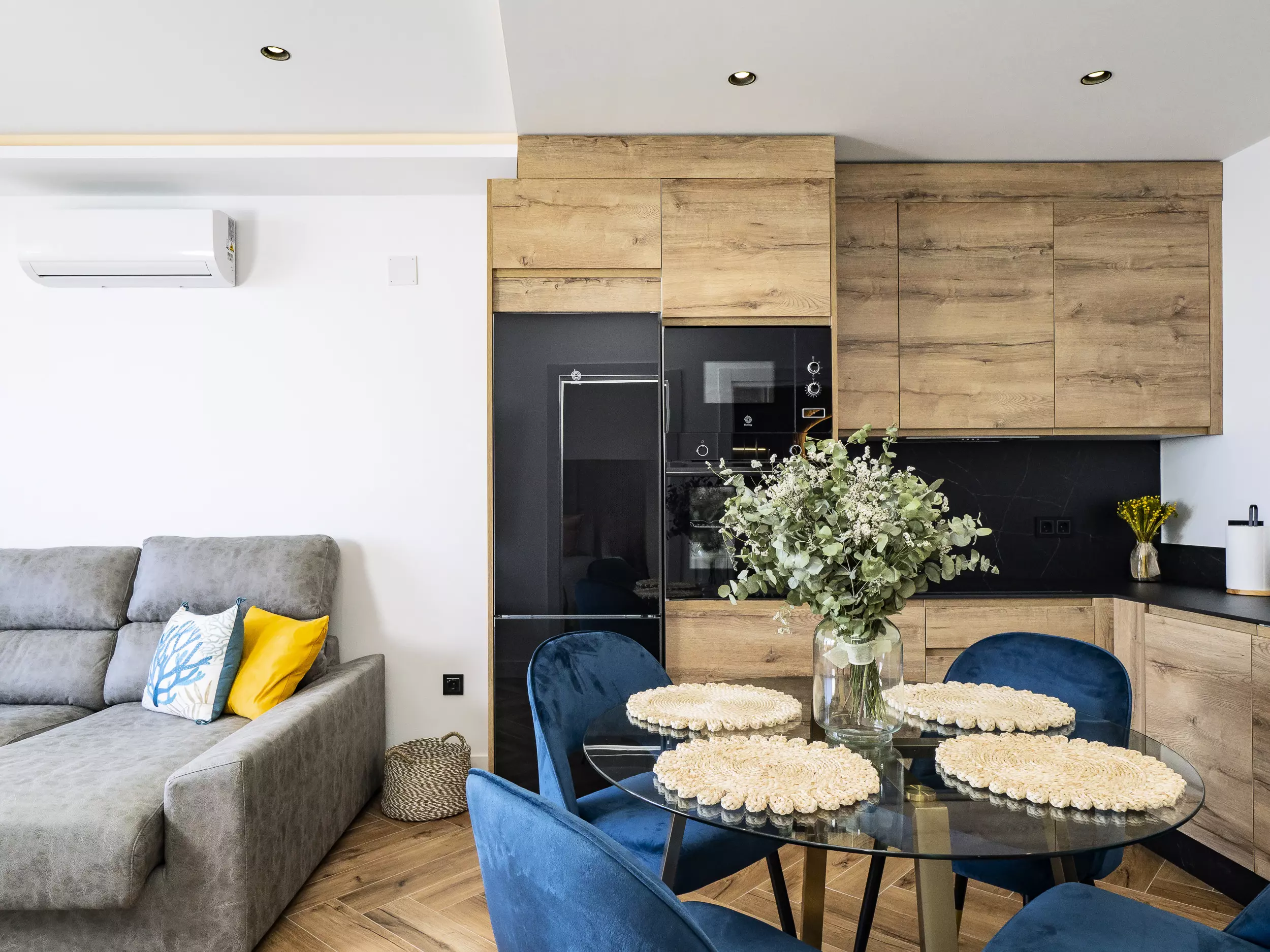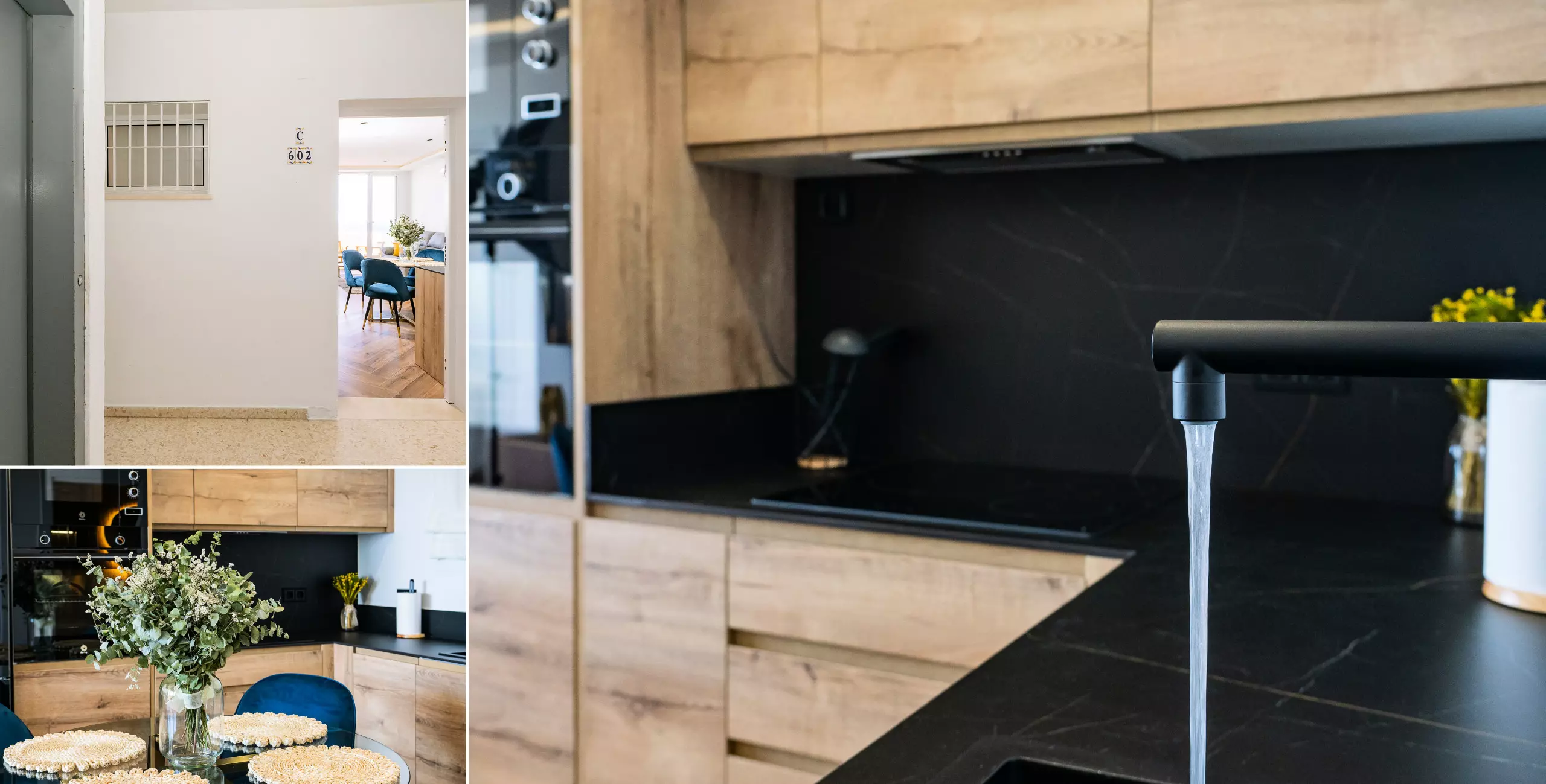 Le logement dispose de deux chambres, l'une avec un lit de matrimonial et vue sur la mer, et l'autre également avec un lit double, toutes deux offrant un espace confortable pour ranger les bagages. Le salon-salle à manger, lumineux et moderne, s'intègre à la terrasse pour que vous puissiez prendre votre petit-déjeuner ou déjeuner en profitant de la vue. La cuisine américaine est équipée de tout le nécessaire : plaque vitrocéramique, réfrigérateur, micro-ondes, four, lave-vaisselle, cafetière, grille-pain, bouilloire et presse-agrumes. La salle de bain dispose d'un receveur de douche.