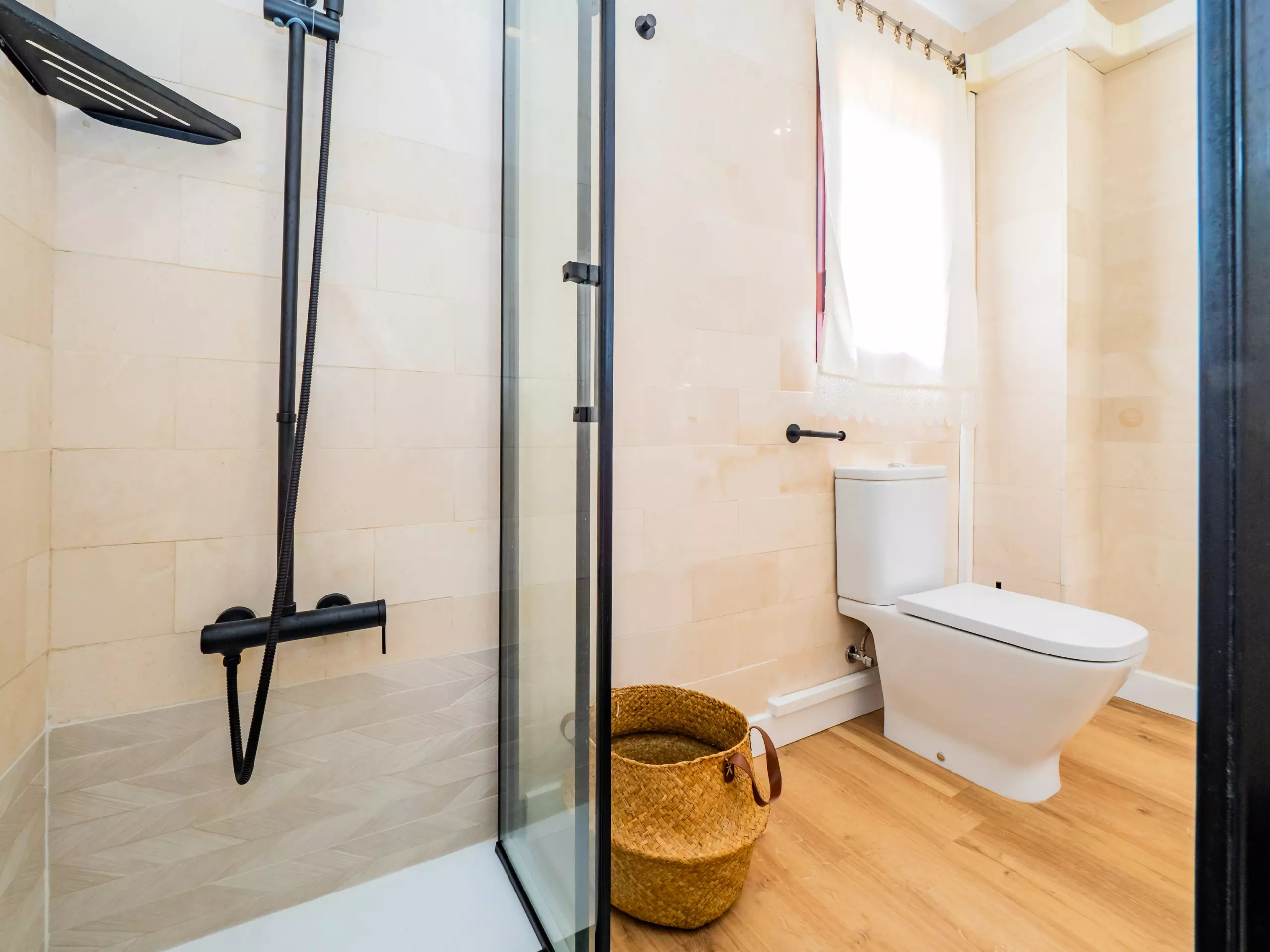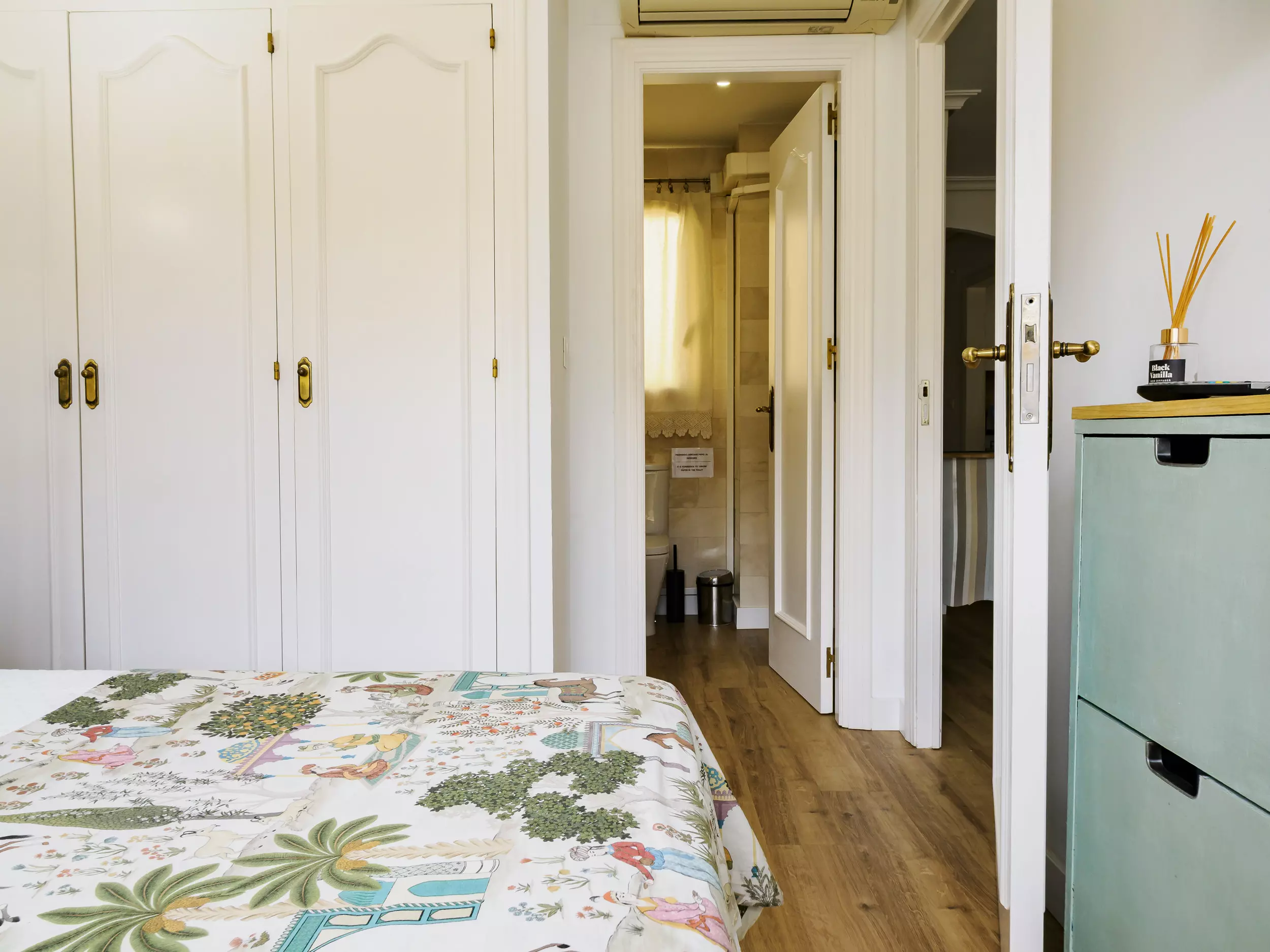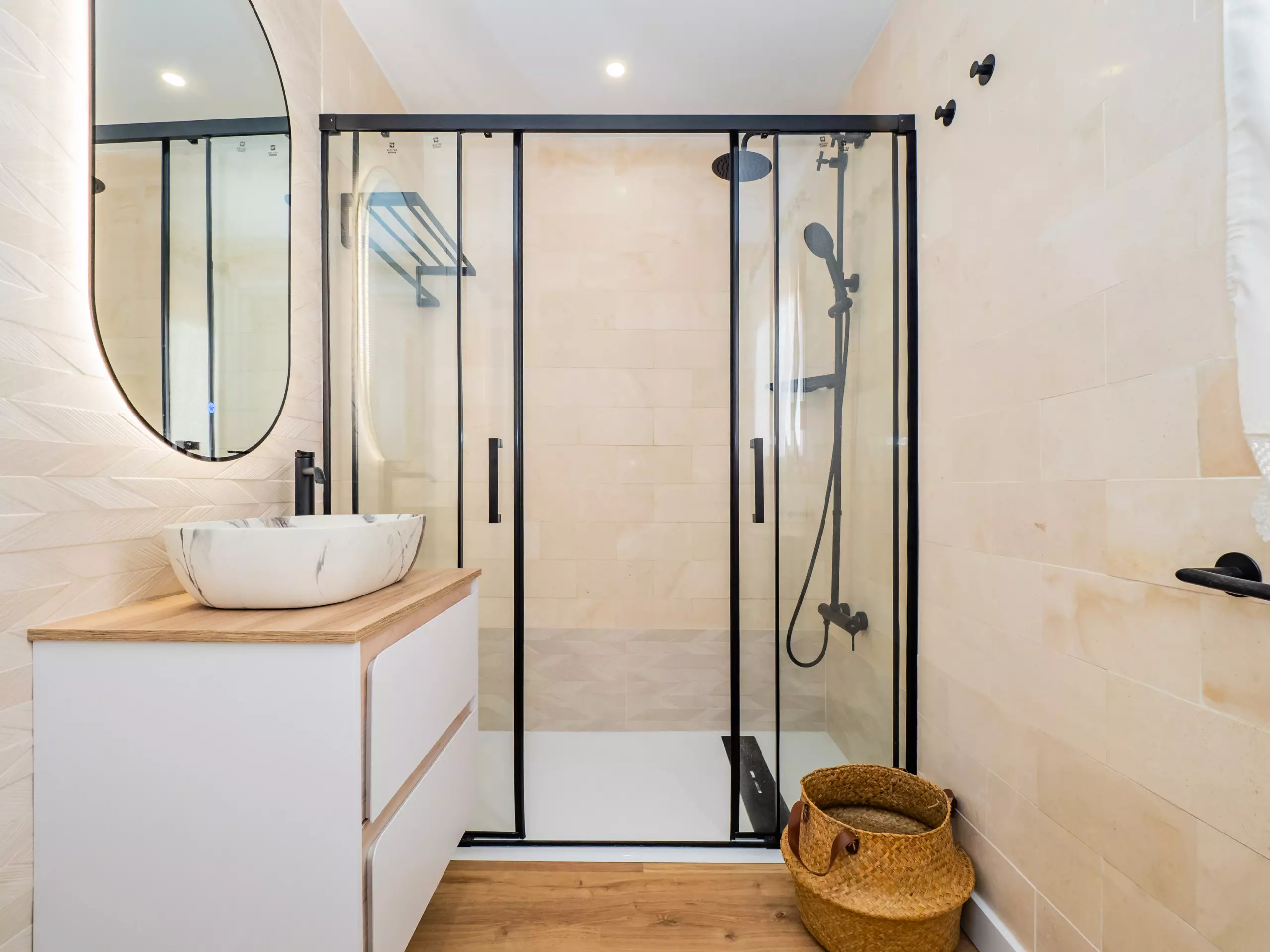 Pour un repos confortable, la chambre principale offre un lit double, la climatisation, la télévision et un espace pour ranger les bagages. La salle de bain est moderne, avec une douche et un design spacieux. Tout l'appartement est climatisé avec la climatisation et le chauffage par pompe à chaleur pour que vous vous sentiez à l'aise dans toutes les saisons ??.
