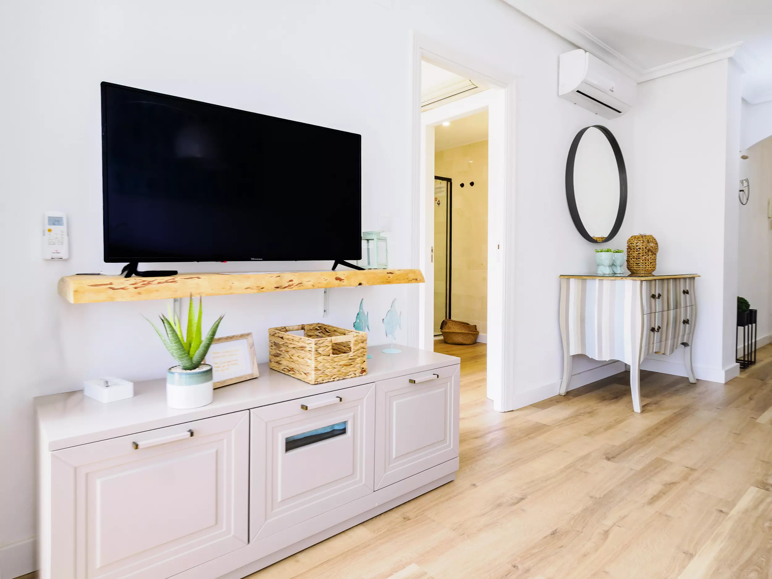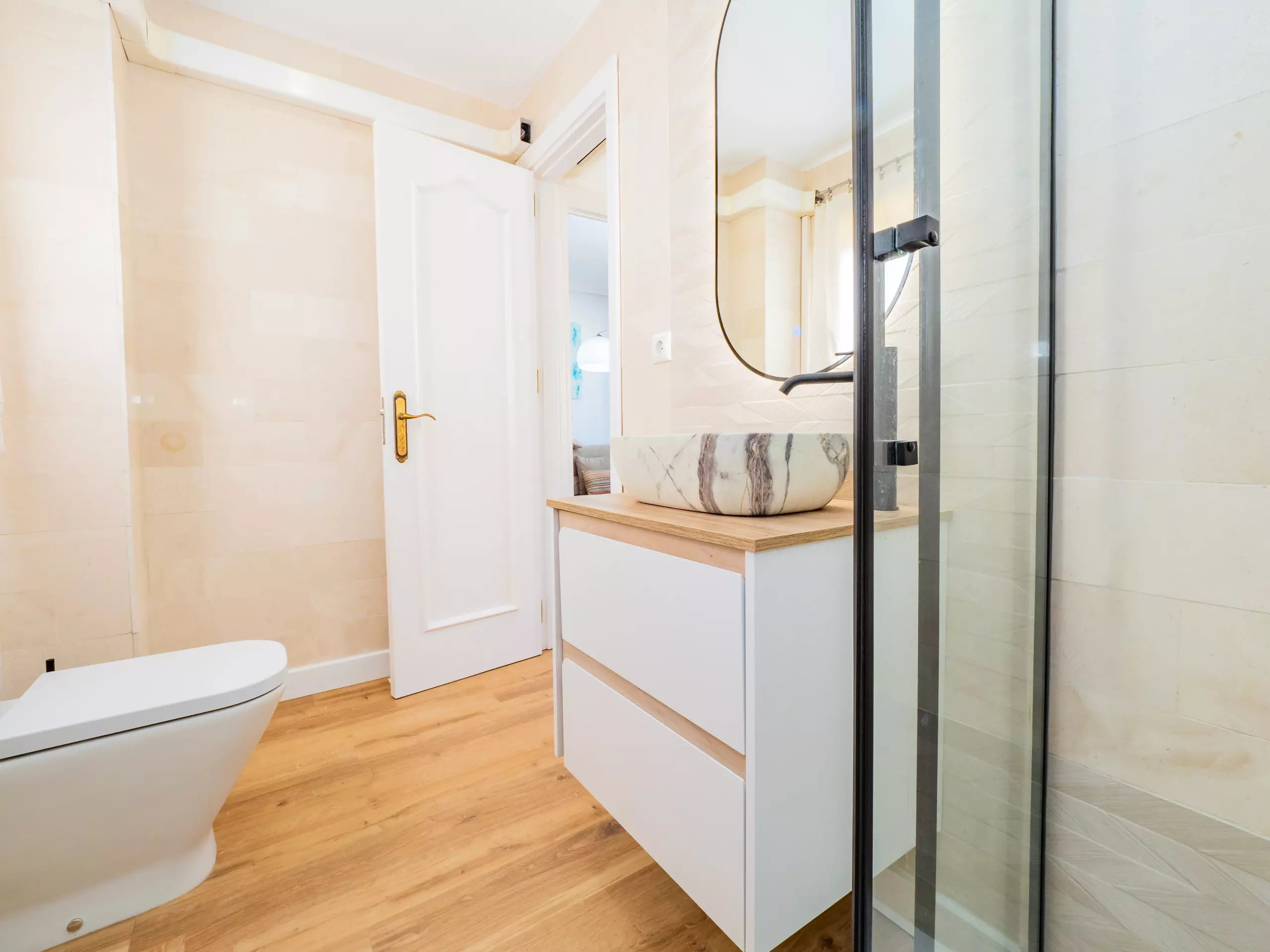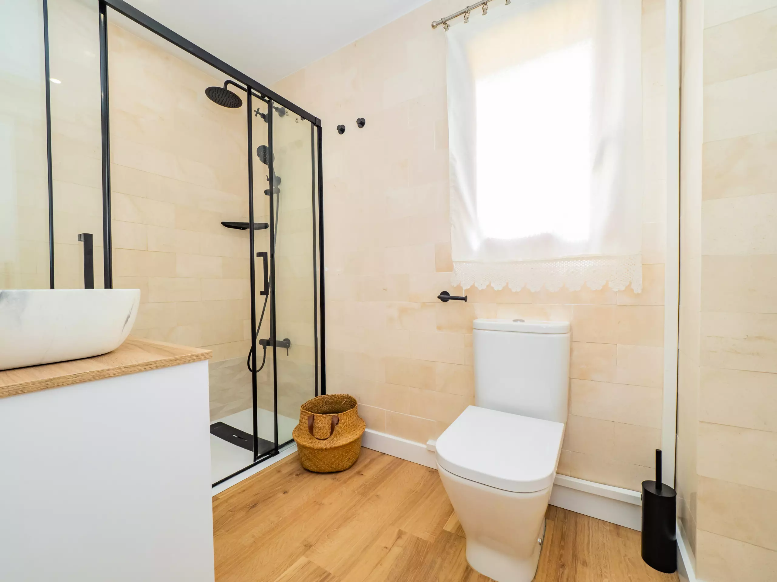 Pour un repos confortable, la chambre principale offre un lit double, la climatisation, la télévision et un espace pour ranger les bagages. La salle de bain est moderne, avec une douche et un design spacieux. Tout l'appartement est climatisé avec la climatisation et le chauffage par pompe à chaleur pour que vous vous sentiez à l'aise dans toutes les saisons ??.