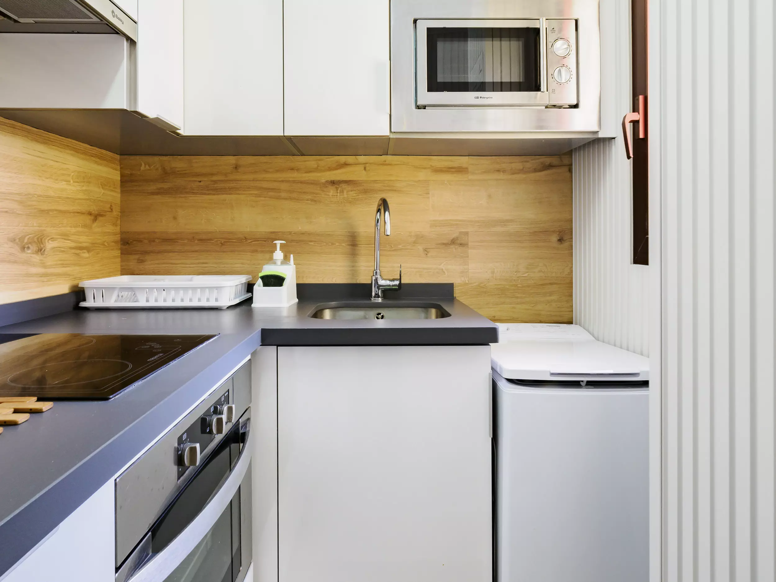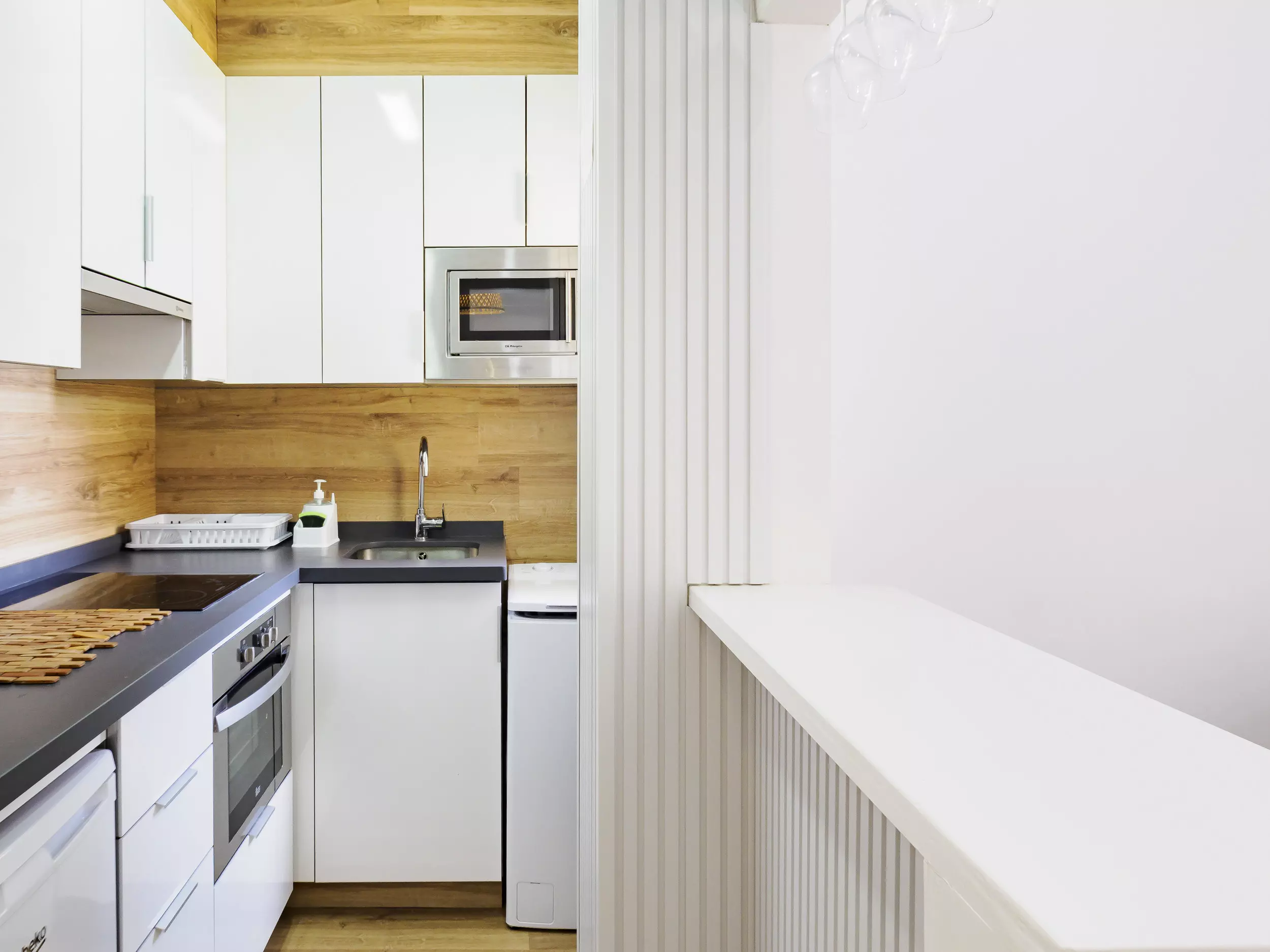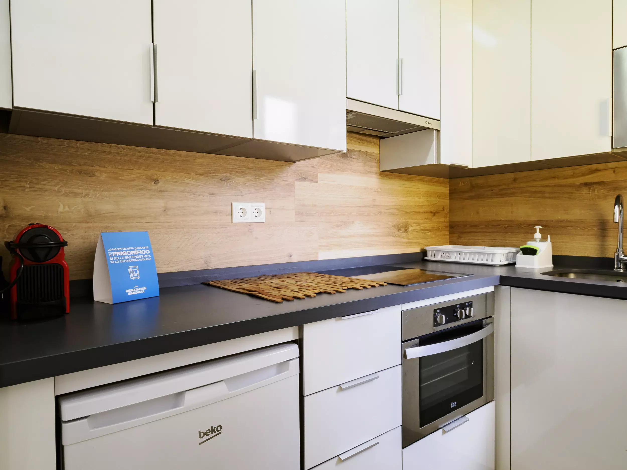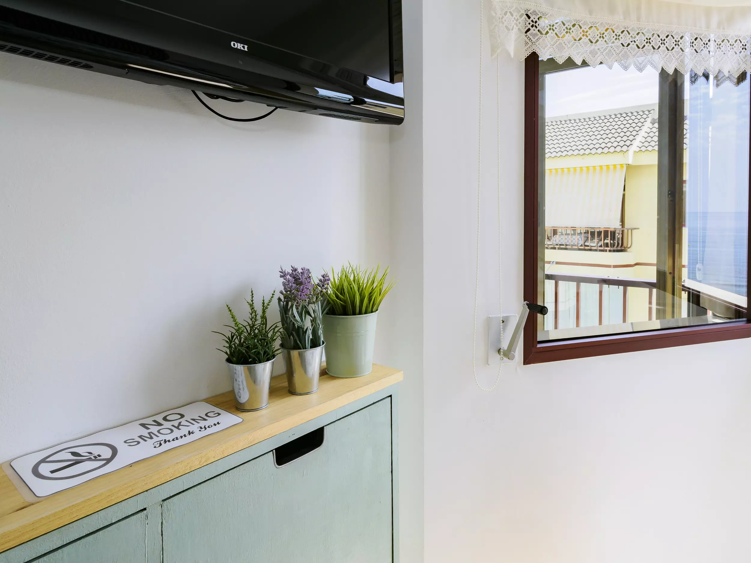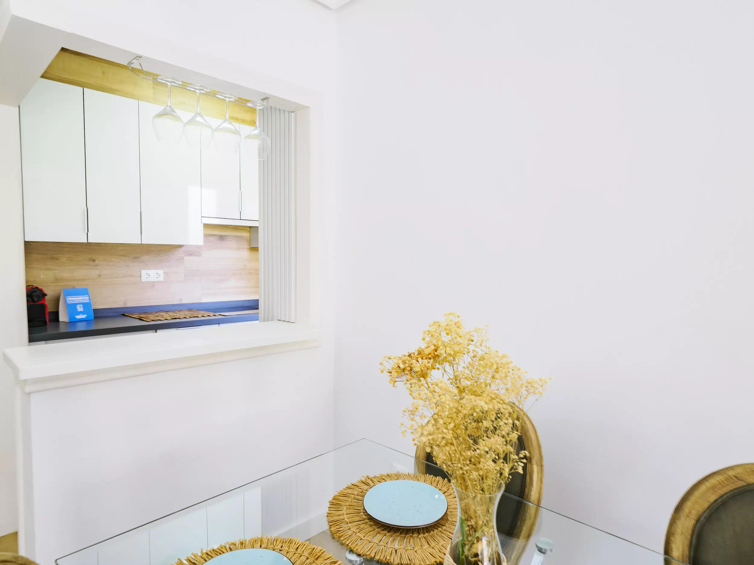 L'appartement, situé au troisième étage avec ascenseur, dispose d'une terrasse intégrée au salon-salle à manger avec vue partielle sur la mer ?. Le salon est équipé d'un canapé-lit double confortable, d'un canapé individuel, d'une Smart TV et d'une connexion internet gratuite, idéal pour se détendre et profiter du divertissement. La cuisine américaine, ouverte et pratique, comprend une plaque vitrocéramique, un four, un micro-ondes, un petit réfrigérateur, un congélateur, une cafetière, un grille-pain et tous les ustensiles nécessaires pour préparer vos repas ??.