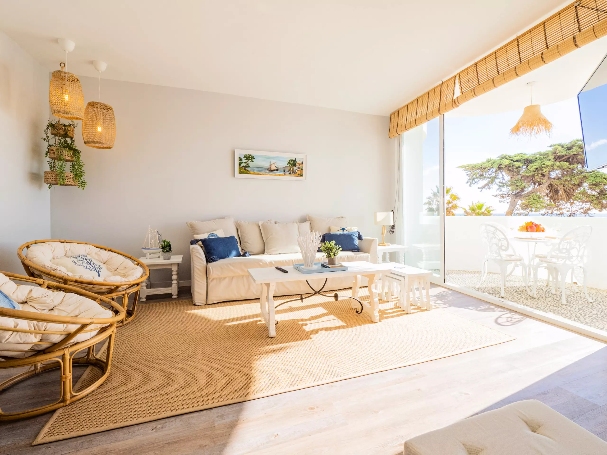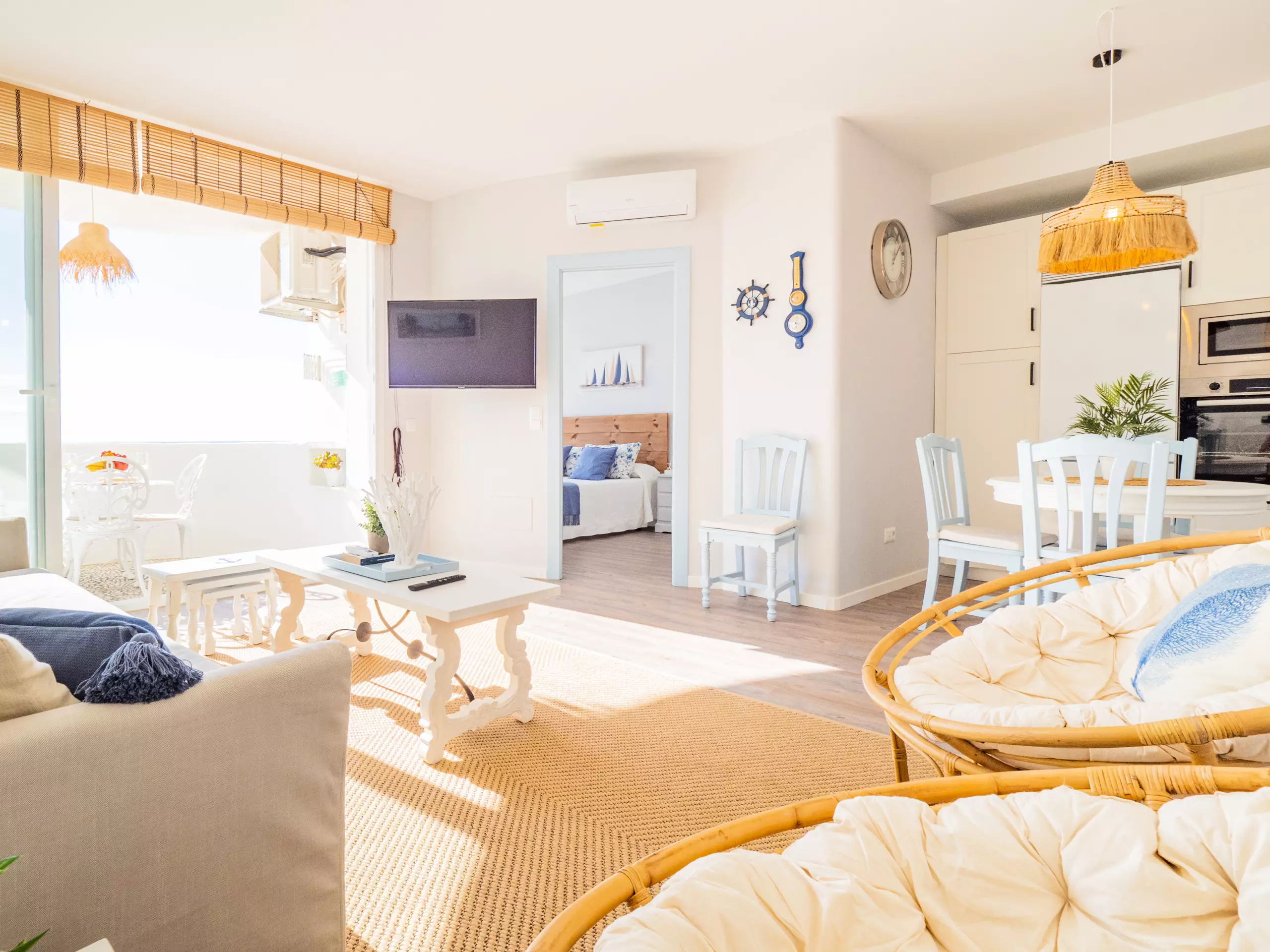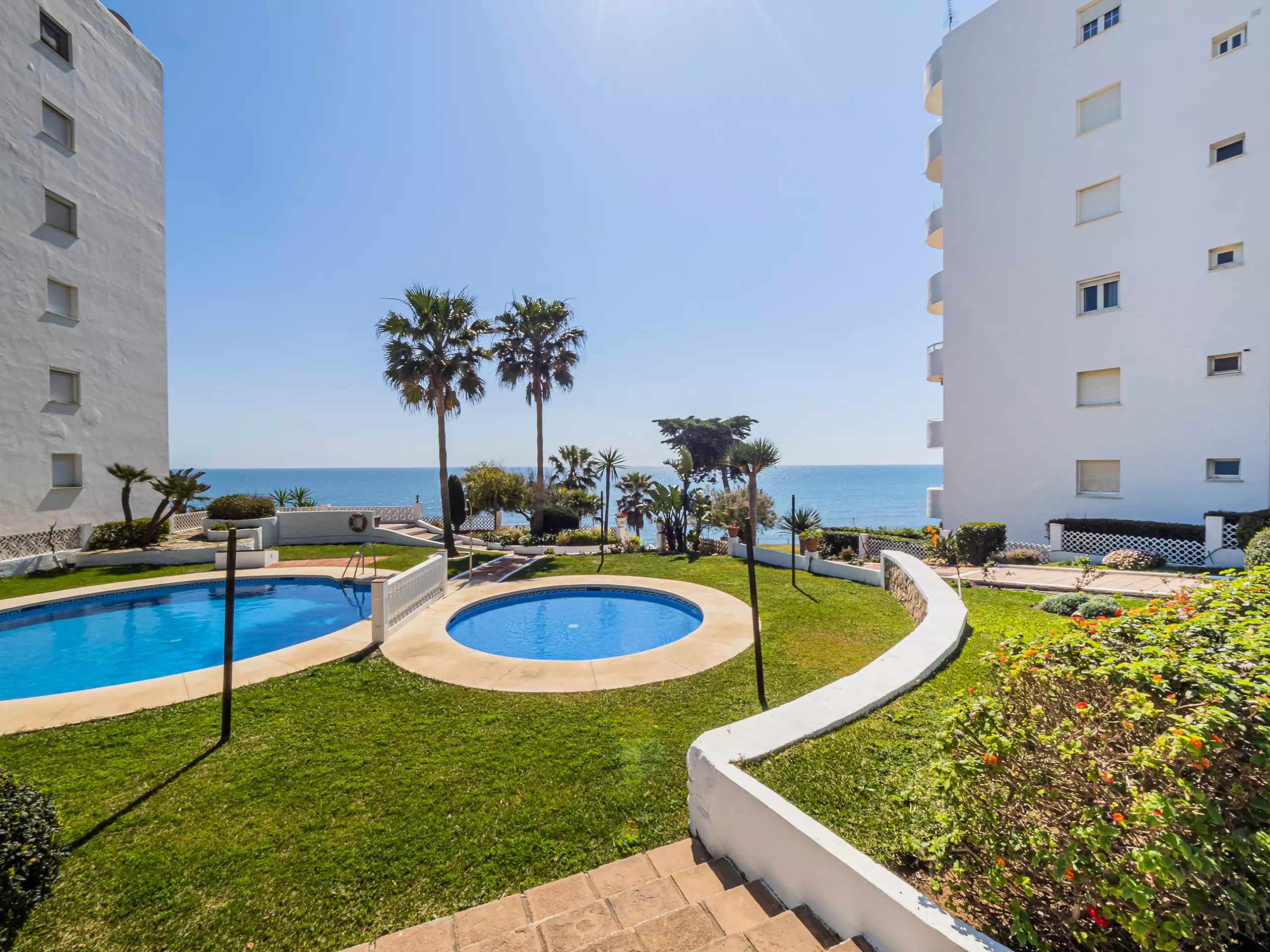 Profitez d'un appartement en première ligne de plage à Mijas Costa avec des vues mer impressionnantes et d'excellents équipements pour des vacances inoubliables ??.