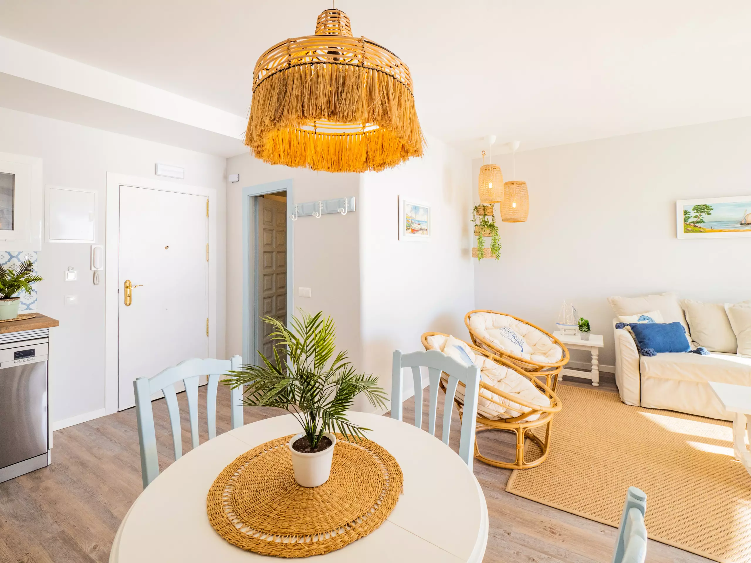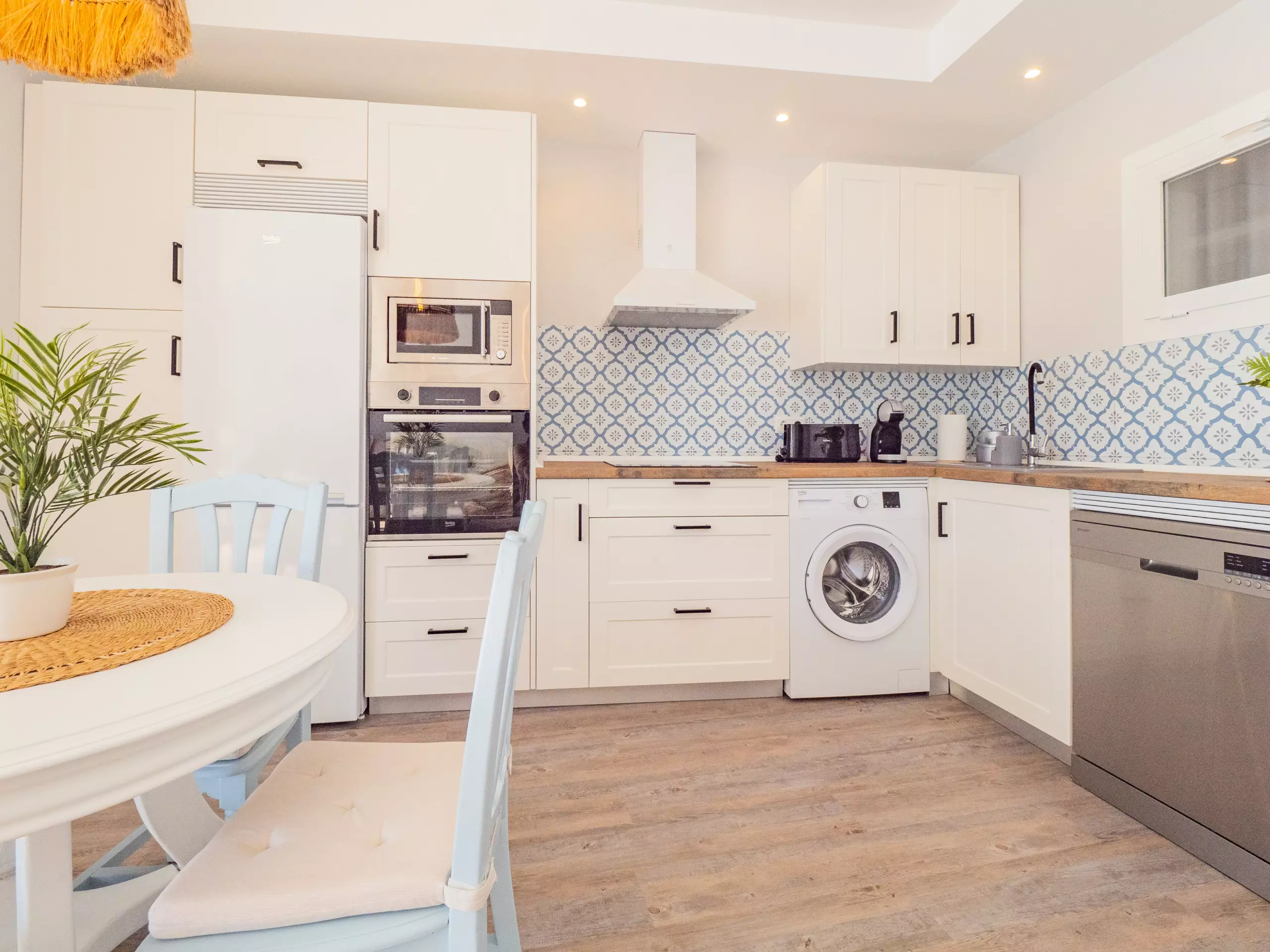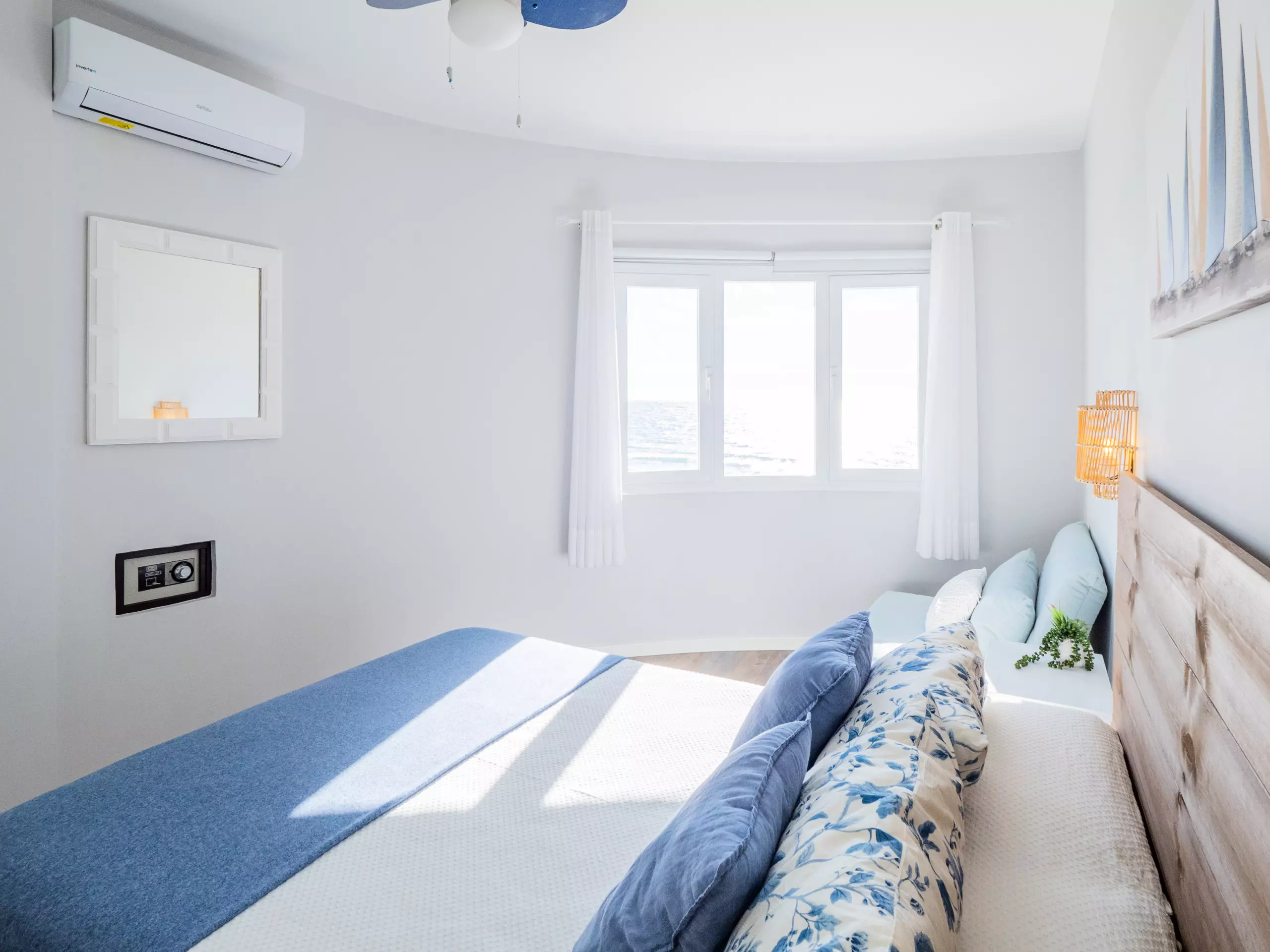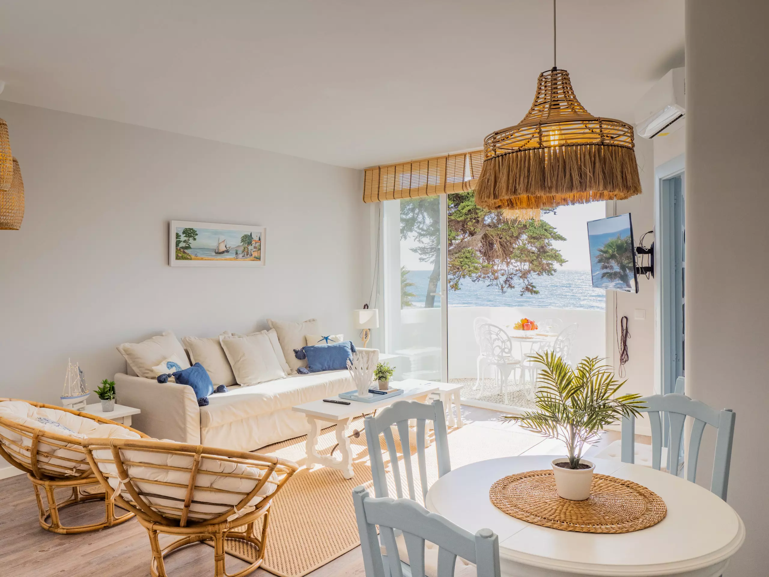 L'appartement, d'une superficie de 60 m², dispose d'une grande chambre avec placard intégré et fenêtres donnant sur la mer, facilitant un repos complet avec le calme que seul le son des vagues peut offrir. Sa cuisine américaine moderne intégrée au salon-salle à manger permet une cohabitation confortable et agréable, équipée de tous les appareils électroménagers nécessaires : plaque vitrocéramique, four, micro-ondes, lave-vaisselle, réfrigérateur, et petits électroménagers comme cafetière, grille-pain et presse-agrumes ??. La connexion Wi-Fi fibre optique et la Smart TV complètent l'espace pour le divertissement et le confort.