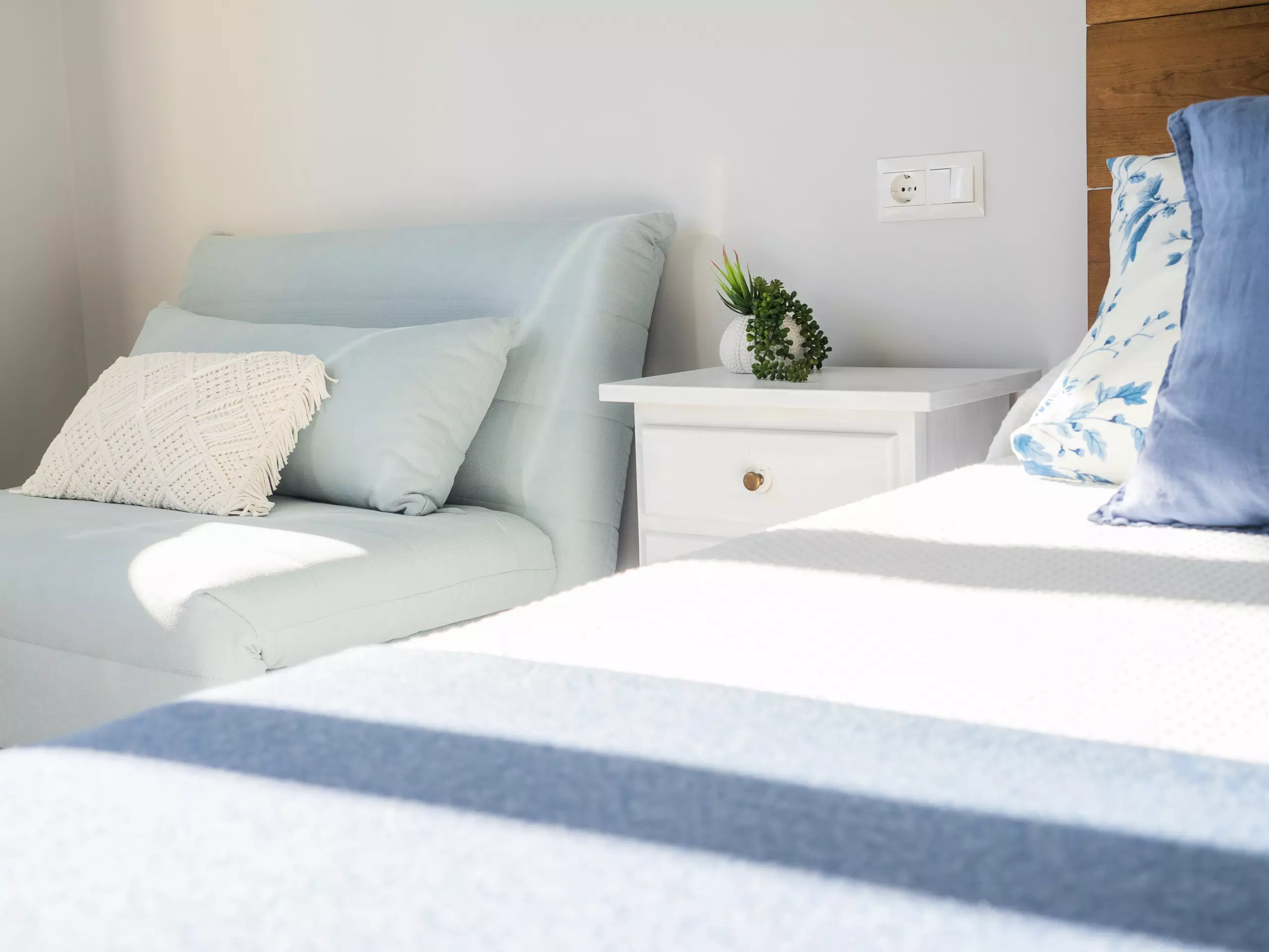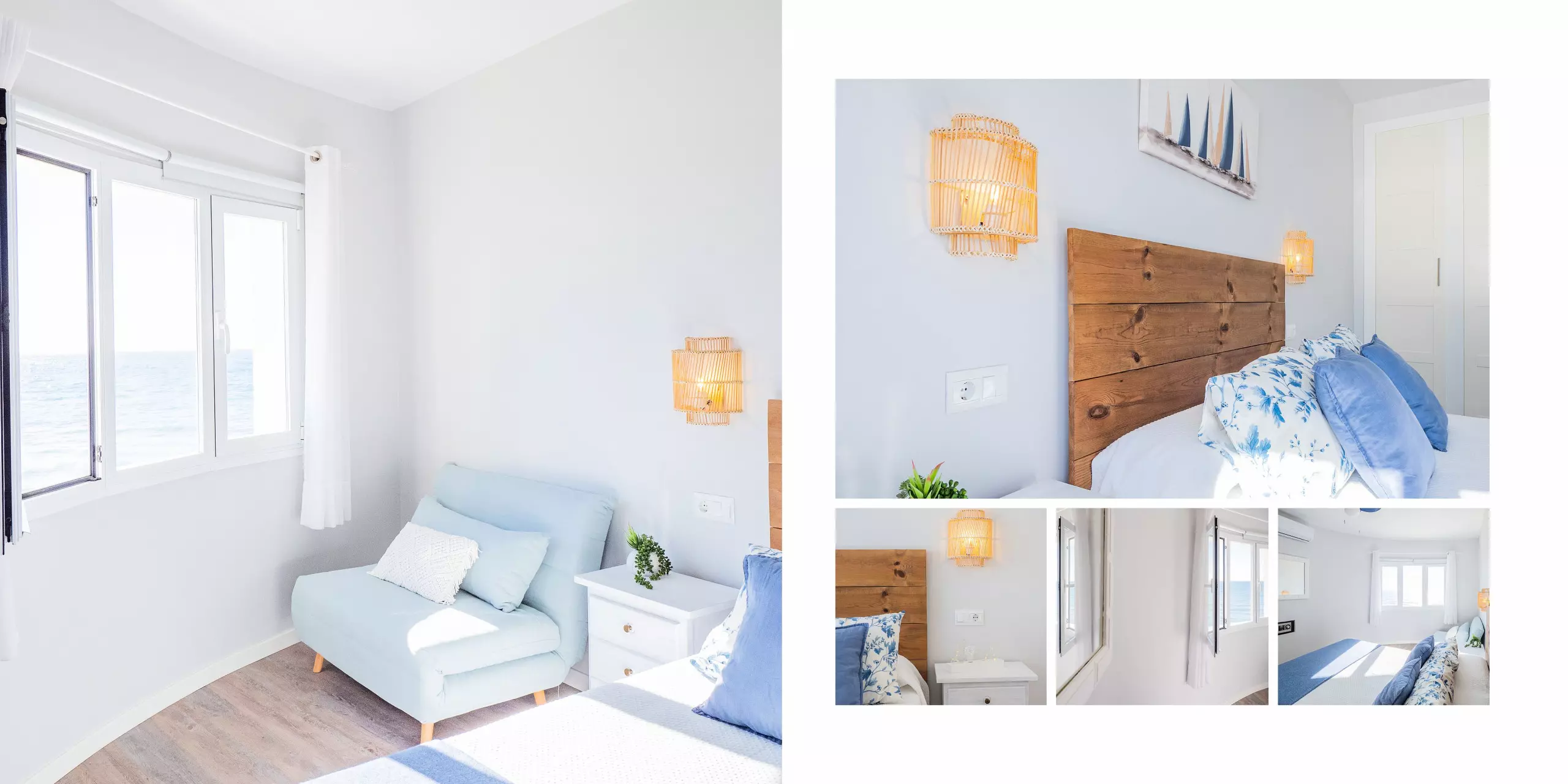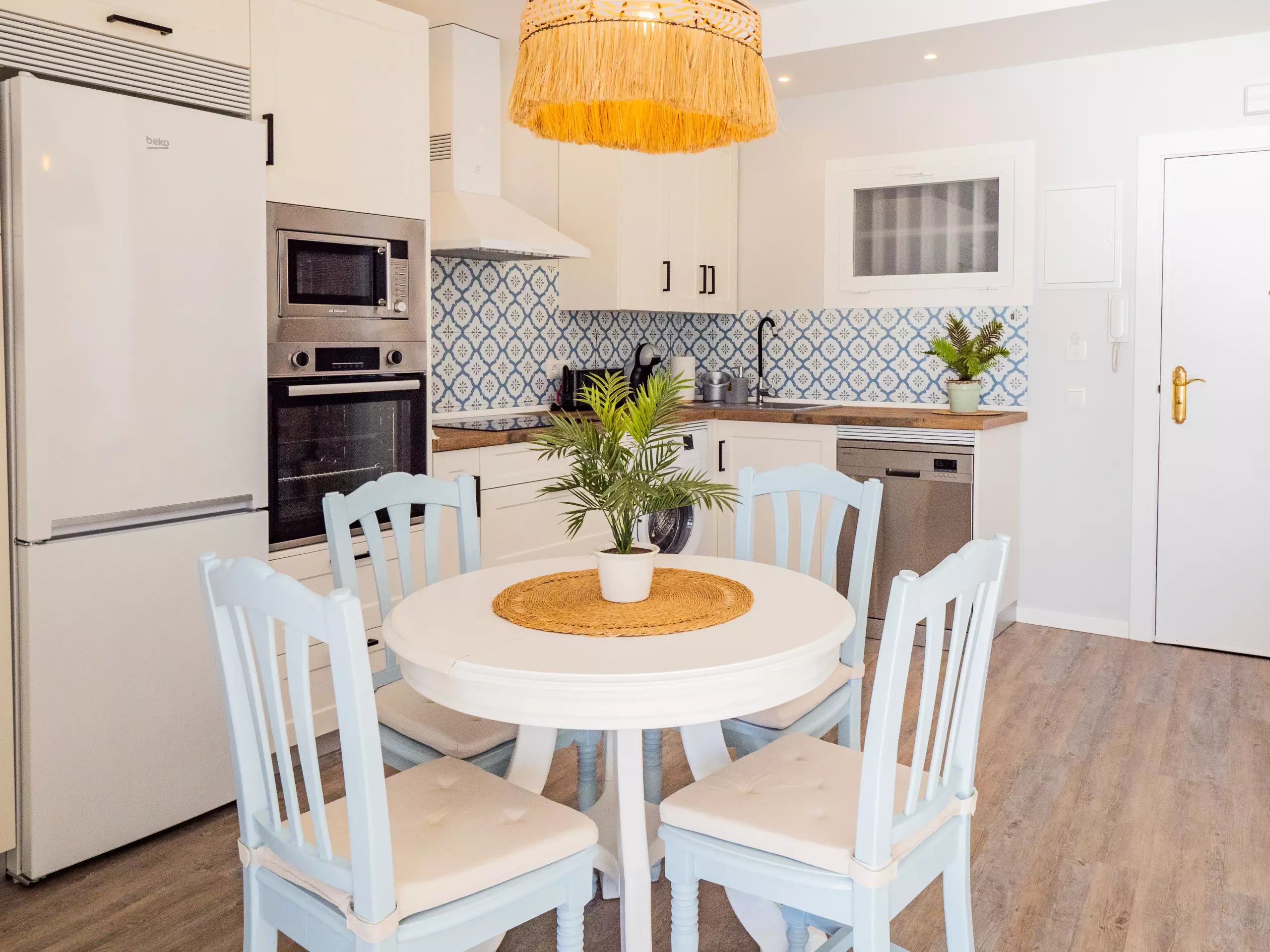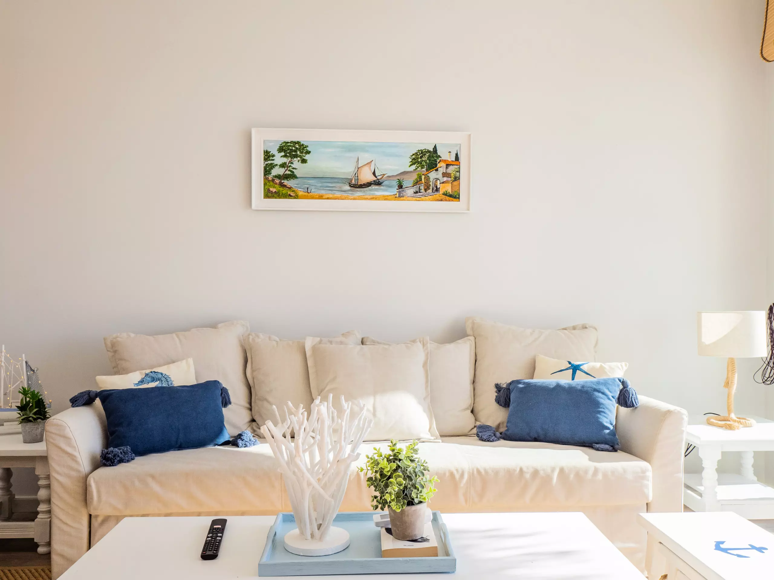 L'appartement, d'une superficie de 60 m², dispose d'une grande chambre avec placard intégré et fenêtres donnant sur la mer, facilitant un repos complet avec le calme que seul le son des vagues peut offrir. Sa cuisine américaine moderne intégrée au salon-salle à manger permet une cohabitation confortable et agréable, équipée de tous les appareils électroménagers nécessaires : plaque vitrocéramique, four, micro-ondes, lave-vaisselle, réfrigérateur, et petits électroménagers comme cafetière, grille-pain et presse-agrumes ??. La connexion Wi-Fi fibre optique et la Smart TV complètent l'espace pour le divertissement et le confort.