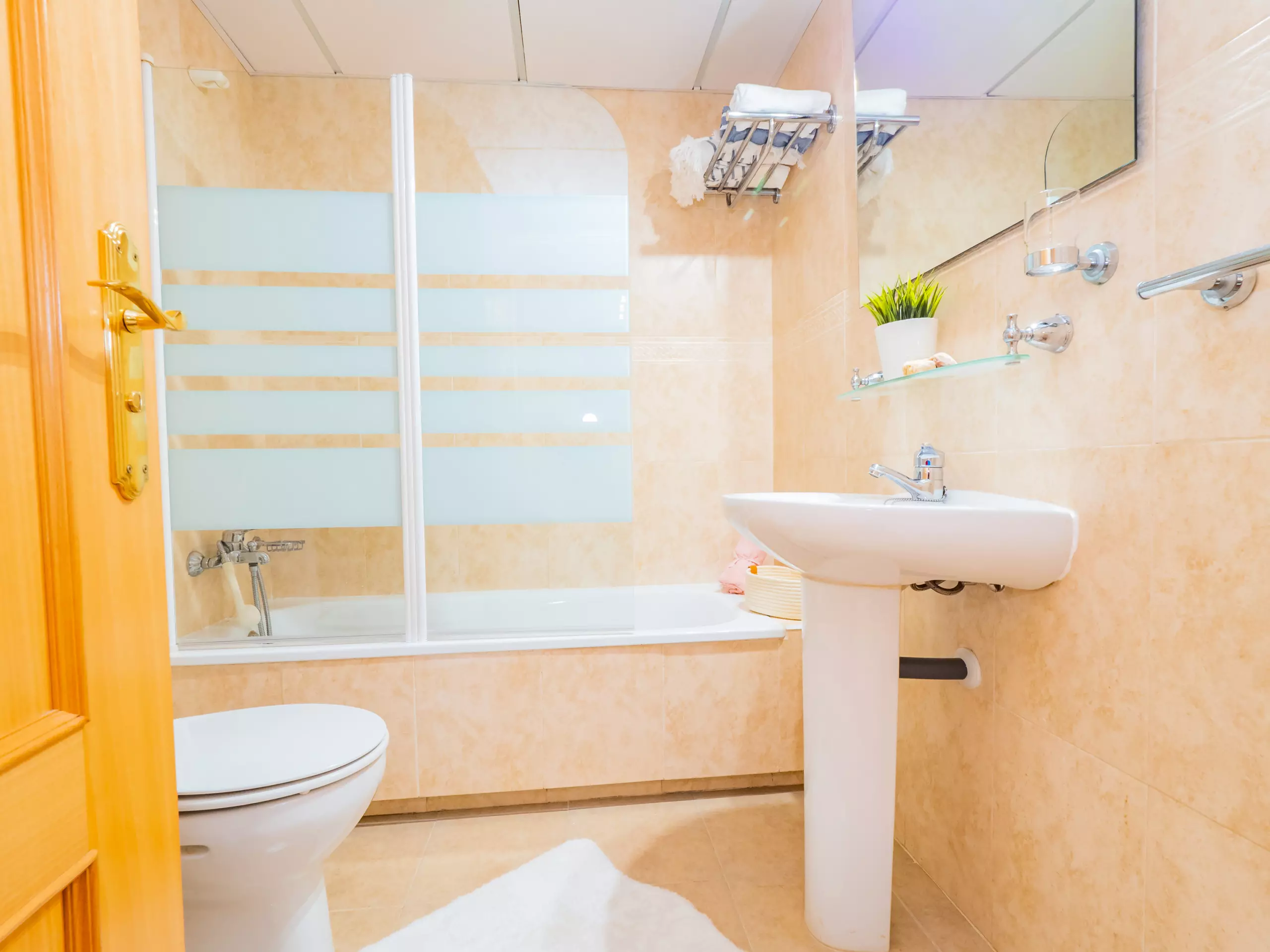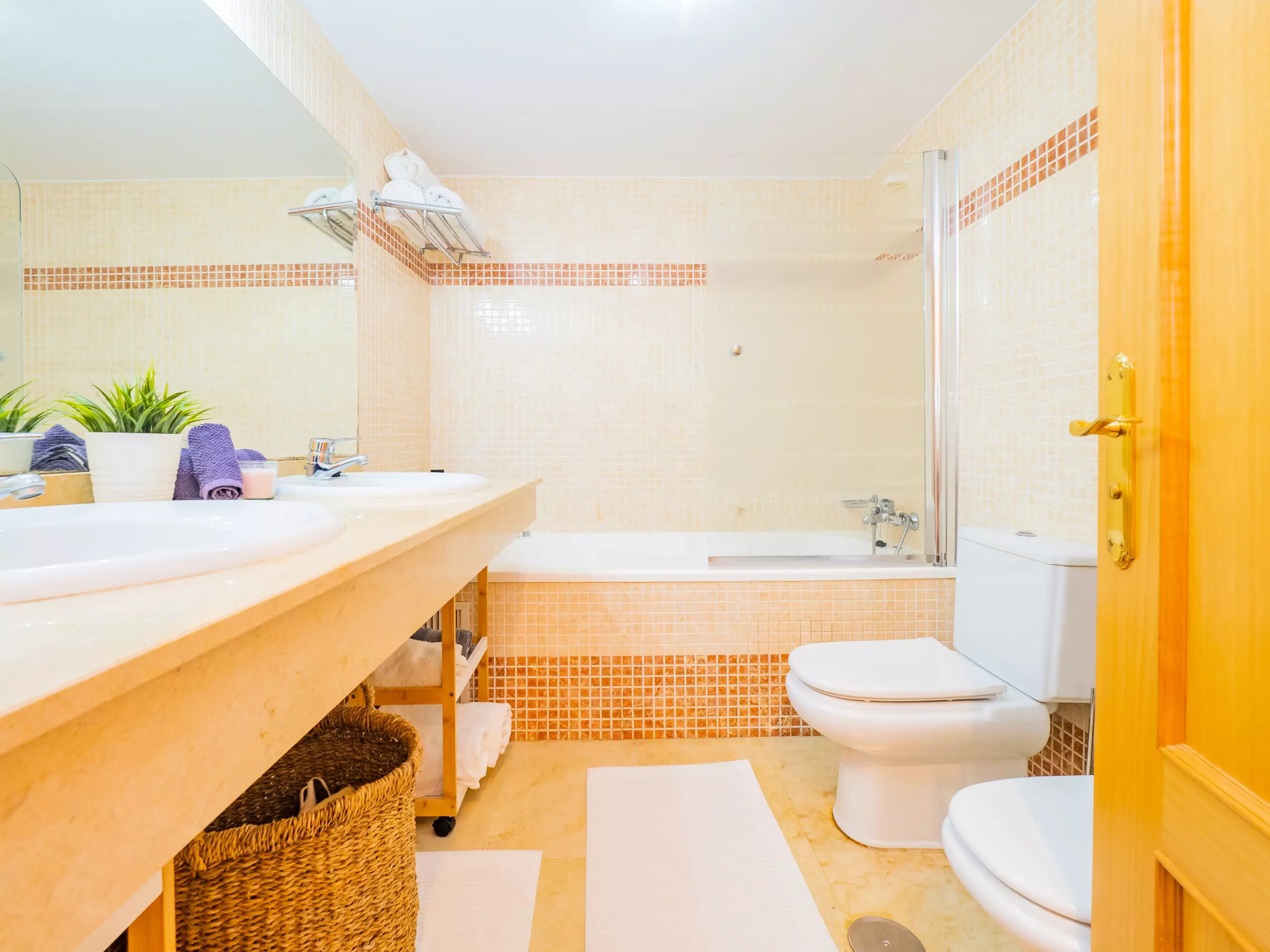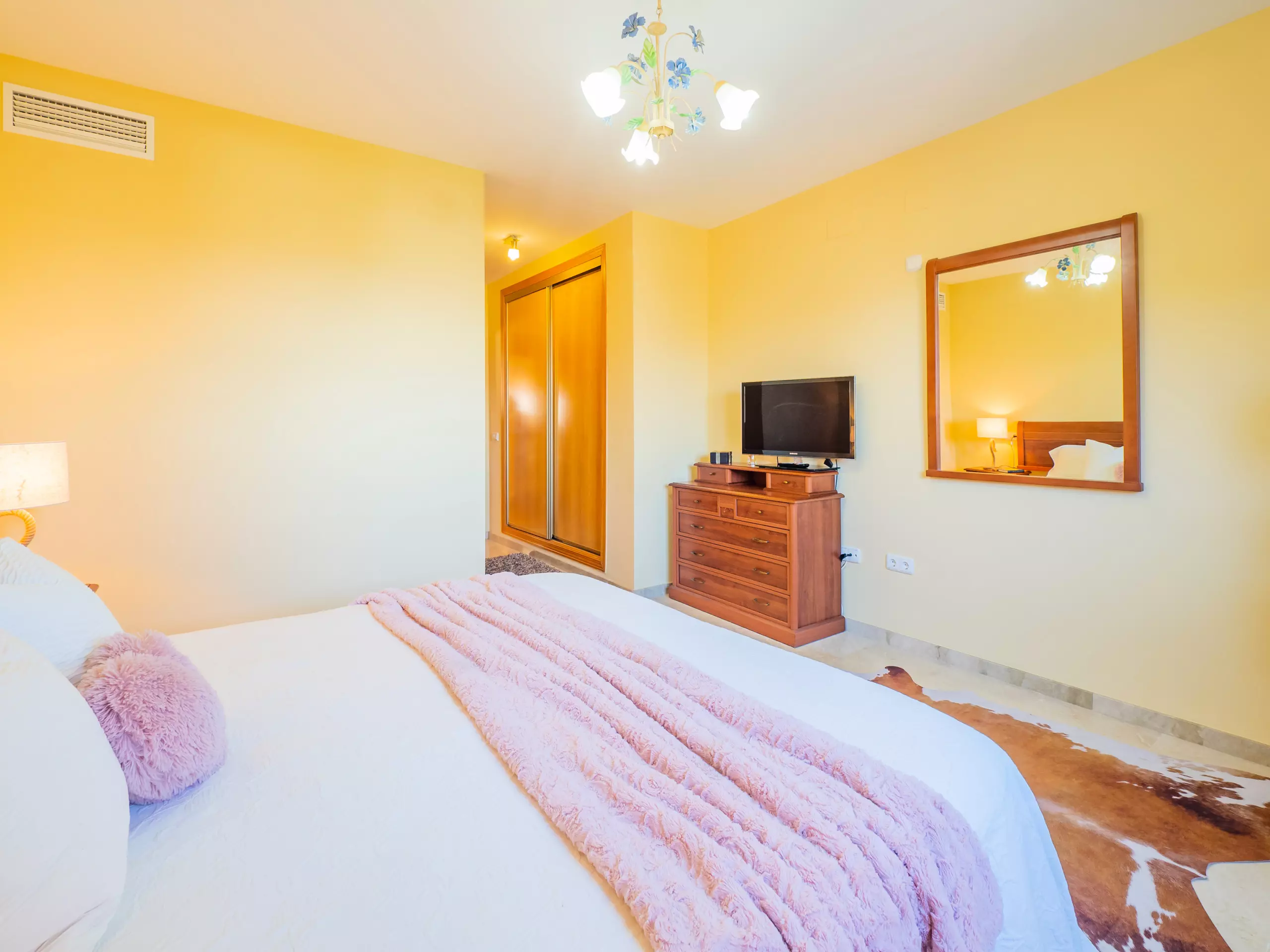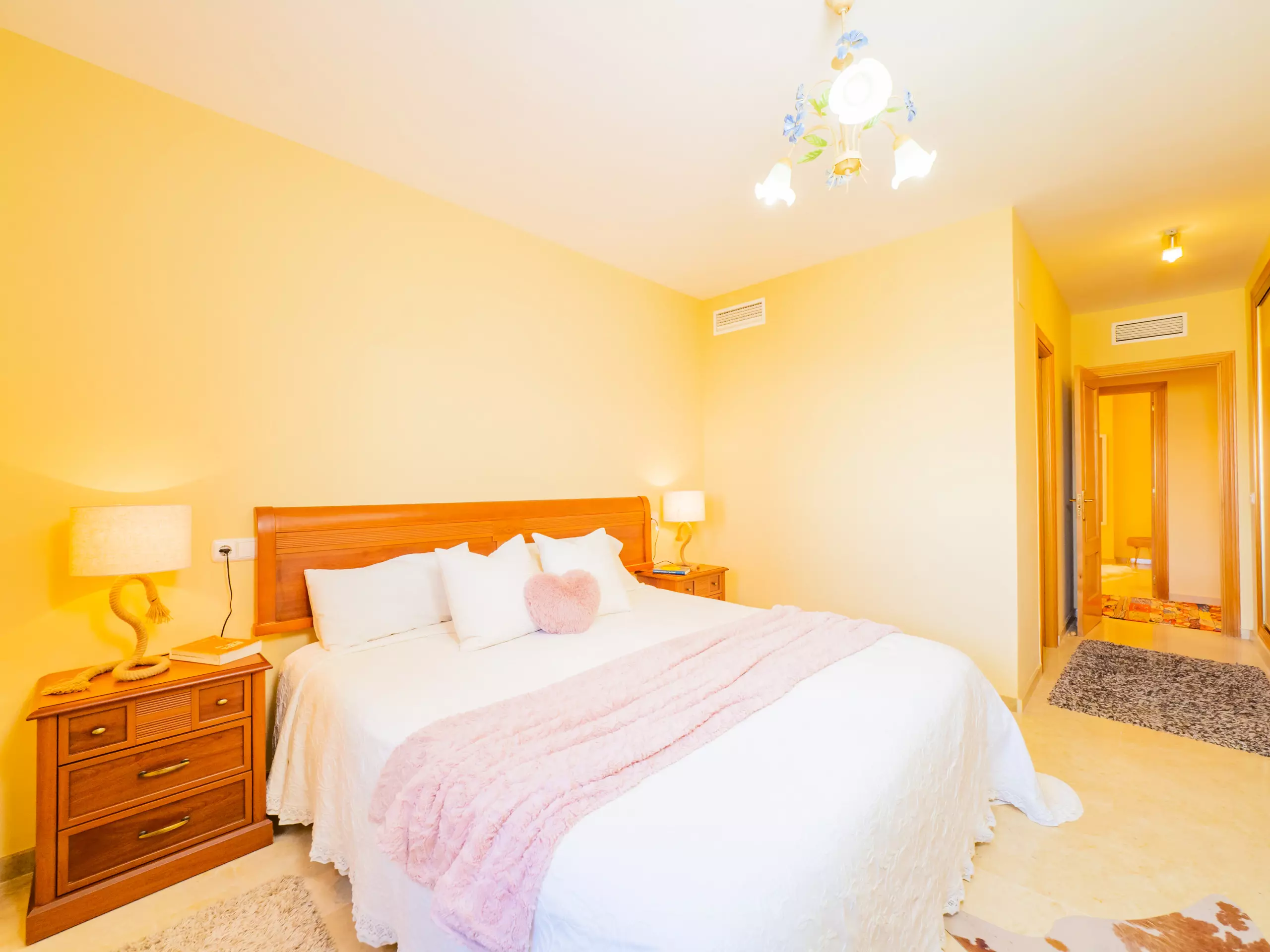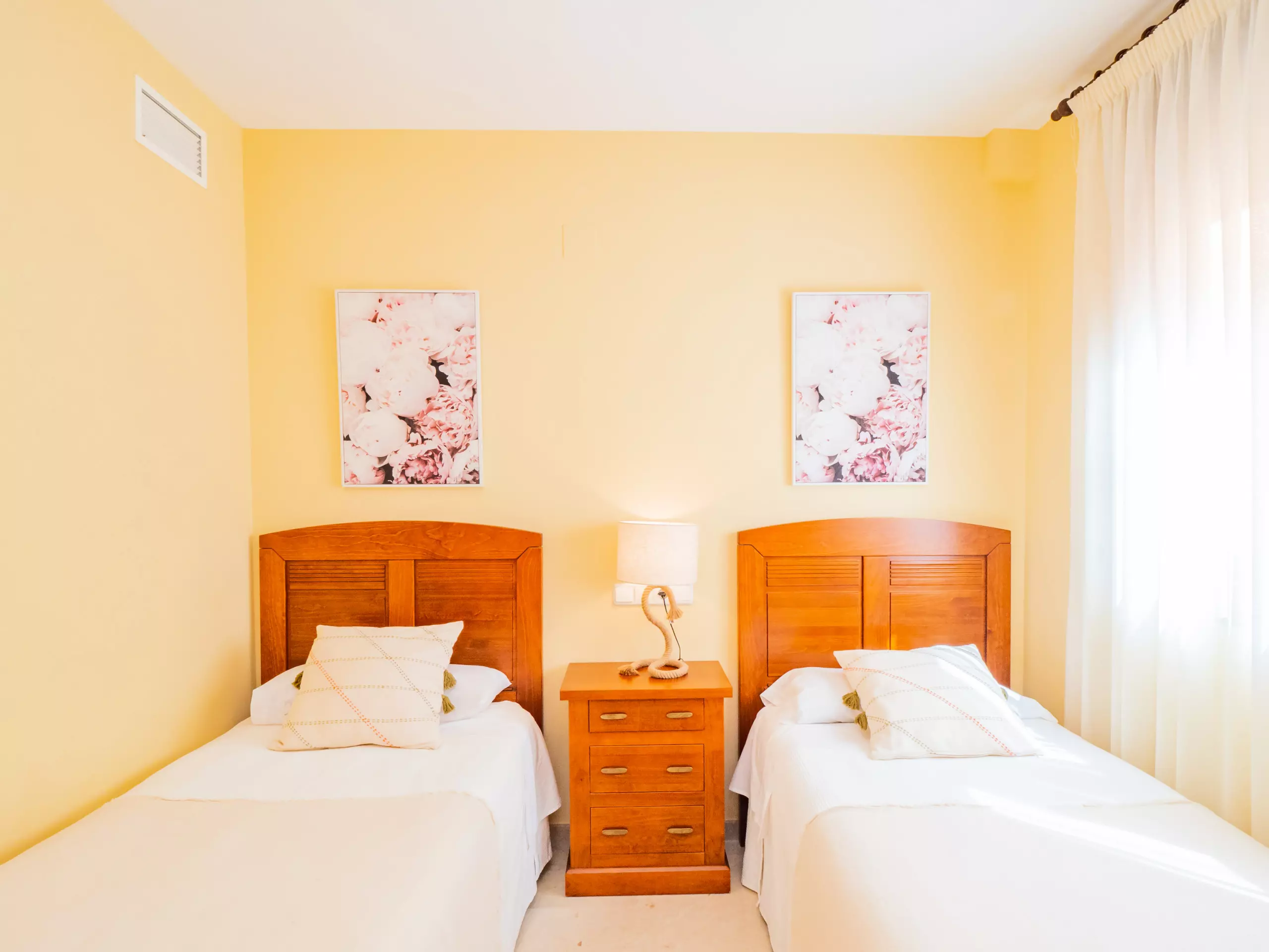 L'appartement dispose de deux chambres pouvant accueillir 4 personnes : une avec un lit de couple et une télévision, et l'autre avec deux lits individuels. Les deux chambres ont des fenêtres donnant sur l'extérieur et suffisamment d'espace pour ranger les bagages. La salle de bain complète comprend une baignoire. La climatisation centralisée garantit un confort tout au long de l'année. De plus, le logement dispose du wifi et d'une place de parking couverte incluse dans le même bâtiment.