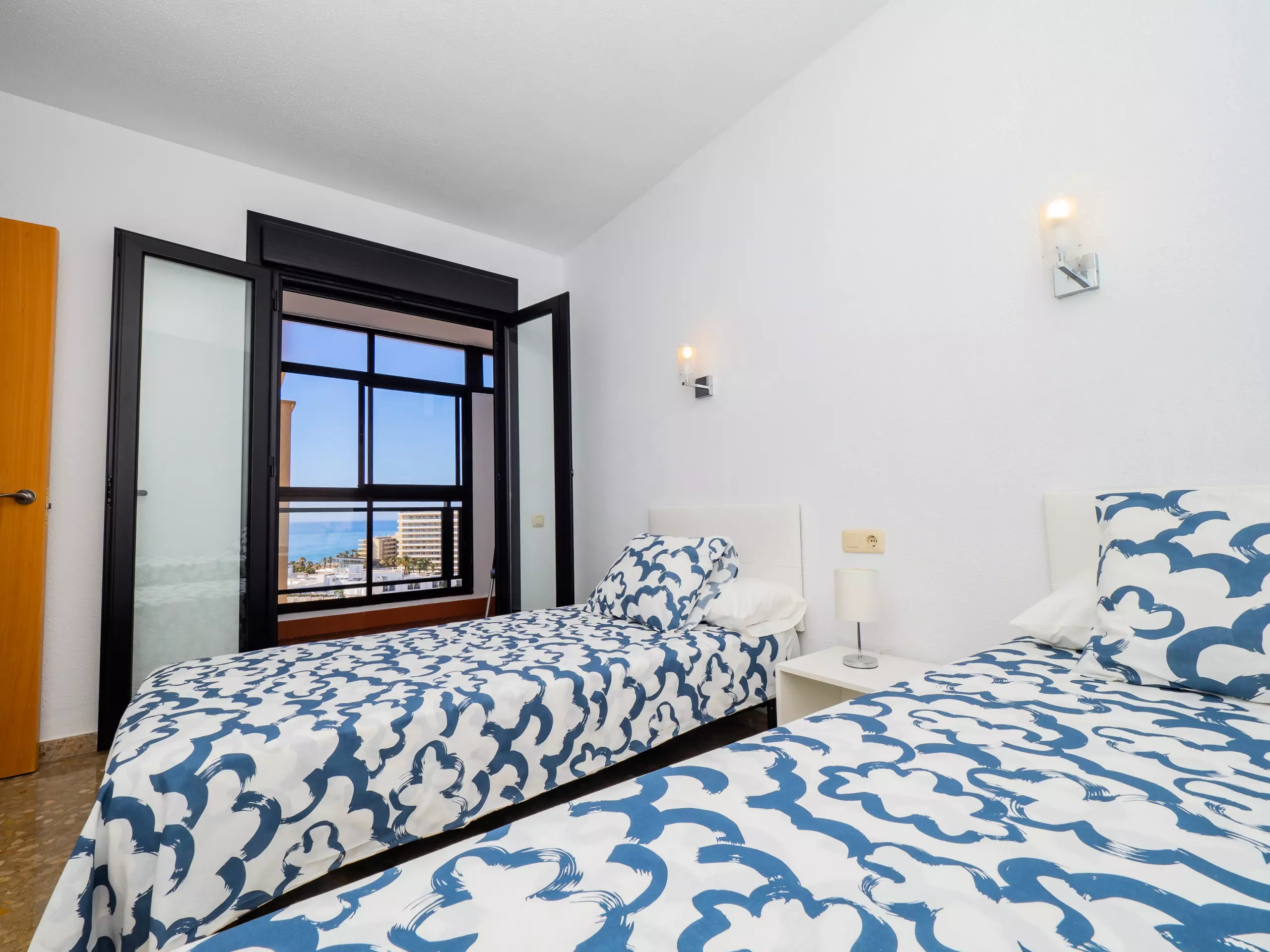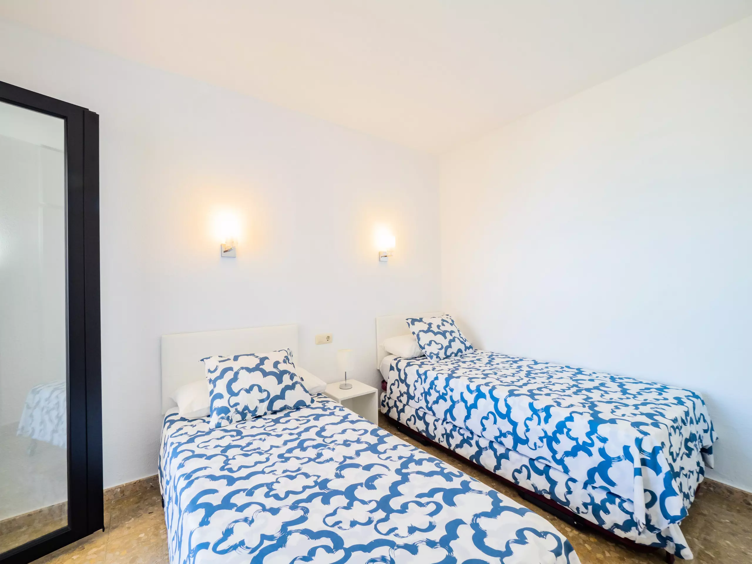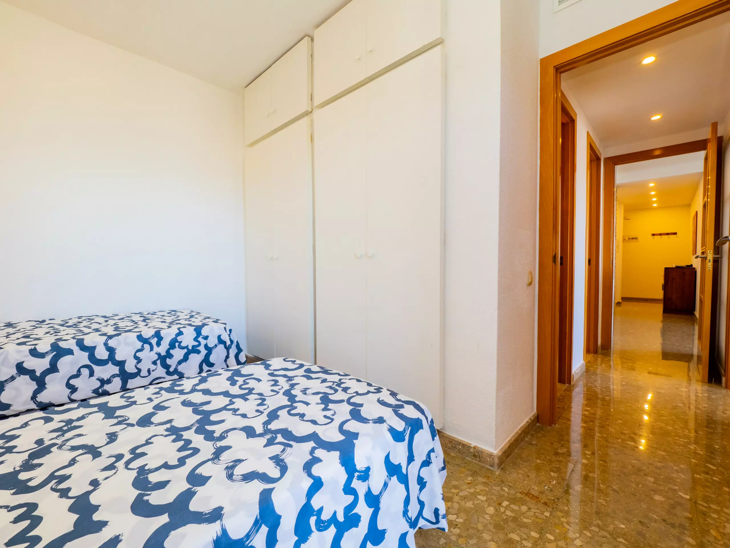 Les deux chambres disposent de lits individuels et d'espace pour ranger les bagages, l'une d'entre elles avec une petite terrasse vitrée indépendante, garantissant le calme et la tranquillité. L'appartement est climatisé avec un système de climatisation centralisé et une pompe à chaleur pour un plus grand confort tout au long de l'année.