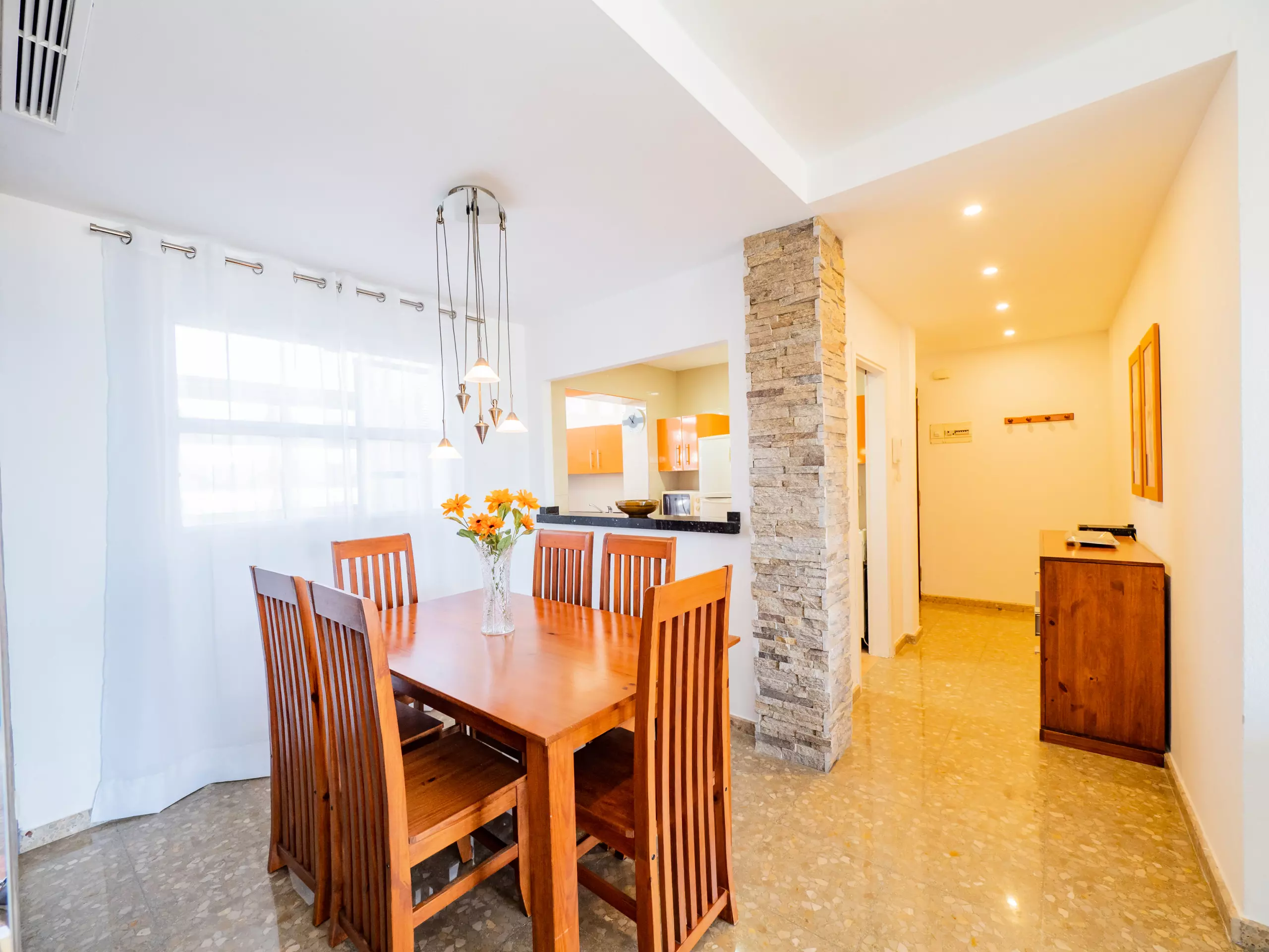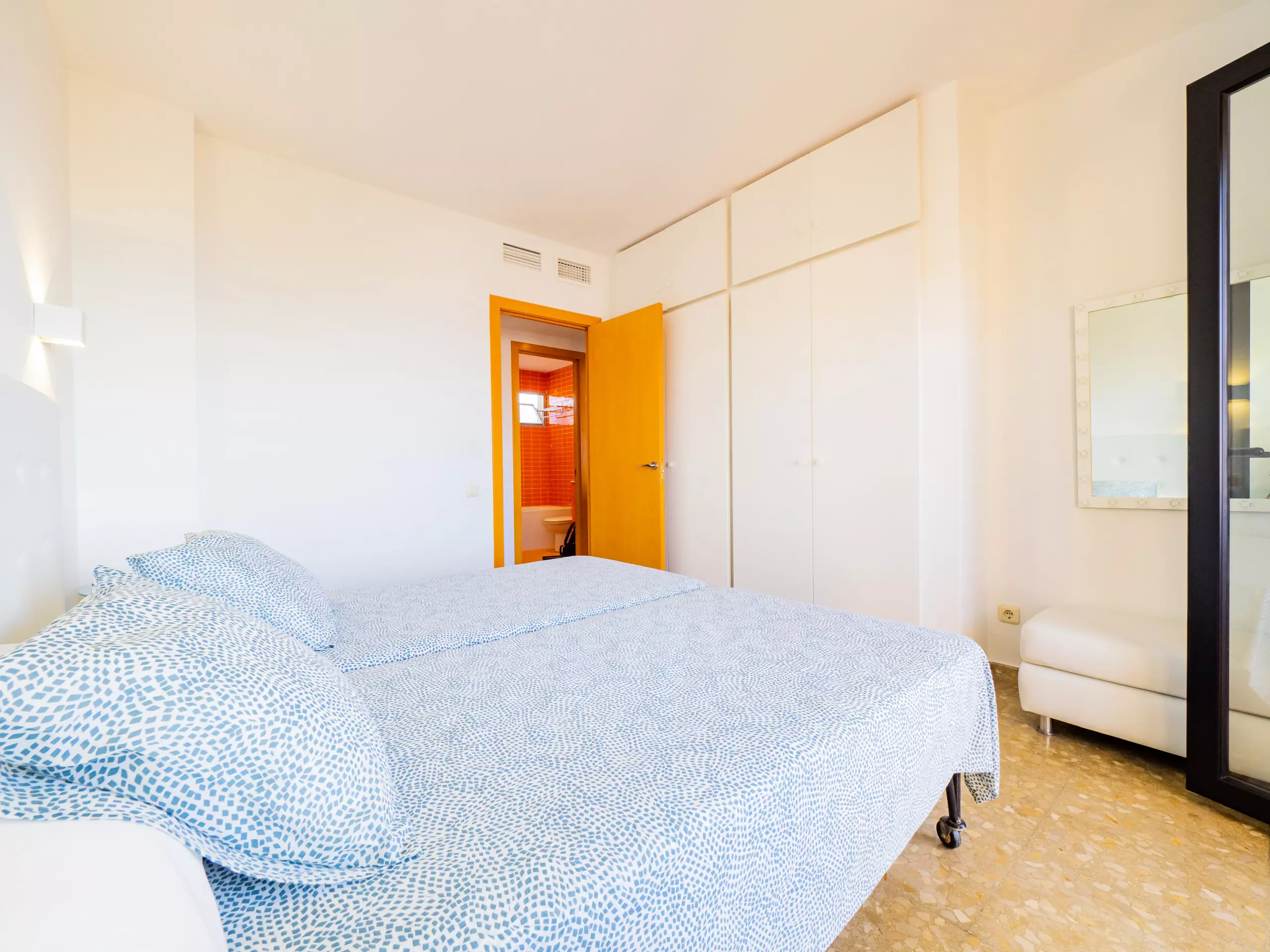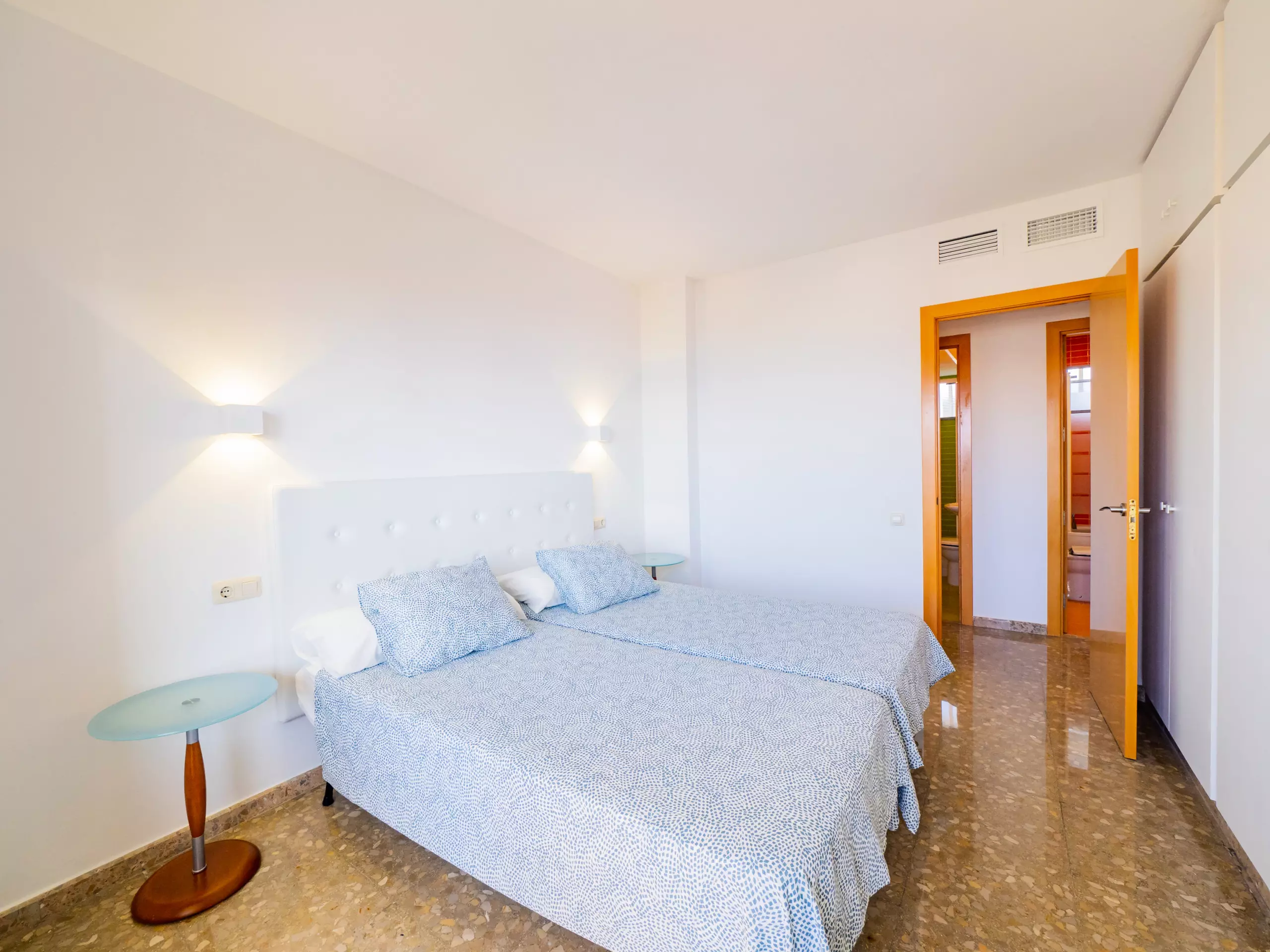 Les deux chambres disposent de lits individuels et d'espace pour ranger les bagages, l'une d'entre elles avec une petite terrasse vitrée indépendante, garantissant le calme et la tranquillité. L'appartement est climatisé avec un système de climatisation centralisé et une pompe à chaleur pour un plus grand confort tout au long de l'année.