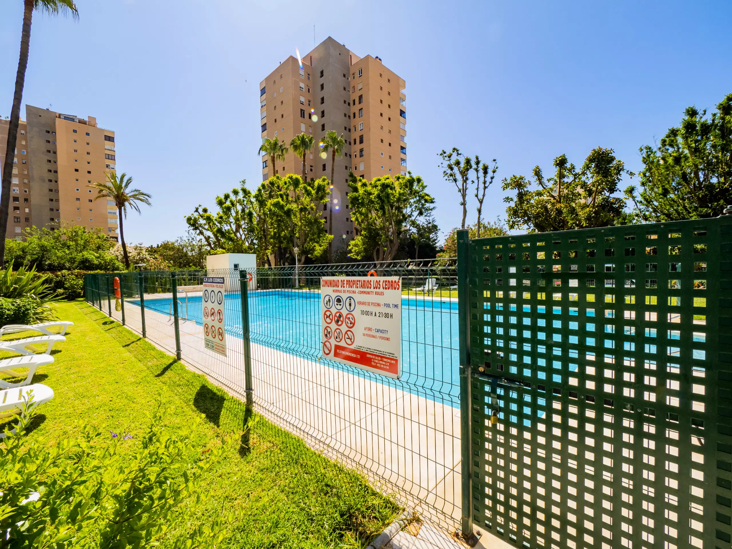 Cet appartement confortable de 90 m² à Torremolinos offre une expérience complète pour jusqu'à 5 personnes, avec 2 chambres et 2 salles de bains, situé à seulement 50 mètres de la Plage du Bajondillo. Idéal pour ceux qui recherchent le confort et la proximité de la mer, il se trouve dans une belle communauté avec des jardins soignés et une piscine communautaire, parfaite pour se détendre après une journée d'exploration. De plus, il dispose d'une place de parking numérotée incluse dans le tarif et un accès par ascenseur ou escaliers.