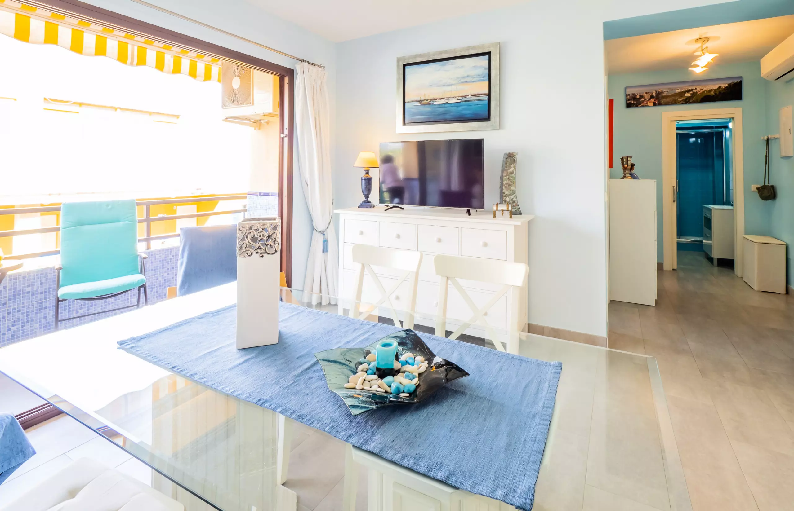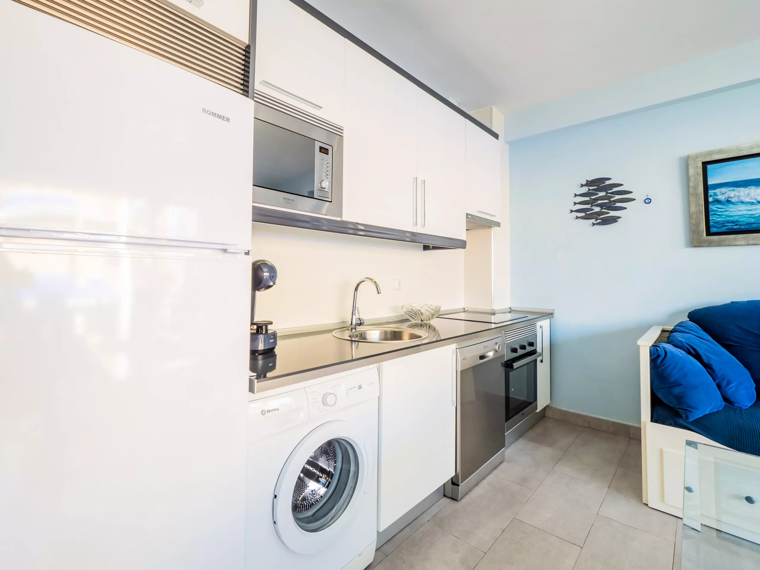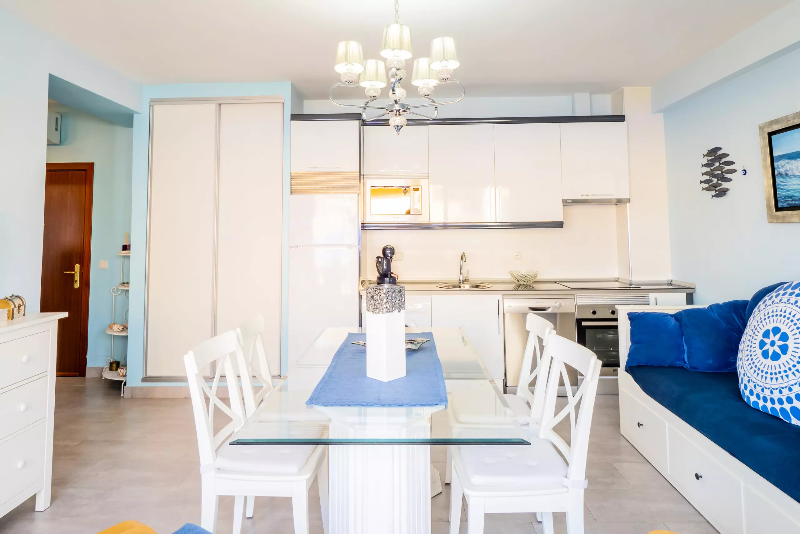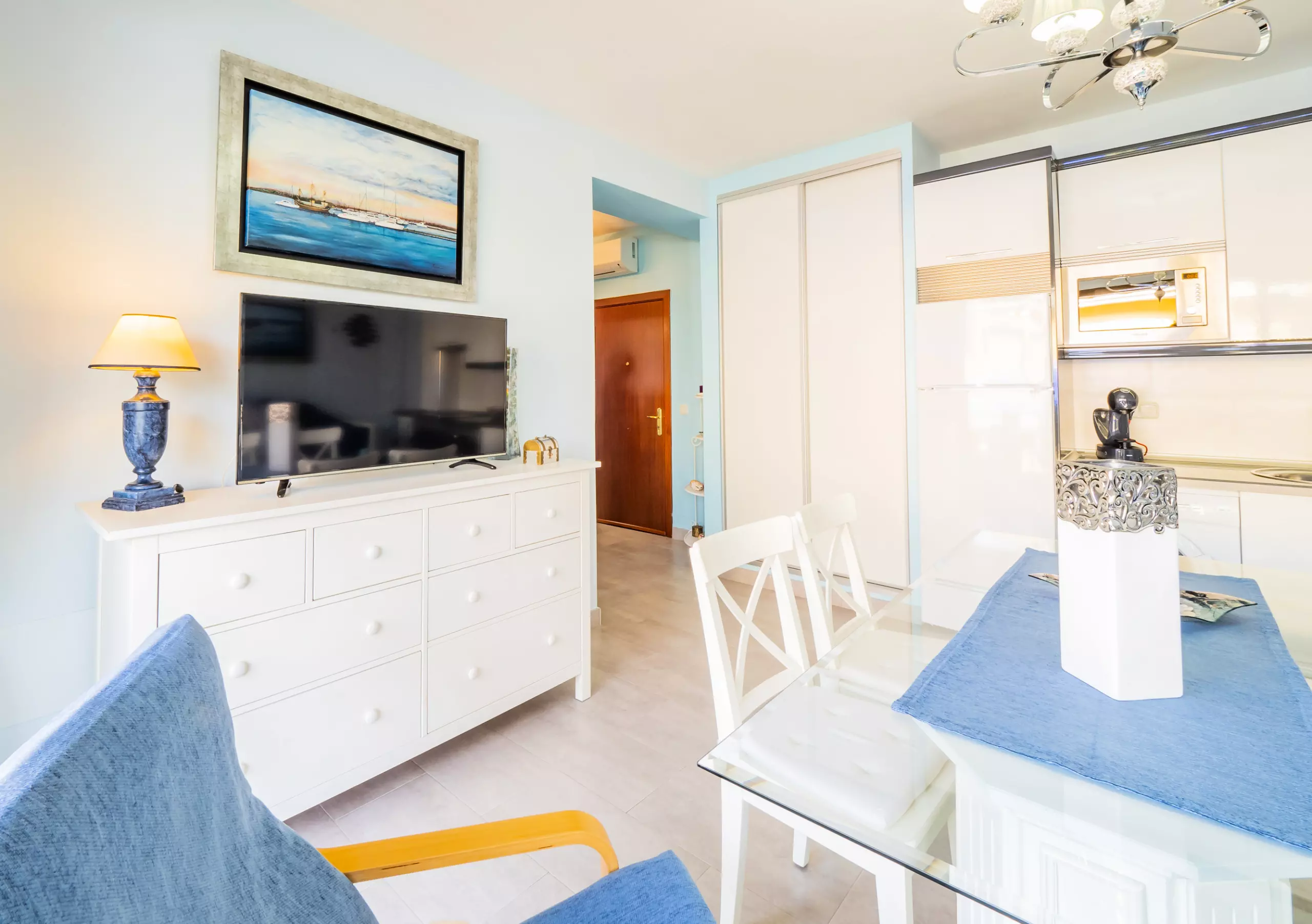 Le salon est spacieux et confortable, avec un canapé élégant où vous pourrez vous reposer tout en profitant de la télévision ou de votre série préférée grâce à la connexion WIFI gratuite ??. La cuisine, intégrée et équipée de tout le nécessaire, dispose d'un bar américain et de lumière naturelle, parfaite pour préparer vos repas en toute commodité ?.