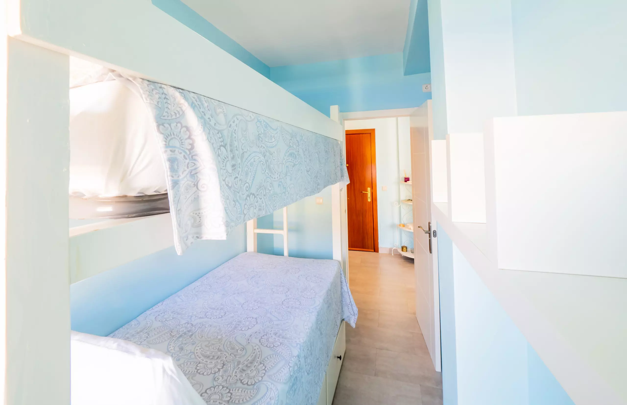 Ce logement dispose de deux chambres : l'une avec un lit de couple et l'autre avec un lit superposé individuel, toutes deux lumineuses et offrant suffisamment d'espace pour ranger vos bagages de manière organisée ??. La salle de bain est moderne et récemment rénovée, avec une douche pour votre confort ?.