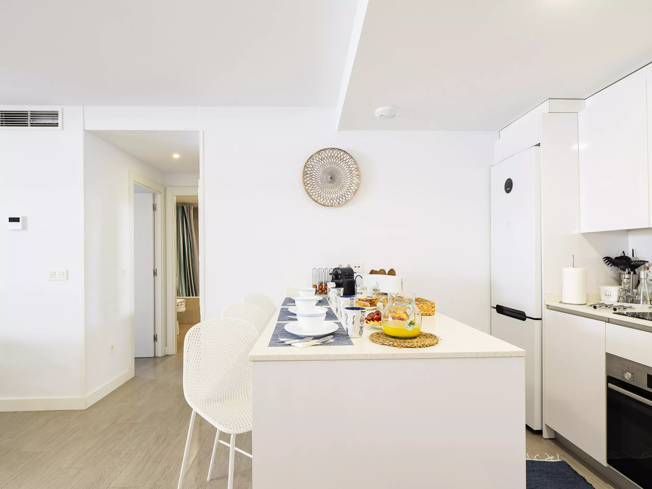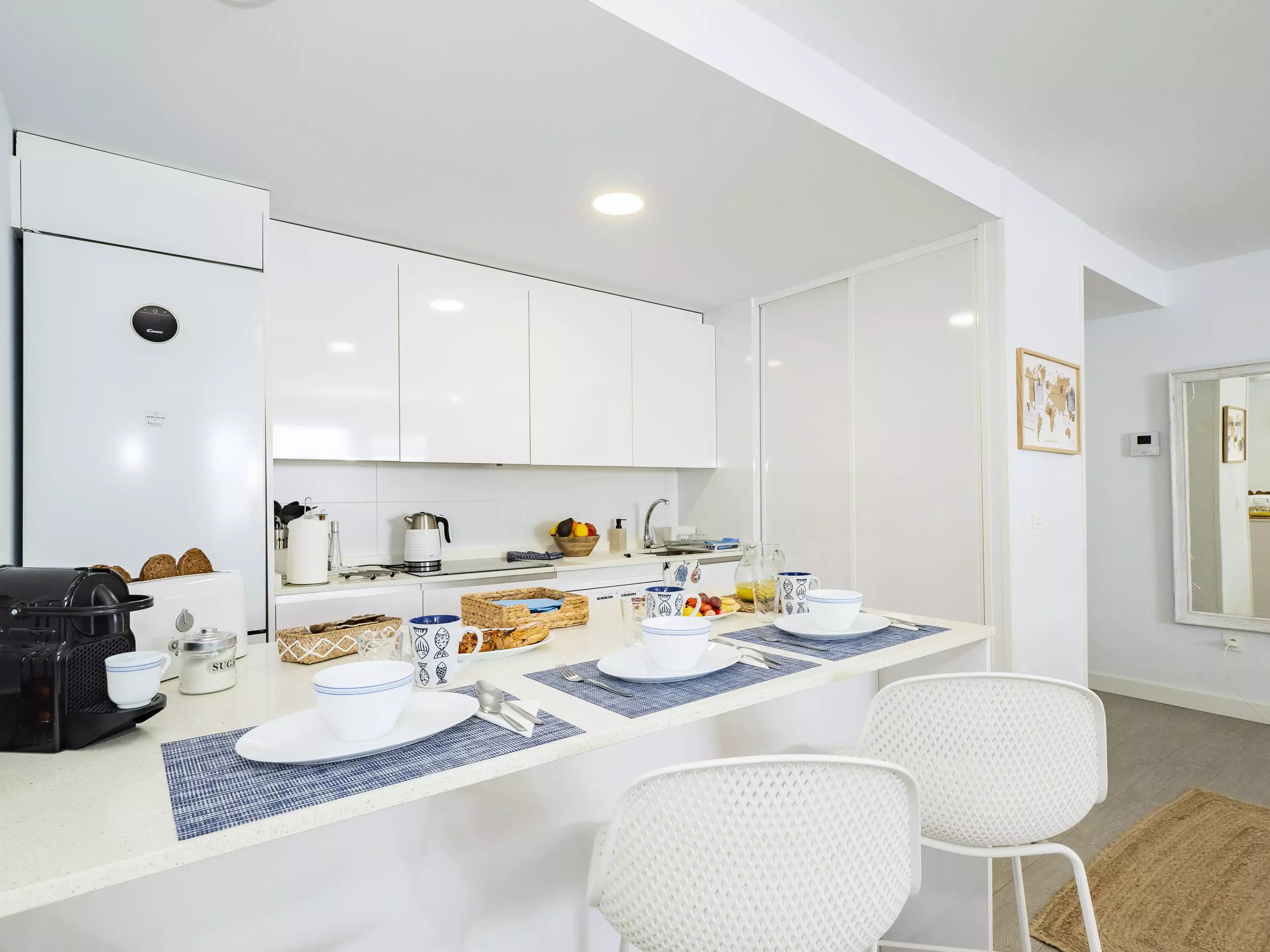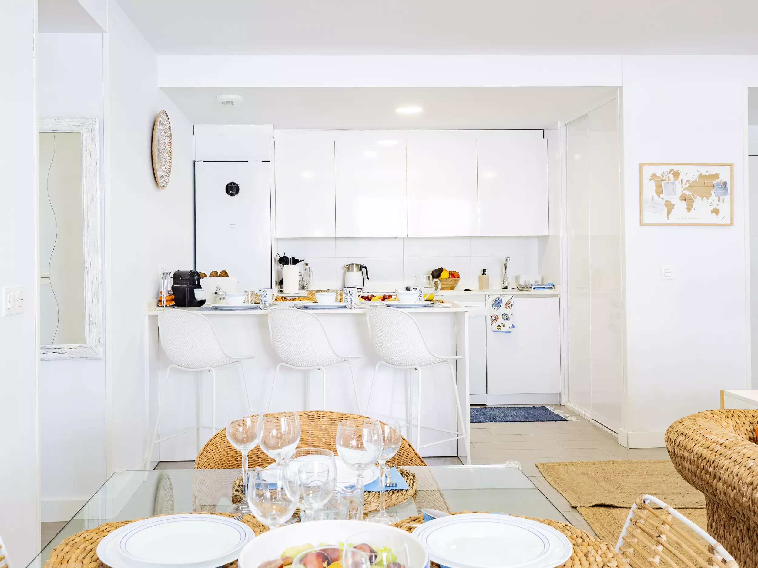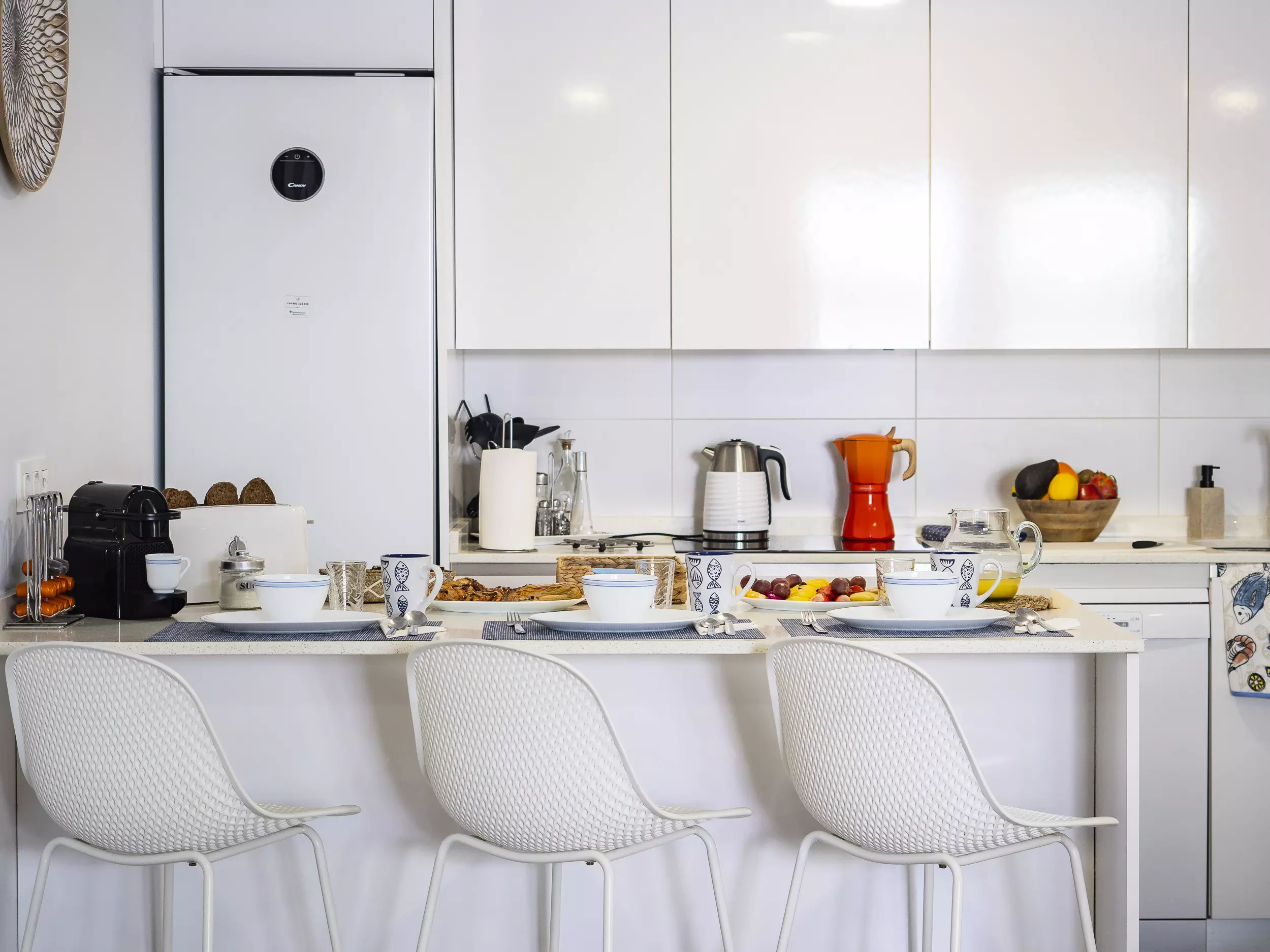 La cuisine américaine est entièrement équipée avec une plaque vitrocéramique, un réfrigérateur, un four, un micro-ondes, un congélateur, un lave-vaisselle et tous les ustensiles nécessaires pour préparer vos plats préférés. De plus, l'appartement dispose de la climatisation, du chauffage central, d'un lave-linge, d'un fer à repasser, d'un sèche-cheveux et du wifi pour que rien ne vous manque pendant votre séjour.