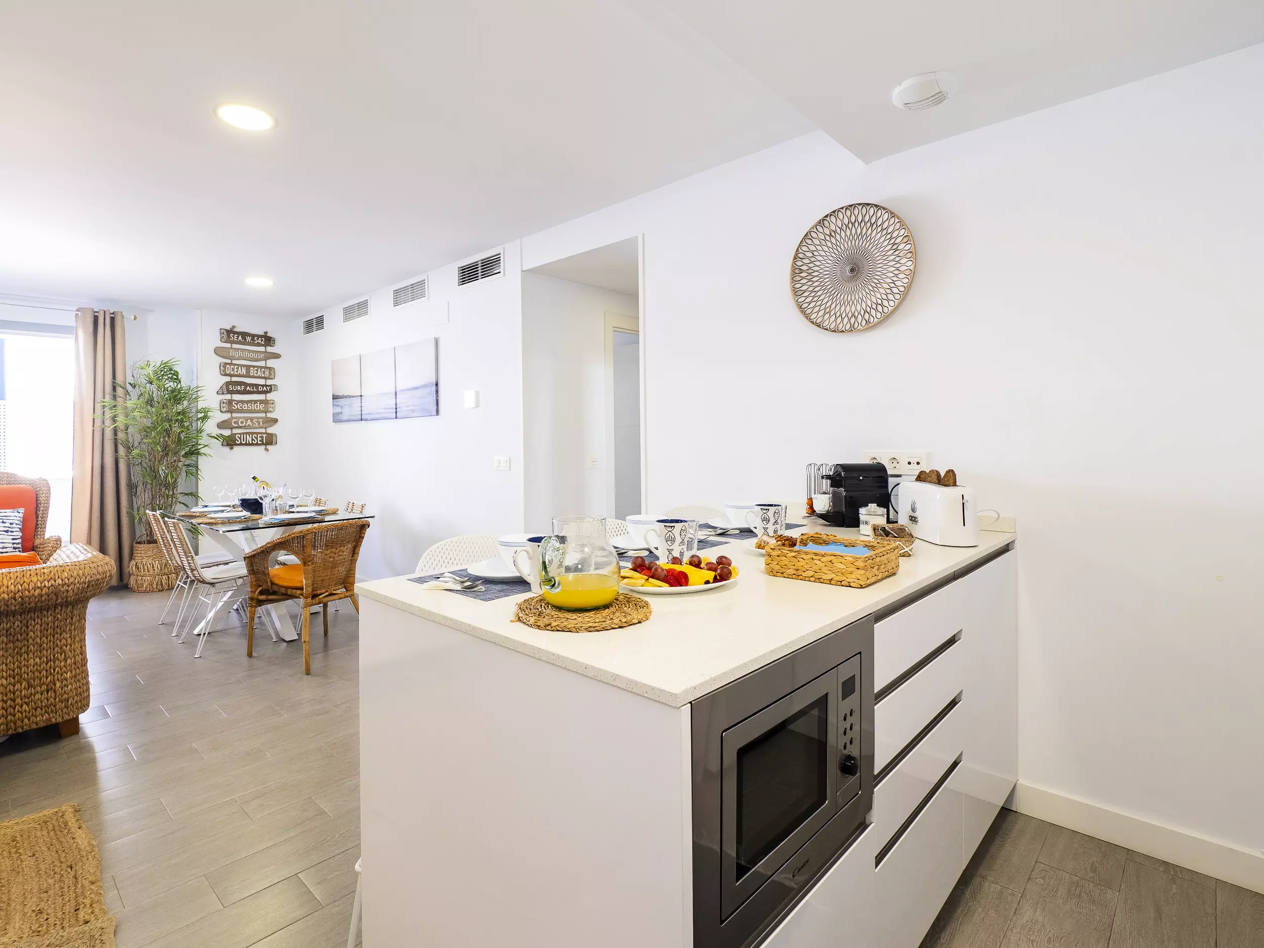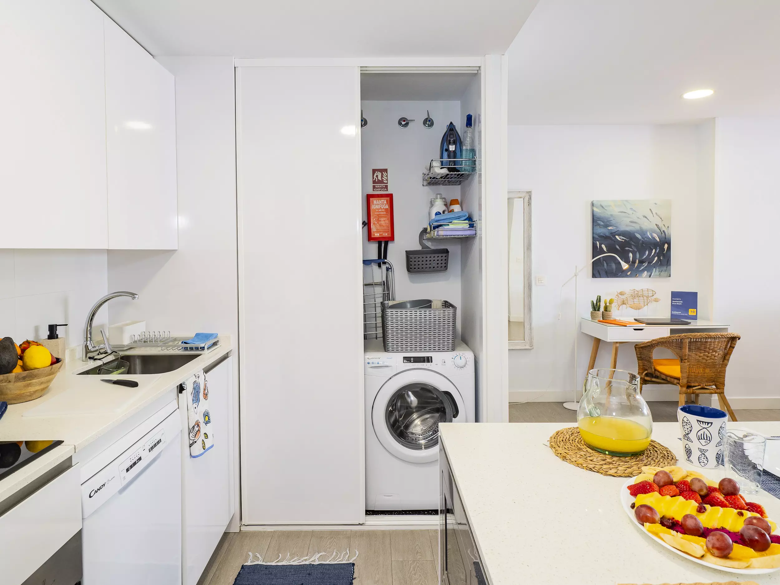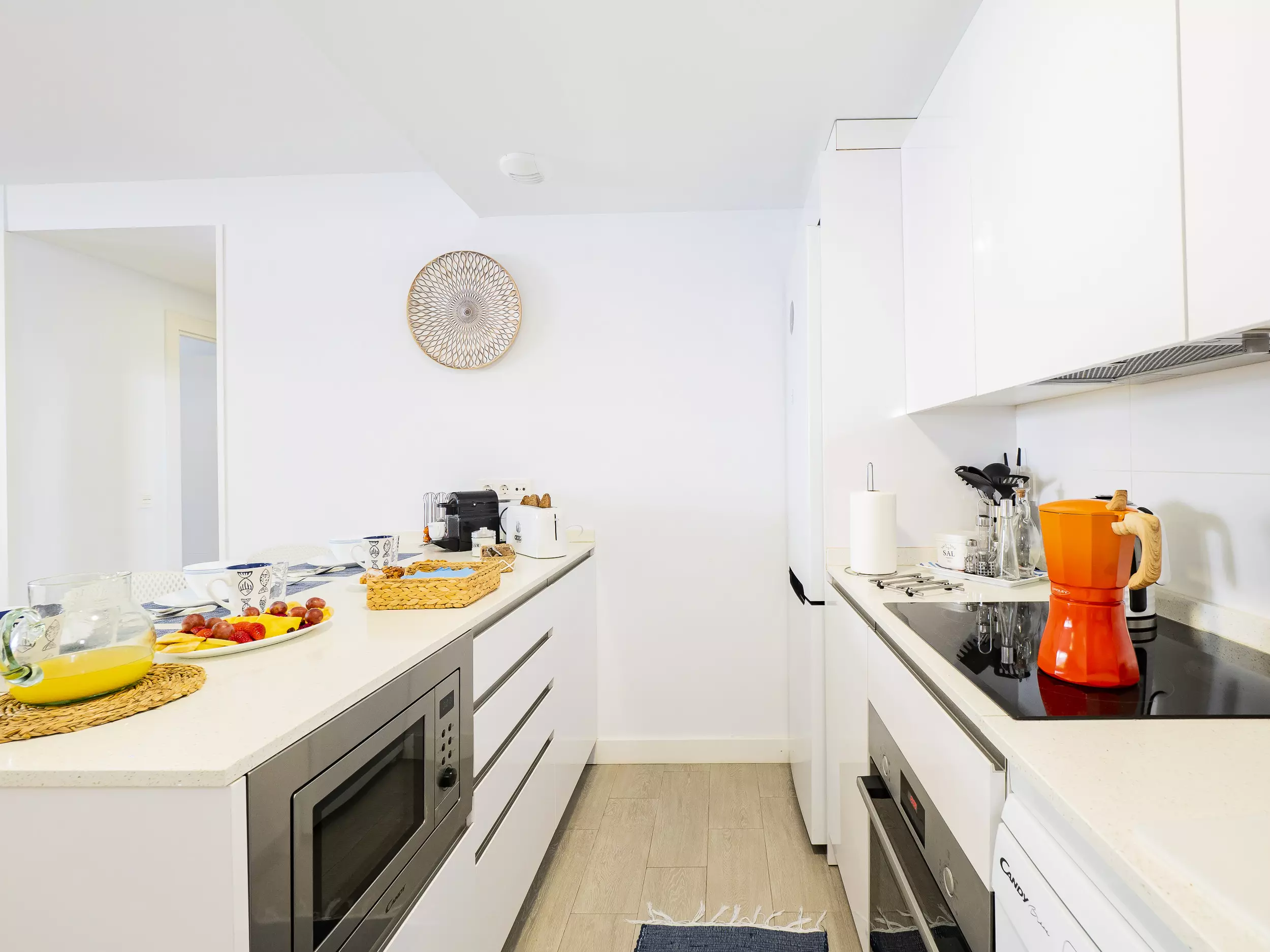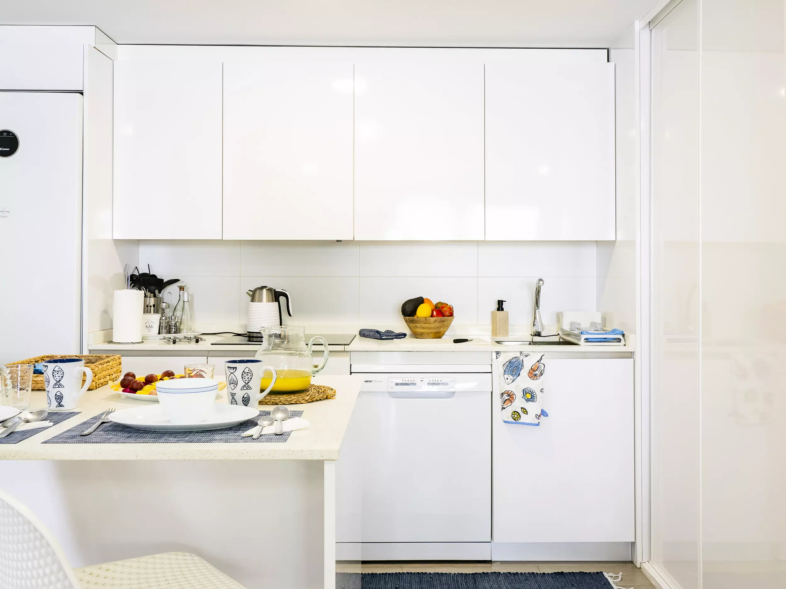 La cuisine américaine est entièrement équipée avec une plaque vitrocéramique, un réfrigérateur, un four, un micro-ondes, un congélateur, un lave-vaisselle et tous les ustensiles nécessaires pour préparer vos plats préférés. De plus, l'appartement dispose de la climatisation, du chauffage central, d'un lave-linge, d'un fer à repasser, d'un sèche-cheveux et du wifi pour que rien ne vous manque pendant votre séjour.