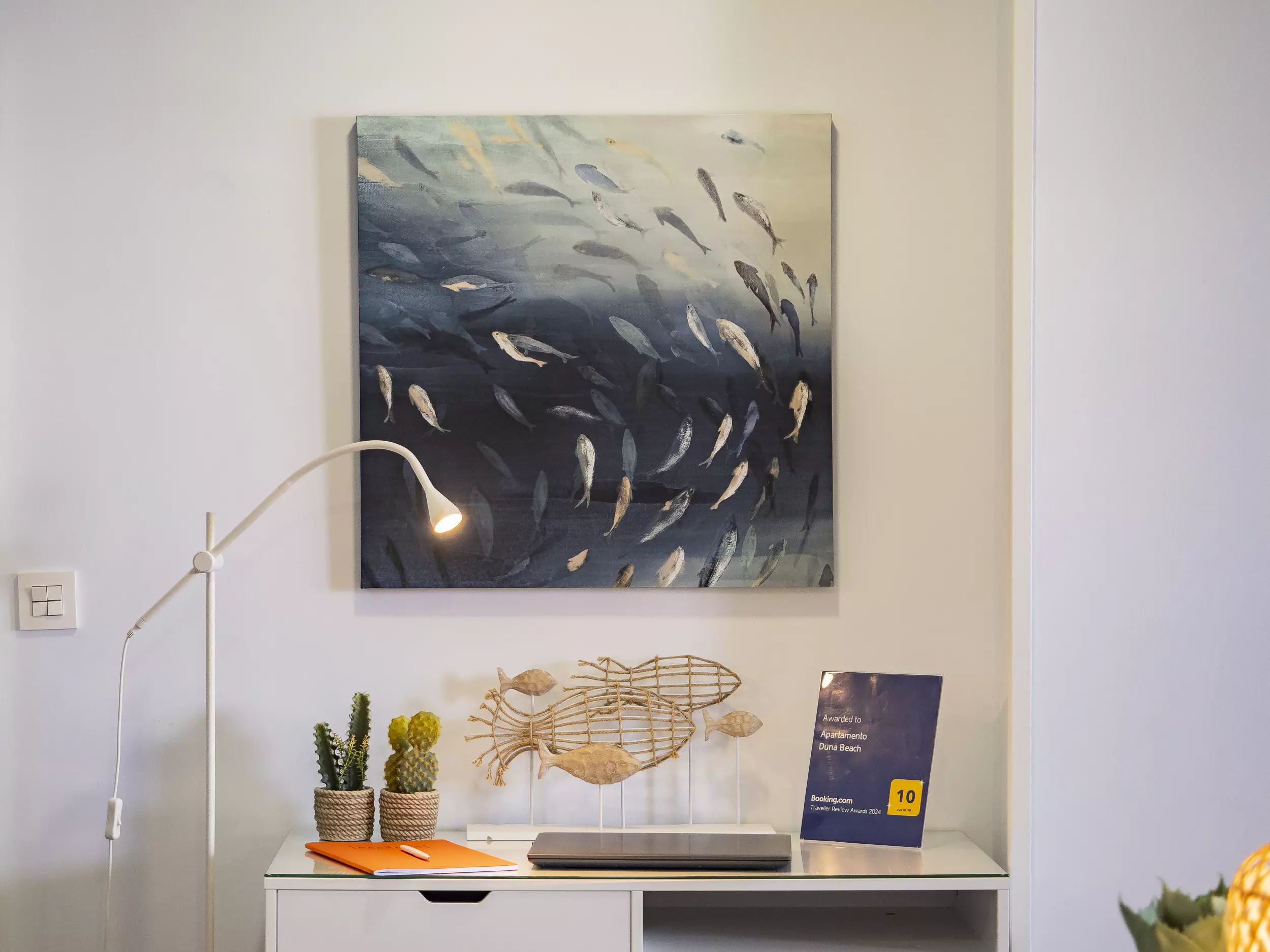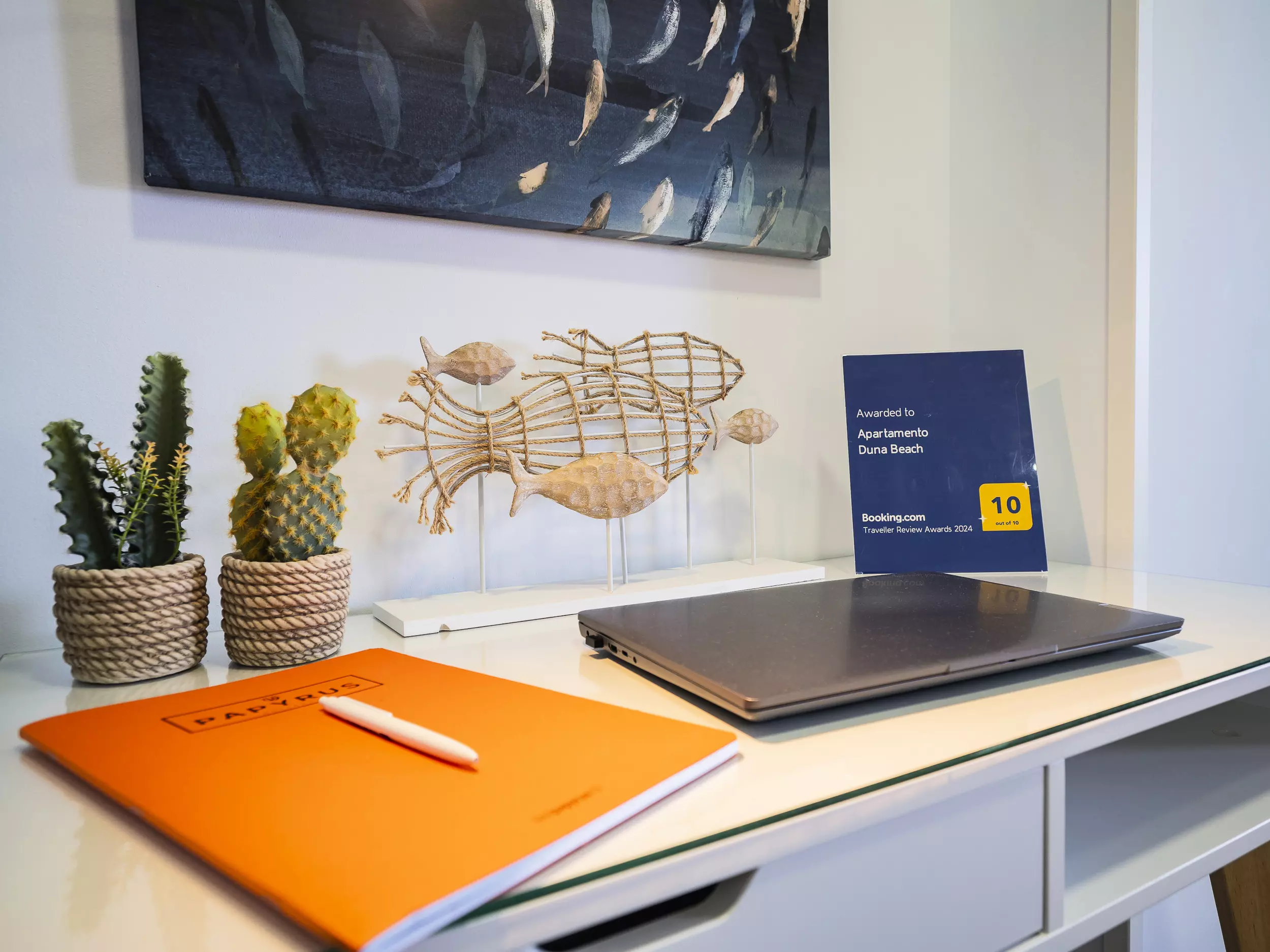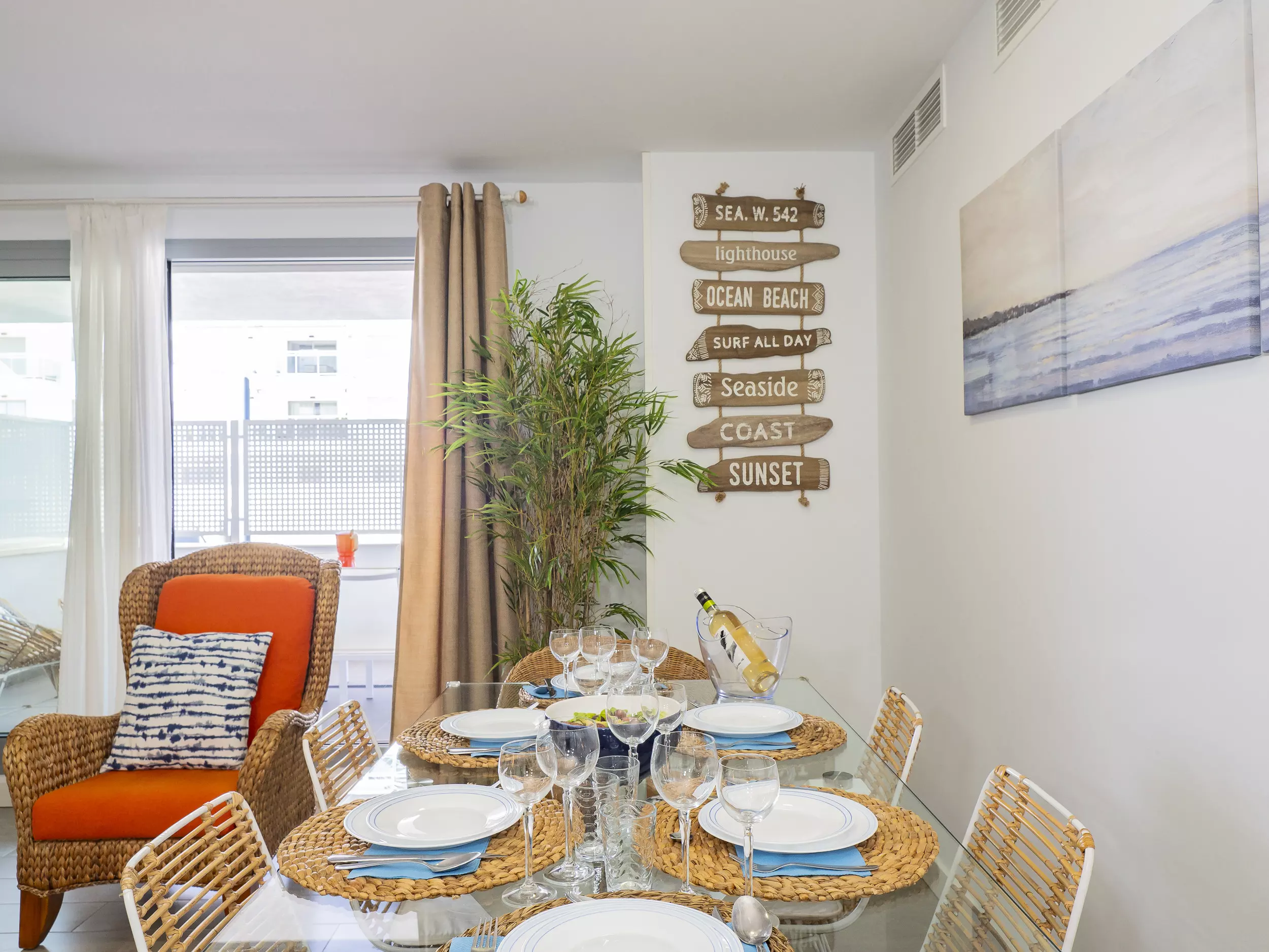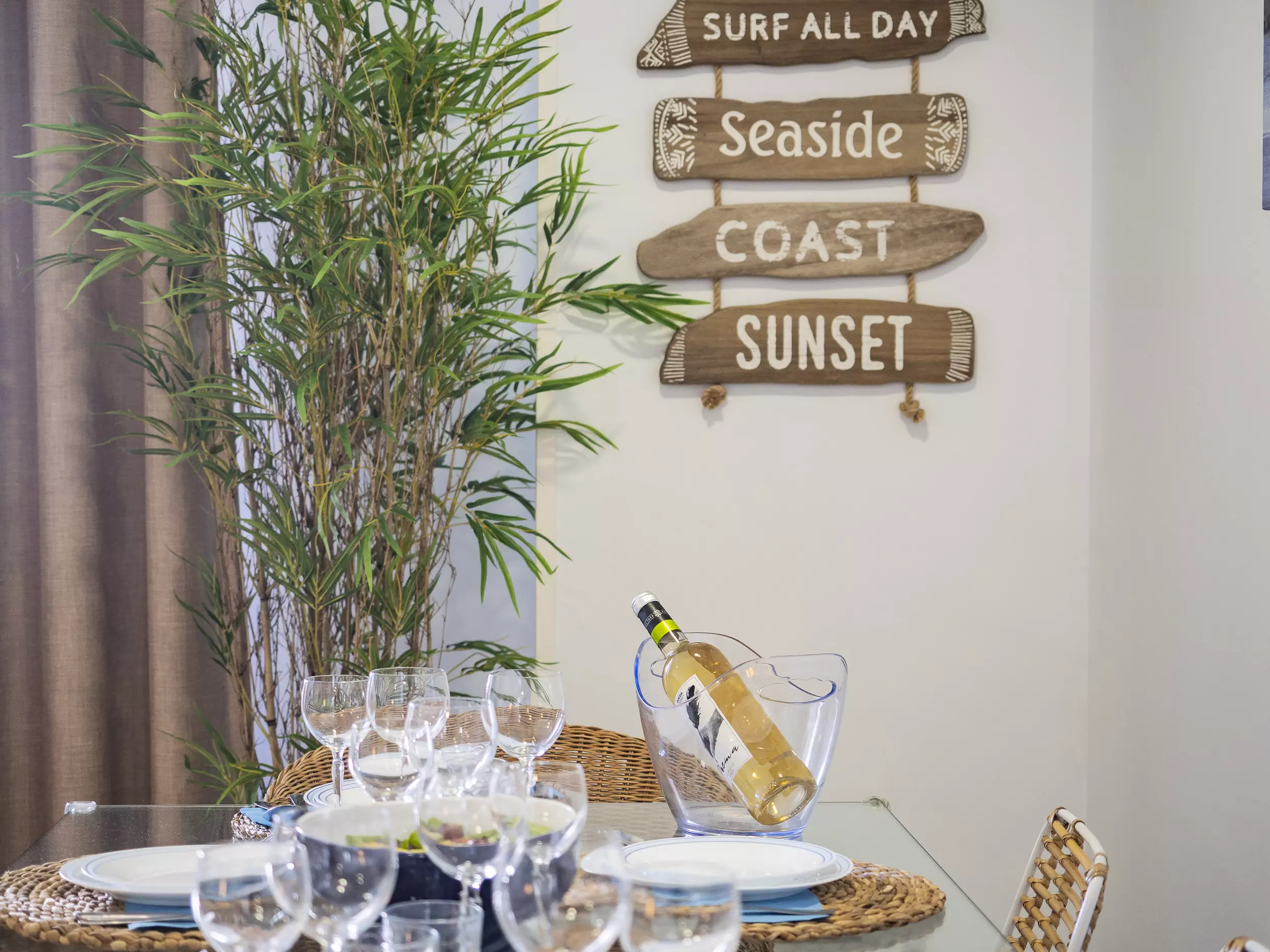La cuisine américaine est entièrement équipée avec une plaque vitrocéramique, un réfrigérateur, un four, un micro-ondes, un congélateur, un lave-vaisselle et tous les ustensiles nécessaires pour préparer vos plats préférés. De plus, l'appartement dispose de la climatisation, du chauffage central, d'un lave-linge, d'un fer à repasser, d'un sèche-cheveux et du wifi pour que rien ne vous manque pendant votre séjour.