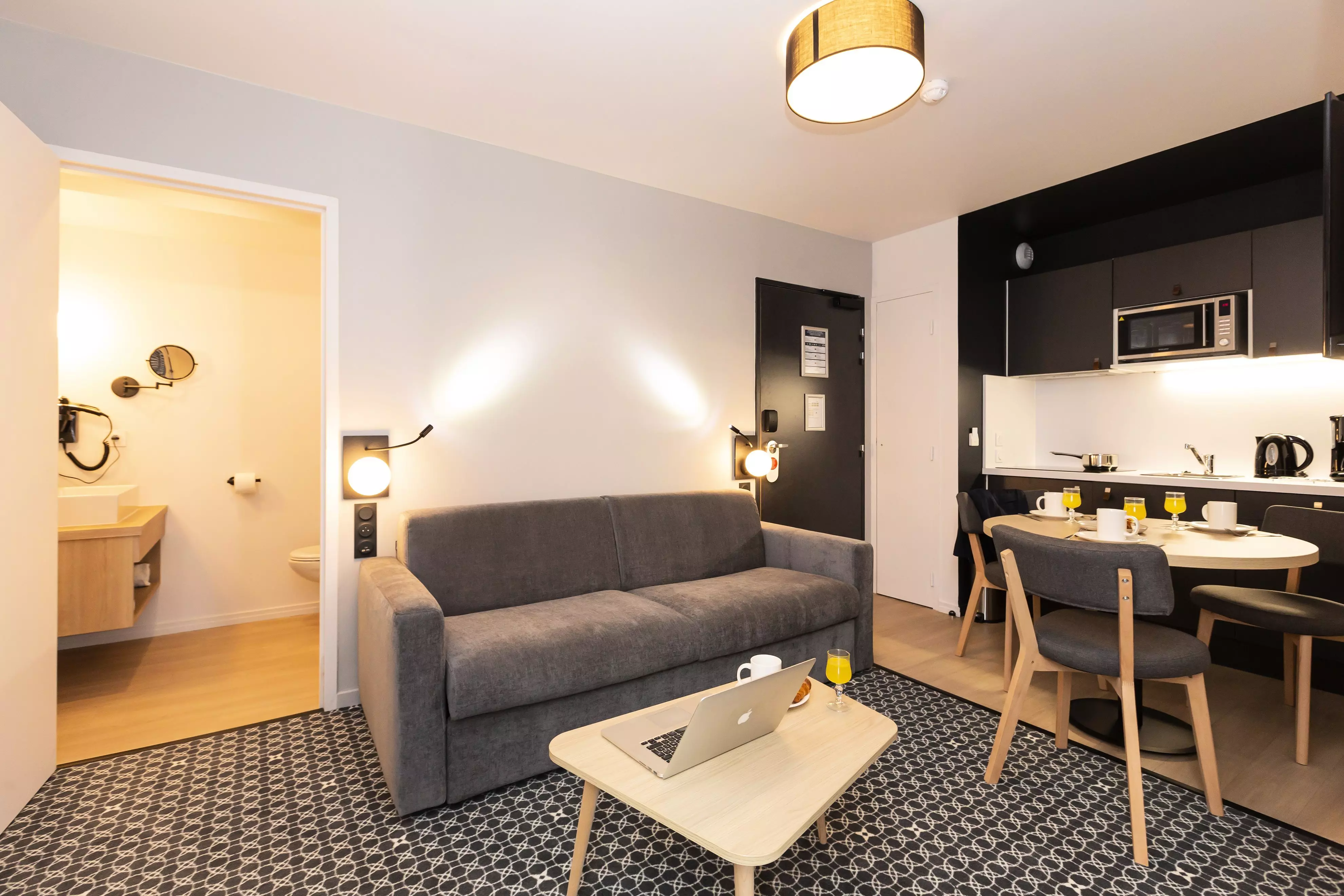 Wifi, salle de fitness, service de petit-déjeuner profitez des services de la résidence et d'espaces adaptés à vos besoins. Les appartements, du studio au 2 pièces sont confortablement équipés avec cafetière, lave-vaisselle, plaque de cuisson et espace de travail avec bureau.