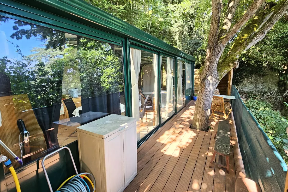 Sans vis-à-vis, vous pourrez profiter d’une jolie terrasse en bois de 18m².