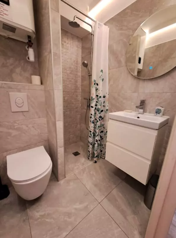 * une cuisine entièrement équipée et fonctionnelle (micro-ondes, réfrigérateur, cafetière Senseo, etc.) ;