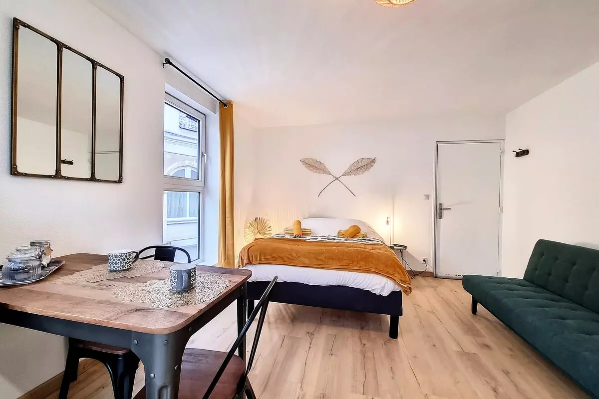 L’emplacement fait toute la différence : en quelques minutes, vous rejoignez les commerces, les cafés et l’ambiance gourmande de la Place du Vieux-Marché, et la gare de Rouen se trouve à environ 10 minutes à pied. Les ruelles du centre, les sites historiques et les quais sont tout proches — ici, on oublie la voiture.