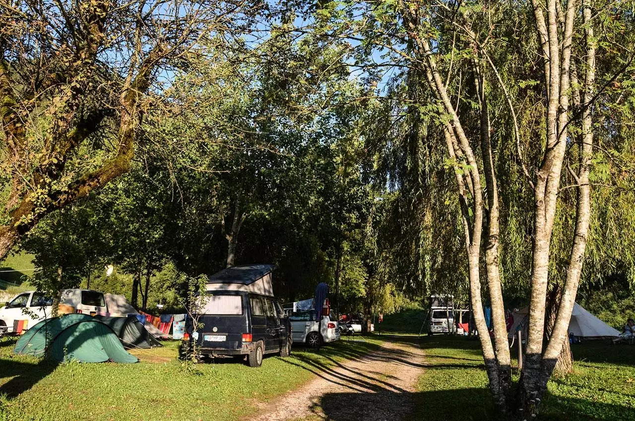 Small and shady spots on the lawn for tents or minivan invite you to a relaxing holiday in the middle of the beautiful mountains of the Ledro Valley.