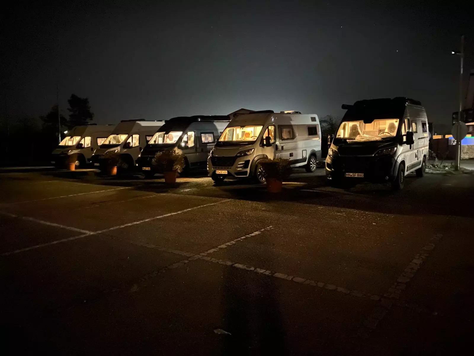 parkplatzähnlicher Stellplatz für die Durchreise für Vans, Reisemobile oder Wohnwagen bis 9m (Breite ca. 5m). Auffahrkeile erforderlich!