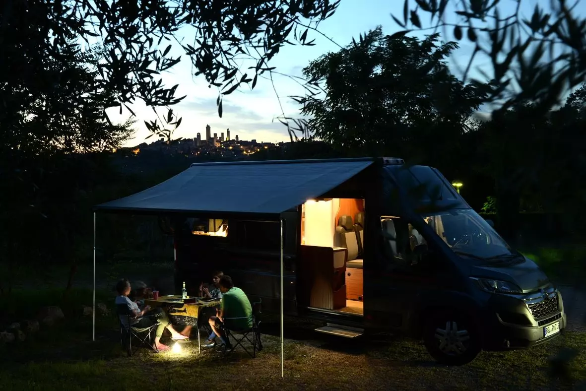 Le Tuscan Sun est un mobile home confortable et spacieux pour maximum 5 personnes. Il possède deux chambres à coucher, une salle de bain avec douche et lavabo, WC séparé. Dans une chambre, il y a trois lits, un recommandé pour les enfants jusqu'à 11 ans, dans l'autre chambre il y a un lit double. Dans la salle de séjour, dans lequel il y a un canapé lit, vous trouverez une cuisine équipée, un réfrigérateur avec congélateur et une plaque 4 brûleurs. À l'extérieur y est une véranda en bois meublée avec table, chaises, barbecue, chaises longues et parasol. La mobile home est situé uniquement dans la partie en bas du camping, où on peut arriver avec la voiture de 7h00 jusqu'à 24h00