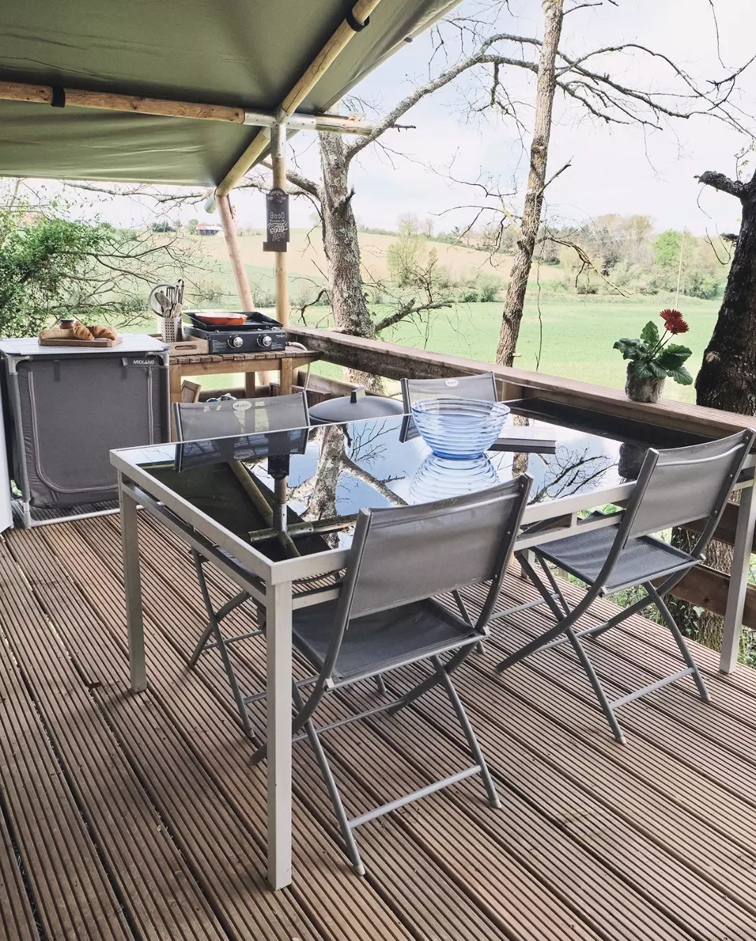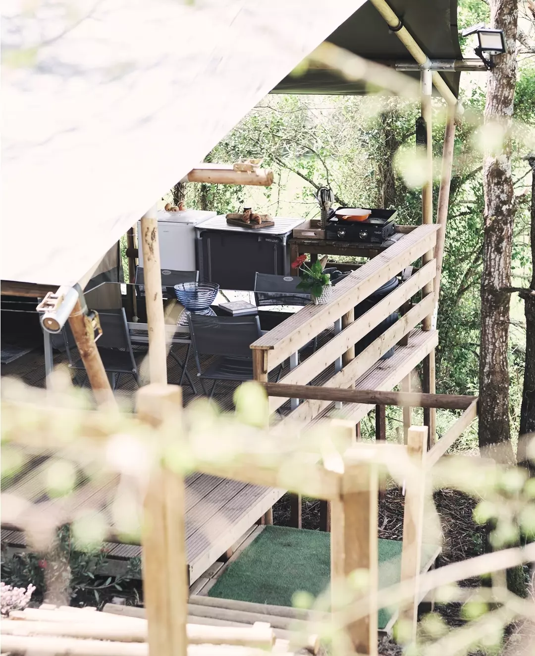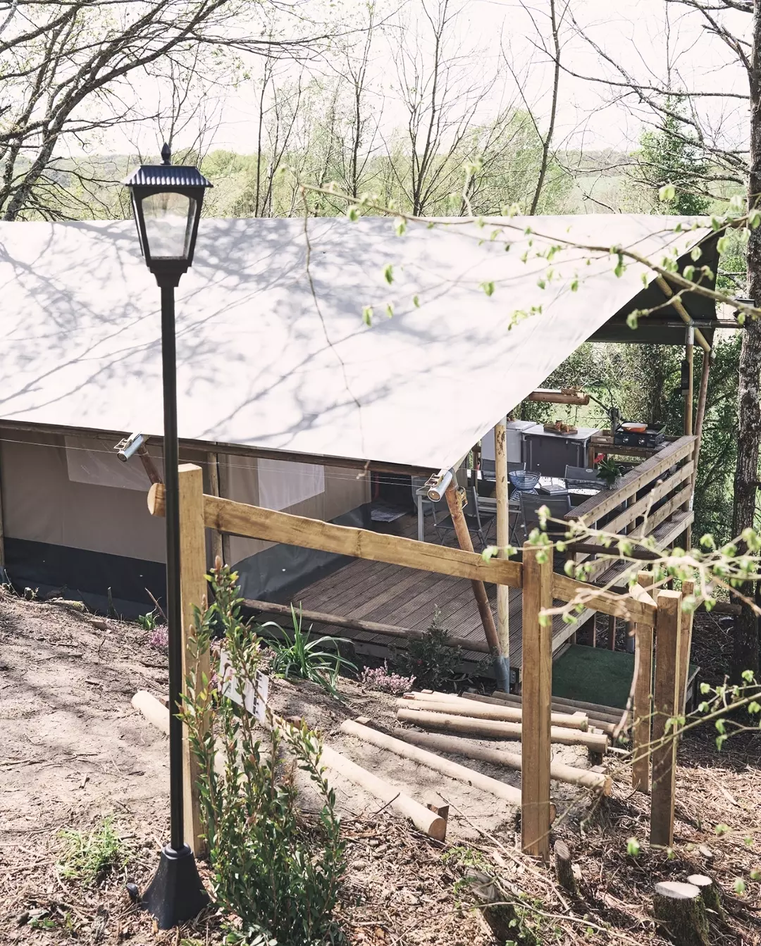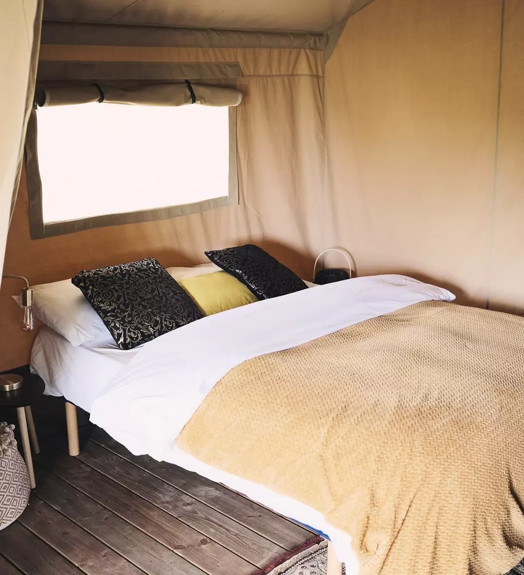 Cette tente de safari unique est entièrement équipée pour des vacances glamping parfaites! Grâce aux détails en bois et à l'avant rétractable, vous obtenez la vraie sensation extérieure du camping, avec tout le confort de la maison. La tente est équipée d'une véranda confortable avec auvent, pour pouvoir rester à l'extérieur. La tente de safari dispose d'une cuisine entièrement équipée avec inventaire et comprend une unité à gaz sécurisée à quatre brûleurs, un réfrigérateur, une machine à café et une bouilloire. En outre, la tente safari a deux cabines de couchage. Dans une cabine il y a un lit double et dans l'autre cabine il y a deux lits simples. Tous les lits comprennent des couvertures et des oreillers et les meubles sont de haute qualité. Tu veux un bon petit déjeuner ? Vous pouvez également réserver au camping et vous rendre à votre tente.