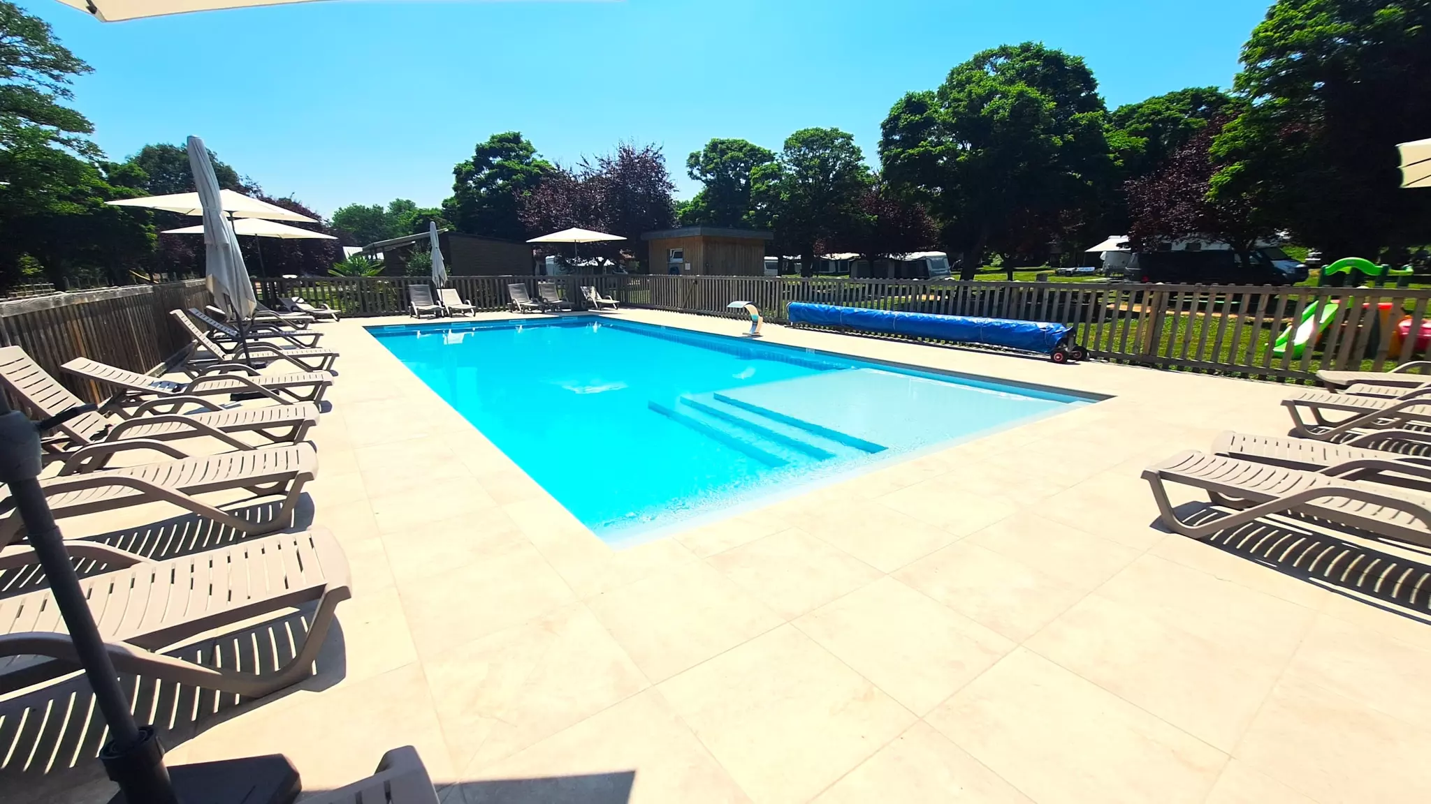 Le camping comprend une piscine, un Snack Bar pour se désaltérer ou grignoter.