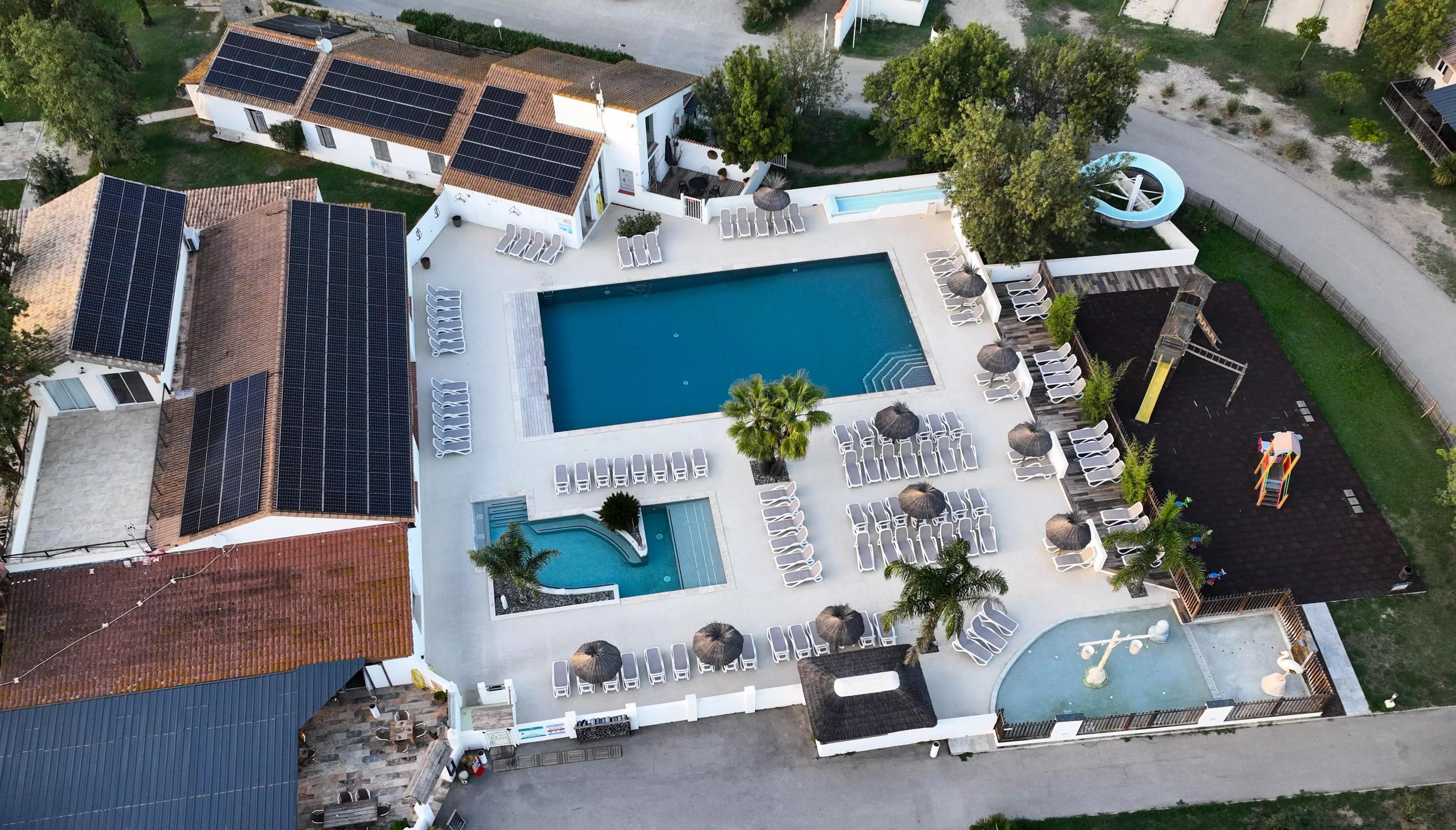Les enfants se réjouiront de le tout nouveau parc aquatique, composé d'une zone sèche et d'une zone humide peu profonde, parfaite pour eux. Ils s'amuseront avec le Grand Seau Verseur, le Flamant Rose, les Trois Cascades Murales et de nombreux jets d'eau ludiques. Enfin, l'espace a été repensé avec une plage surélevée et intime pour profiter du soleil camarguais.