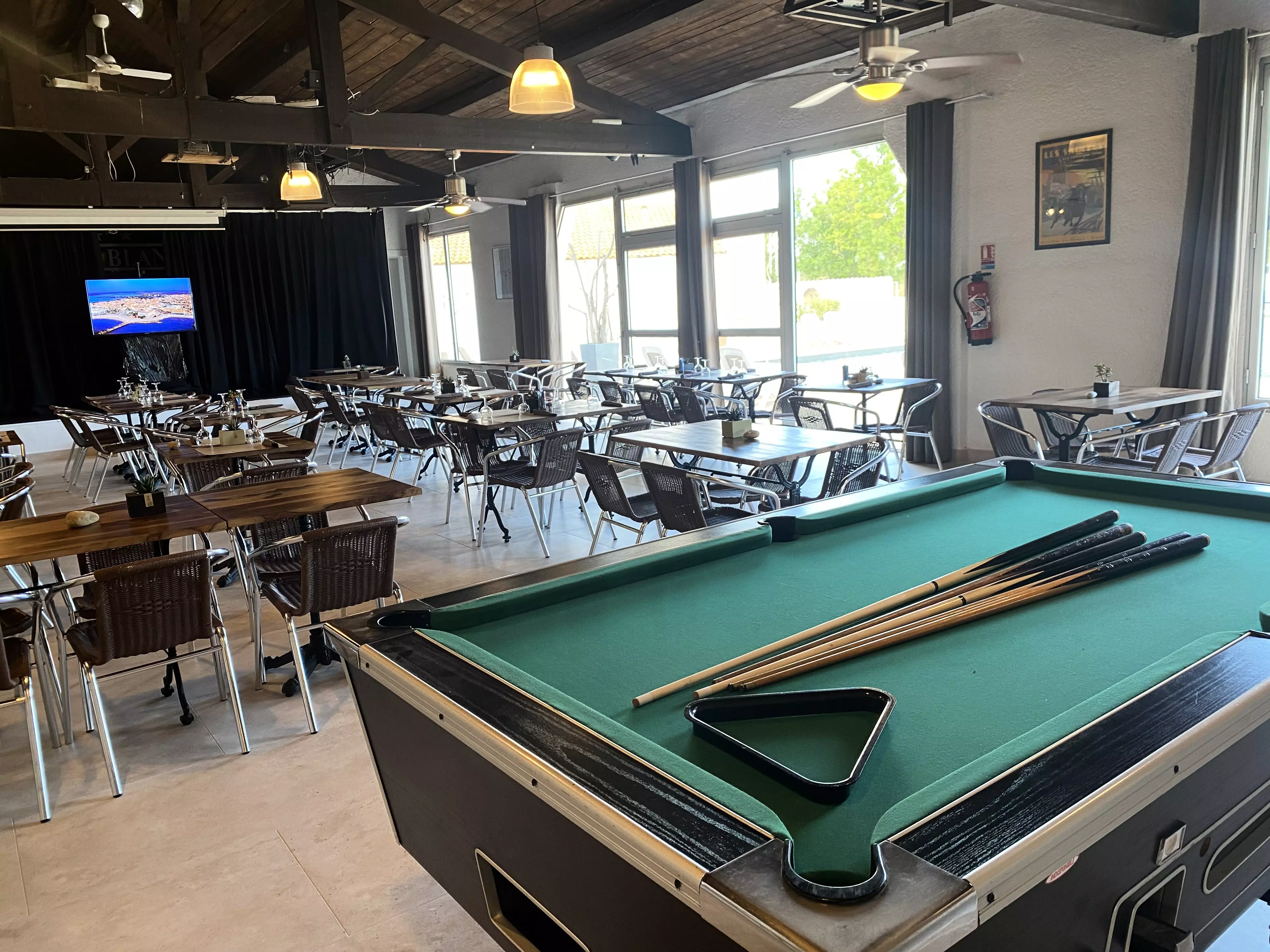 beach volley, basket, football, tables de tennis de table, billard et foot sur table