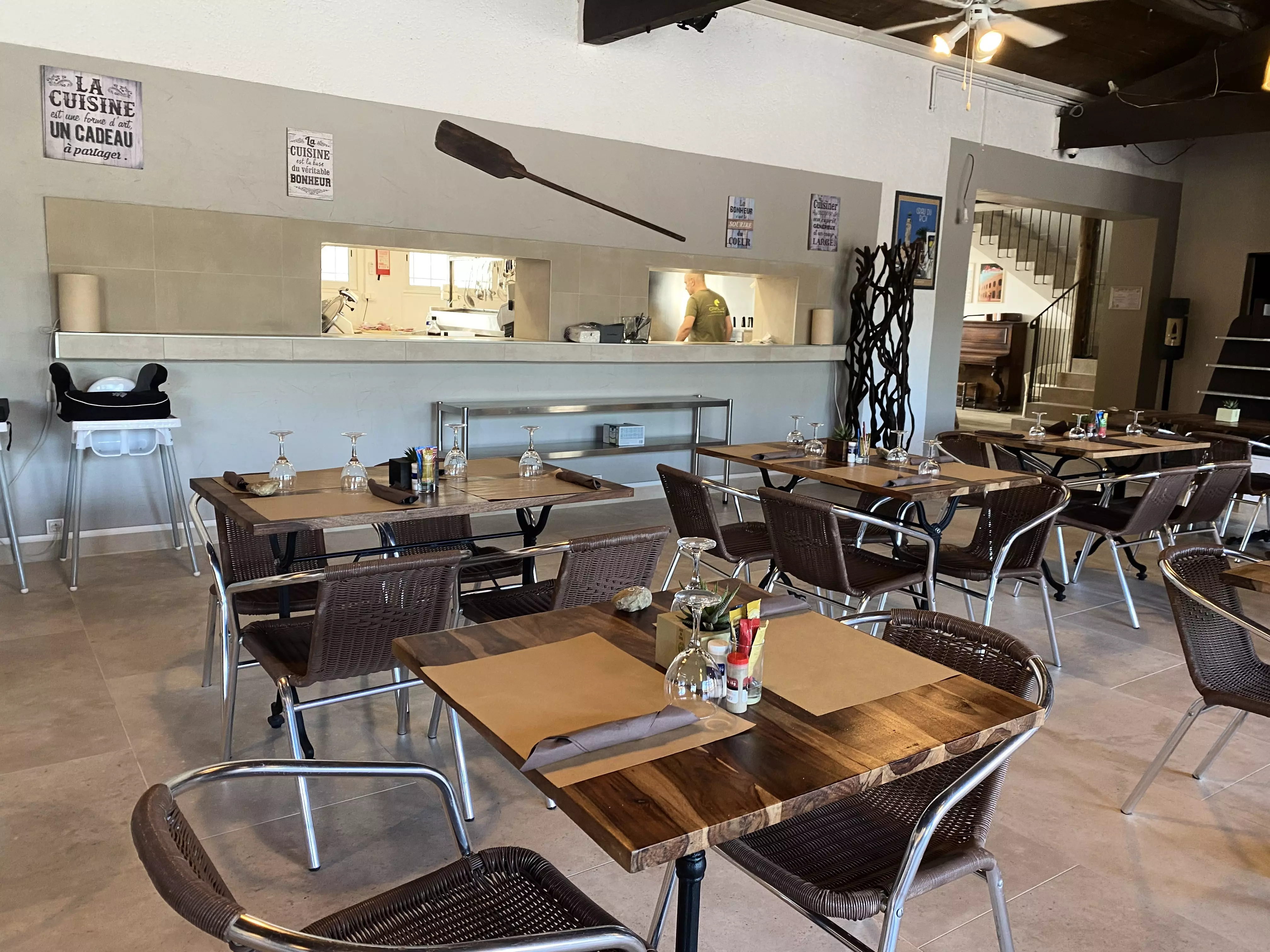 Côté services, le restaurant vous propose des menus variés et des soirées à thèmes. Vous pourrez également commander des plats à emporter (pizza, frites, sandwichs), y savourer un petit déjeuner avec pain frais et viennoiseries, vous rafraichir en journée ou, au moment de l'apéritif déguster cocktails et tapas sur la terrasse lounge.