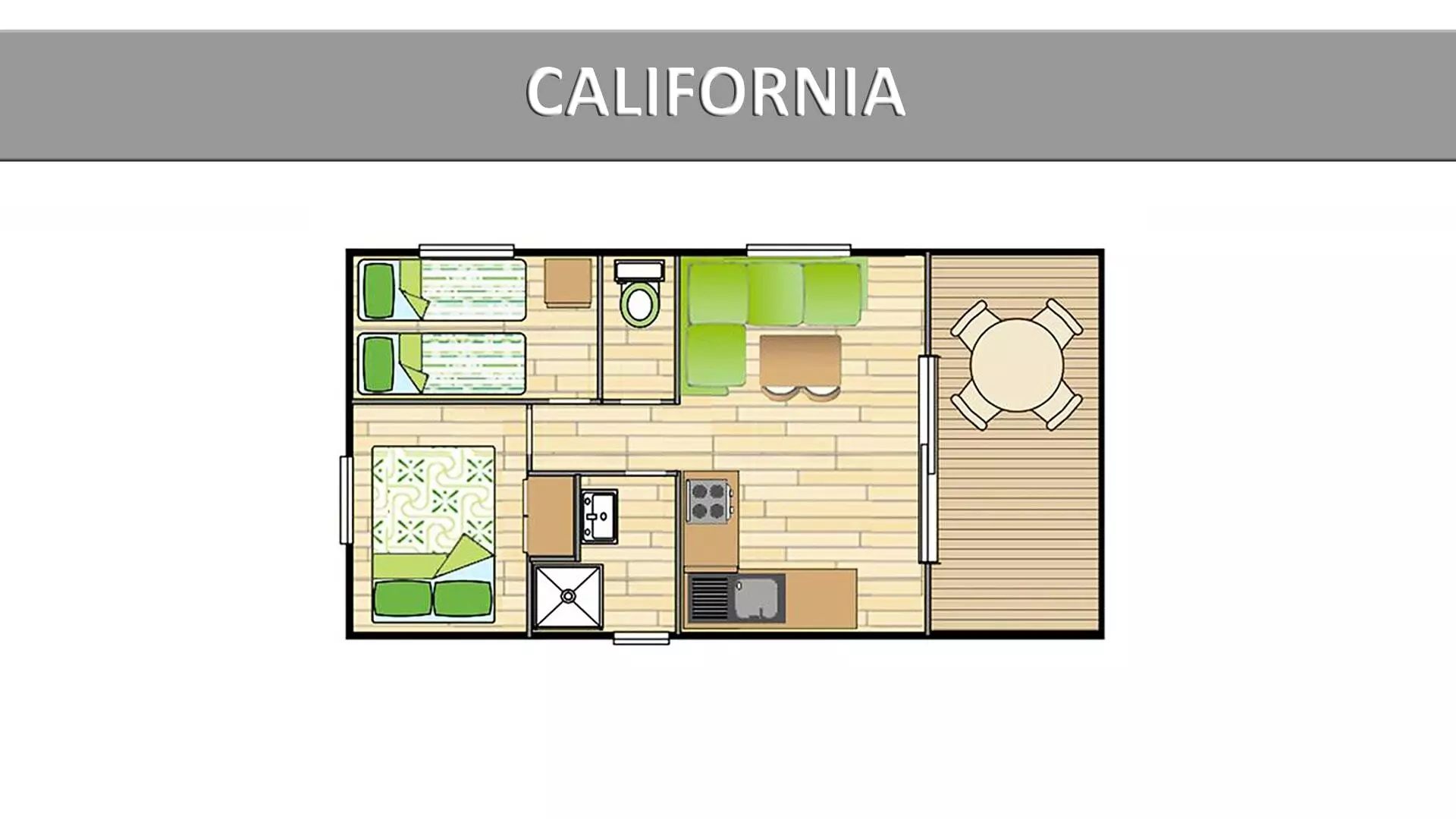 Mobil home California Eco 3 Pièces 4 Personnes avec :
