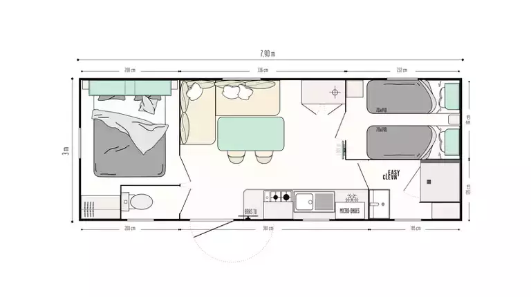 Mobil-home | Comfort | 3 Ch. | 6 pers. | Terrasse surélevée | A/C